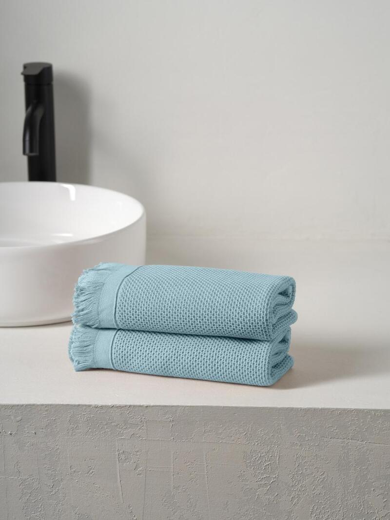 Набор вафельных полотенец "Canvas" с бахромой небесный 2 шт.