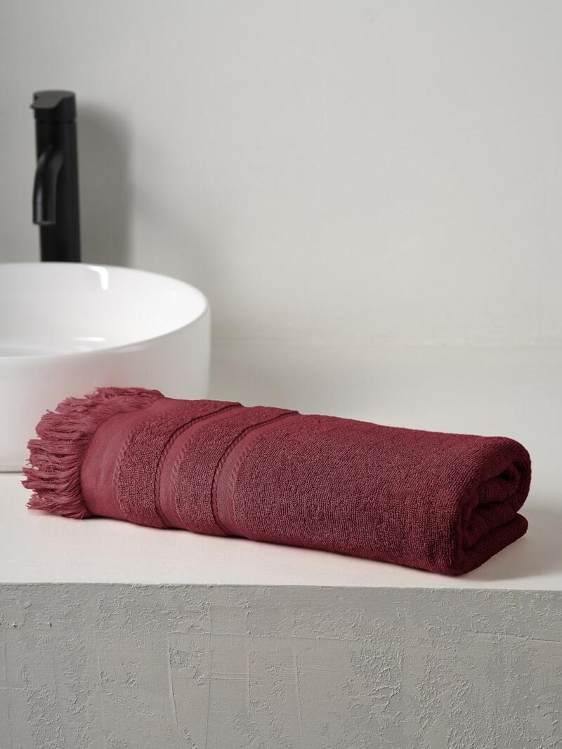 Полотенце махровое "Elegance" с бахромой бордовый