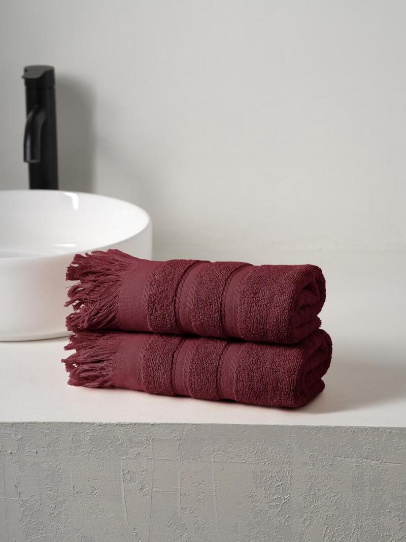 Набор махровых полотенец "Elegance" с бахромой бордовый 2 шт.