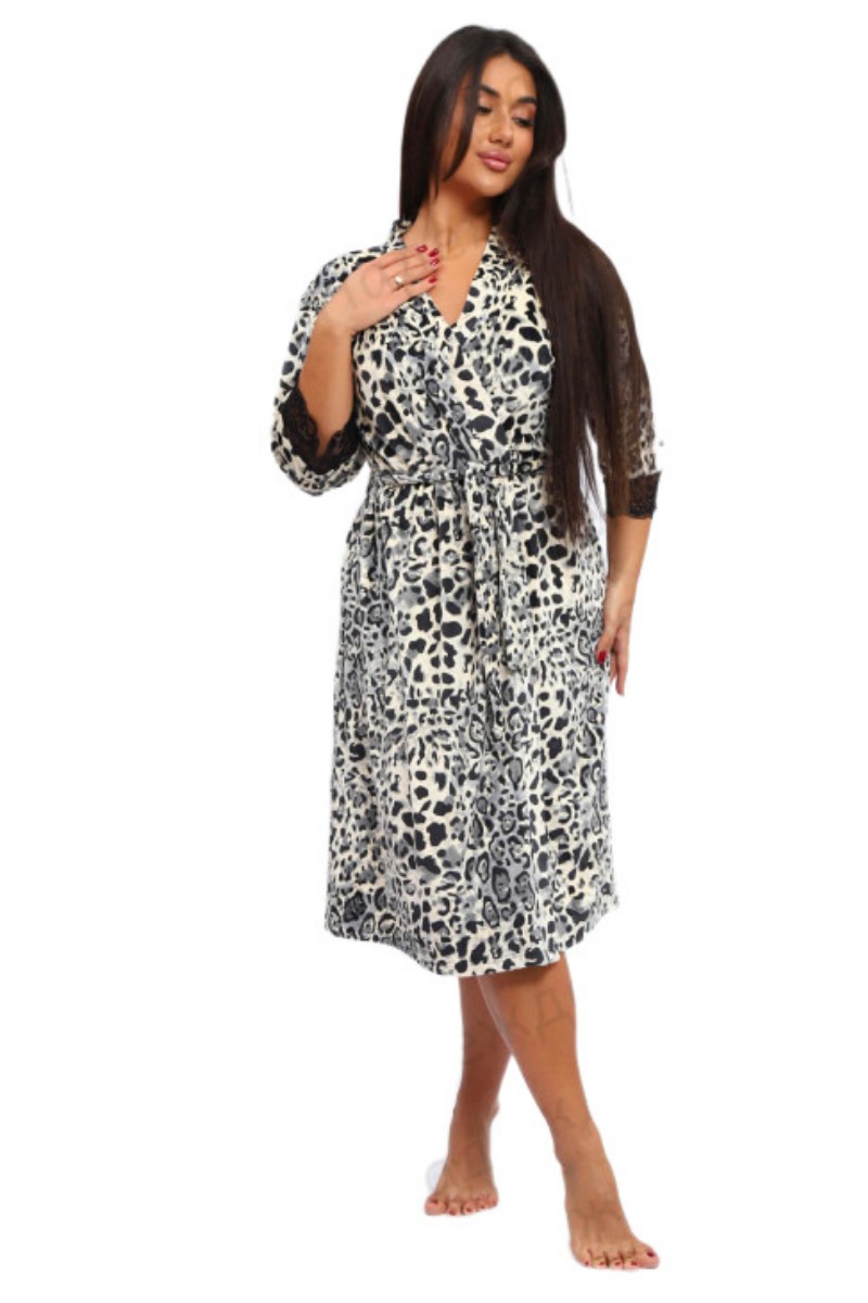 Халат женский М-184 велюр (р-ры: 44-62) леопард