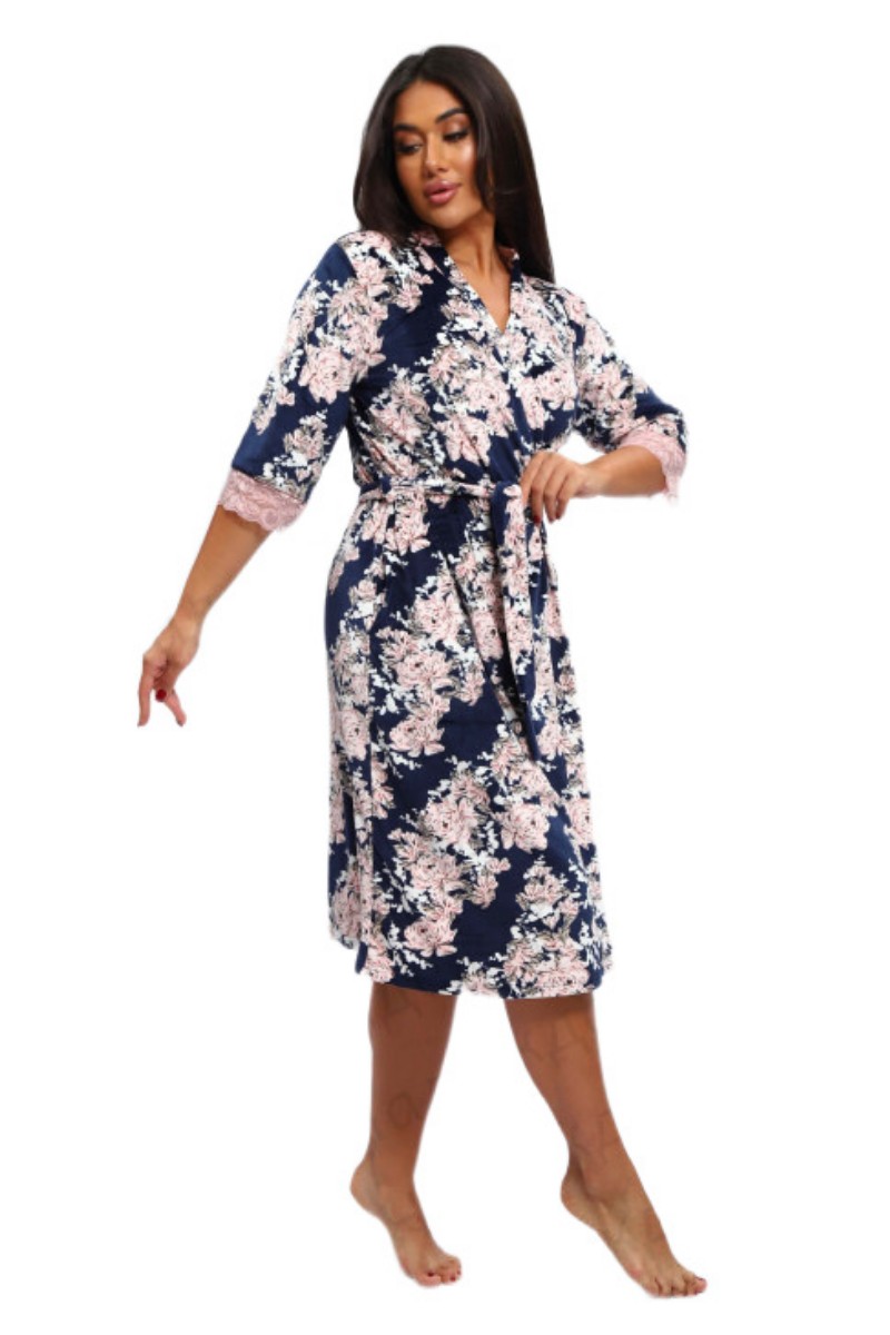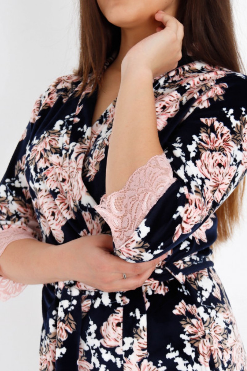 Представляем Вашему вниманию мягкий и уютный женский халат на запах, сшитый из приятного телу, высококачественного велюра. Расцветка изделия красиво смотрится и поднимает настроение. В нём Вы будете чувствовать себя комфортно и уверенно.