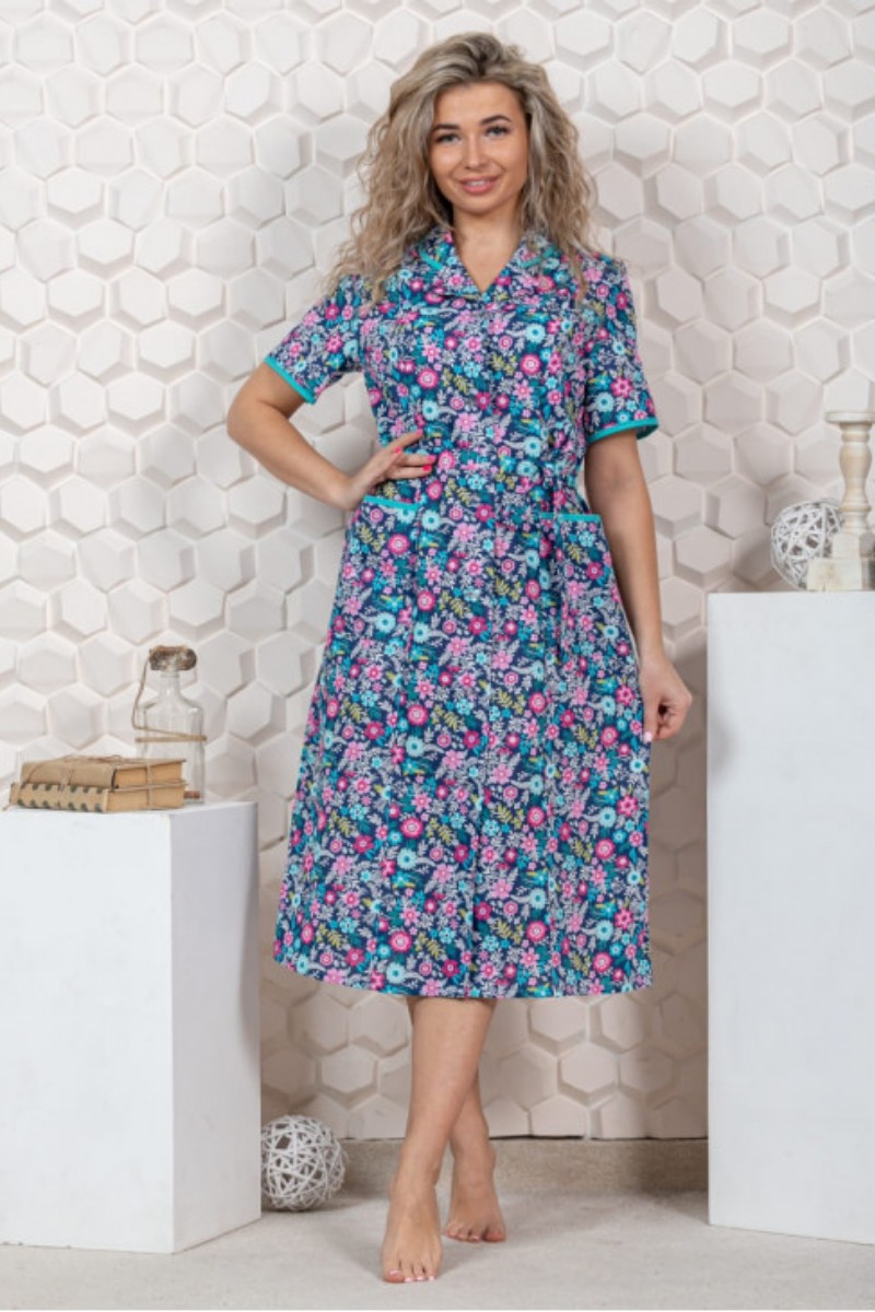 Представляем Вашему вниманию легкий женский халат, сшитый из натуральной, приятной телу бязи - 100% хлопок, позволяющий коже дышать. Расцветка изделия красиво смотрится и поднимает настроение. В нём Вы будете чувствовать себя комфортно и уверенно.