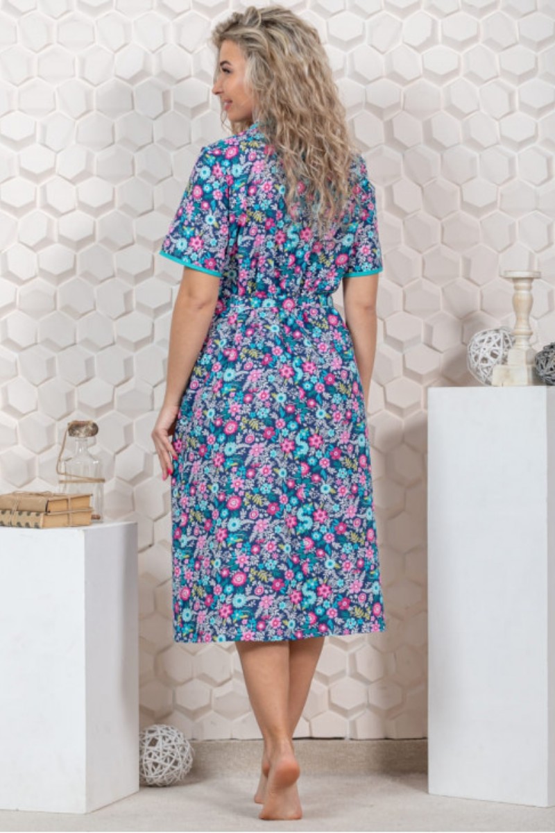Халат женский М-68 бязь (р-ры: 44-70) цветочно-голубой