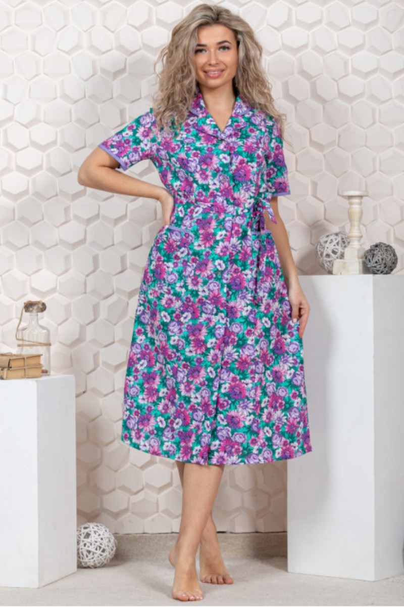 Халат женский М-68 бязь (р-ры: 44-70) цветочно-фиолетовый