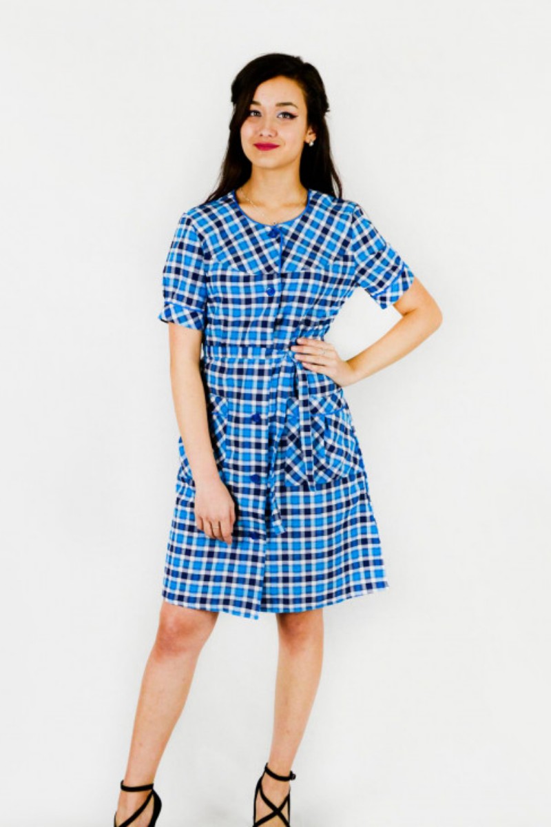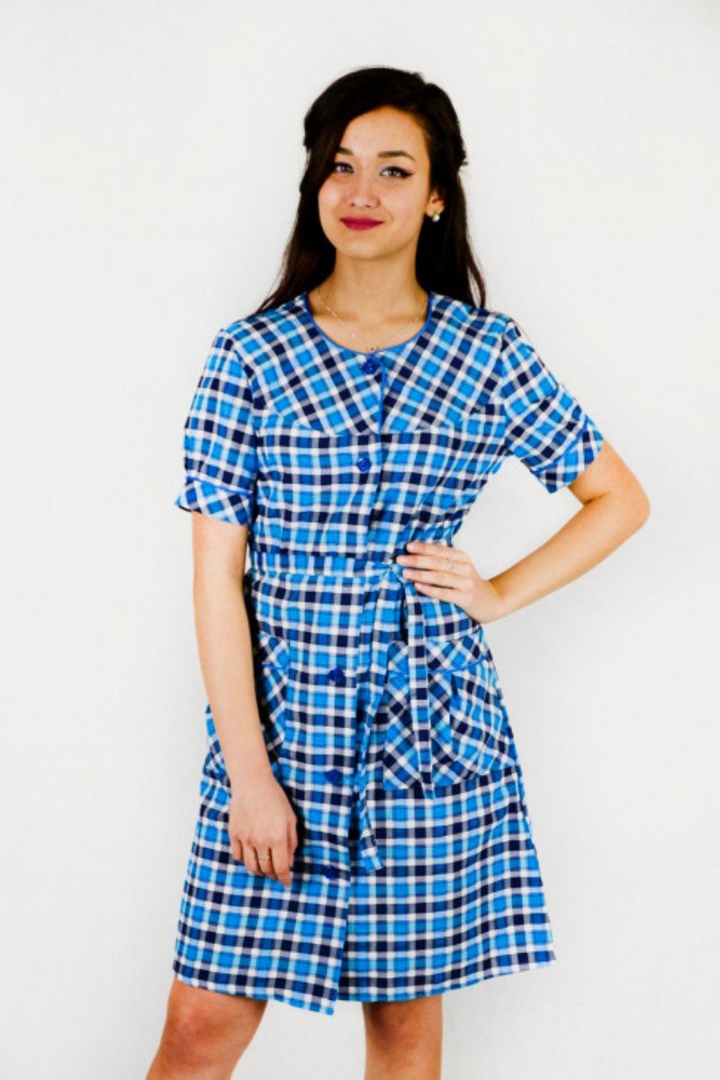 Халат женский М-46 сорочечная ткань (р-ры: 44-62) голубой