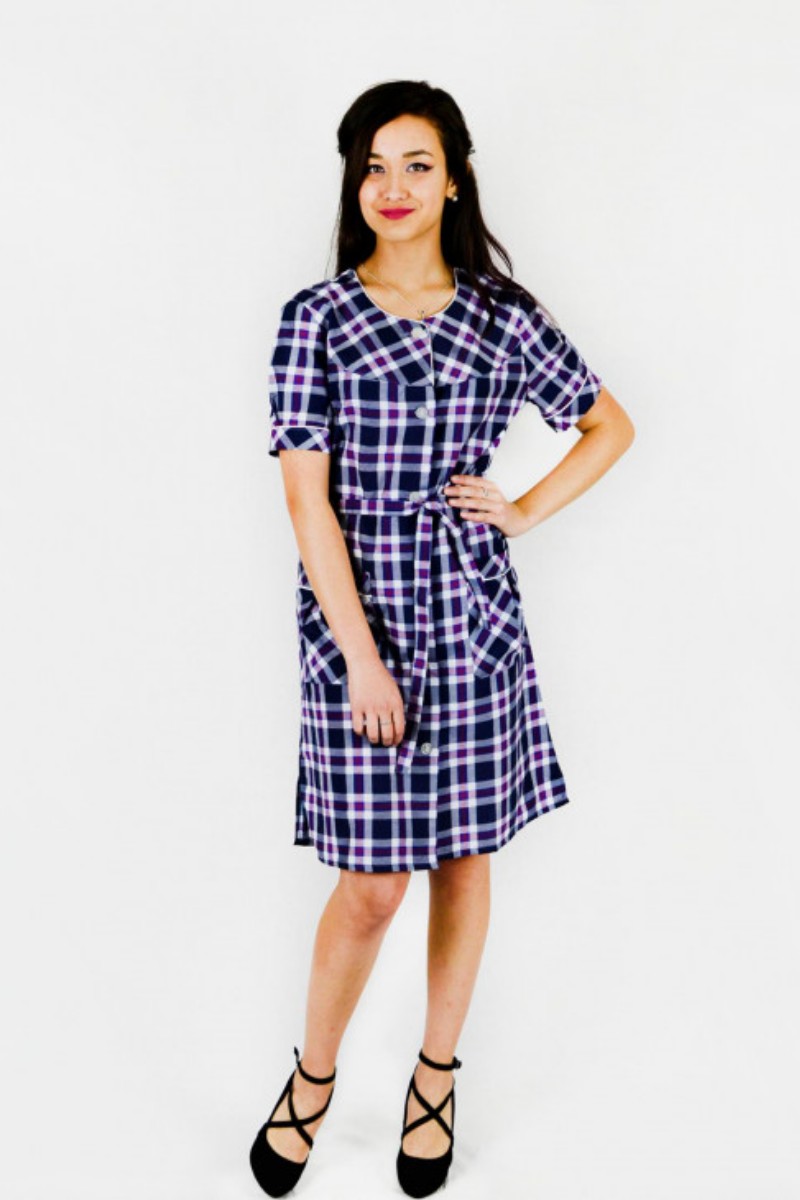 Халат женский М-46 сорочечная ткань (р-ры: 44-62) синий