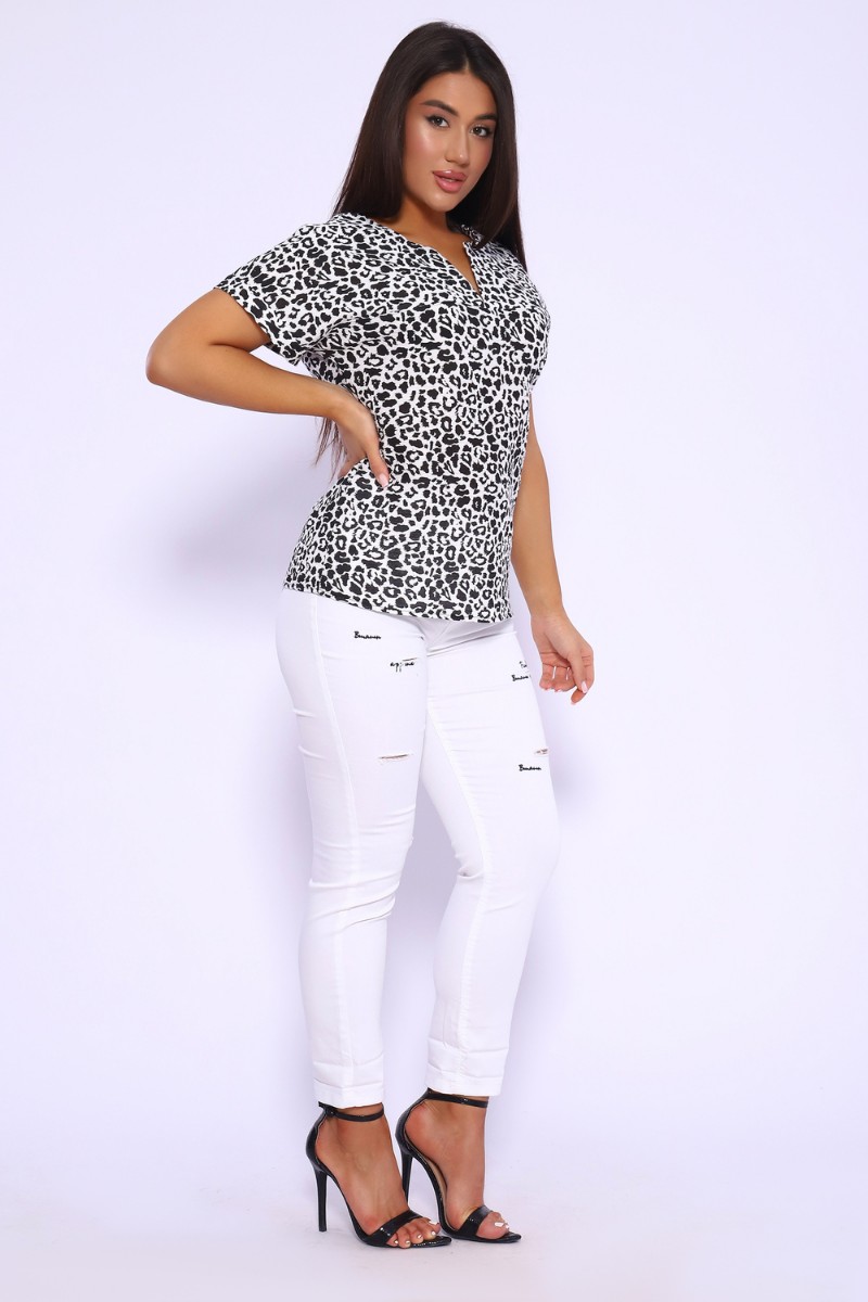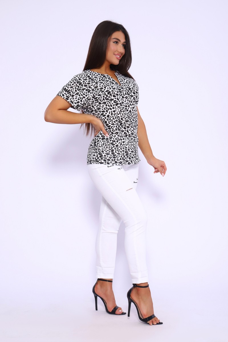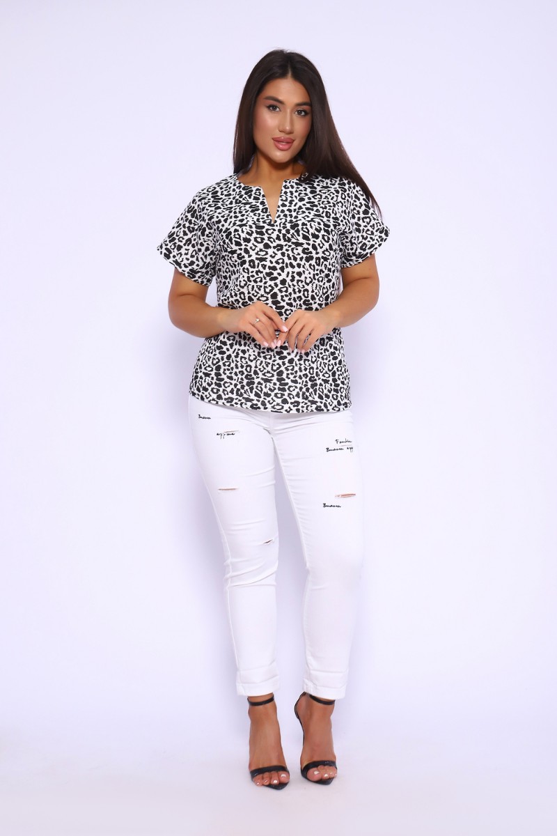 Футболка женская №32743 муслин (р-ры: 48-58) леопард черный