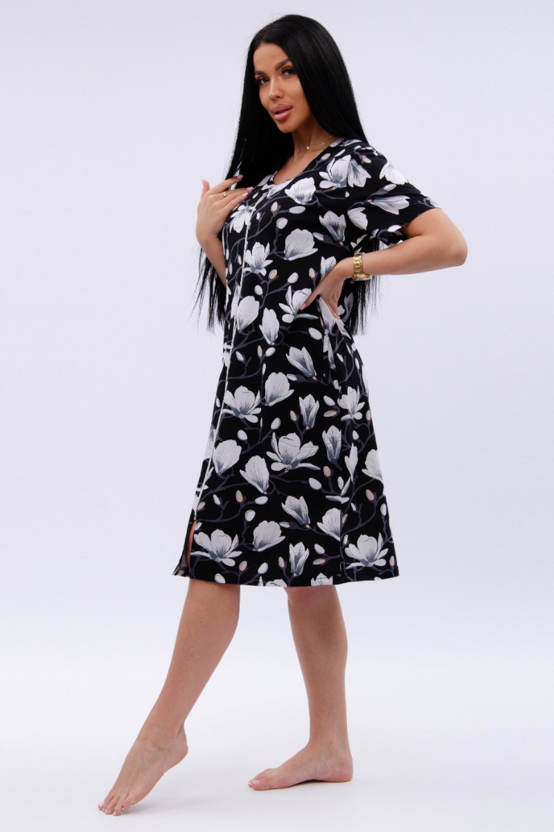 Представляем Вашему вниманию легкий женский халат из кулирки - 100% натурального, дышащего хлопка. Модель имеет интересную расцветку, которая красиво смотрится и поднимает настроение. Изделие хорошо сидит на фигуре и подчеркивает её достоинства. В нём Вы будете чувствовать себя комфортно и уверенно.