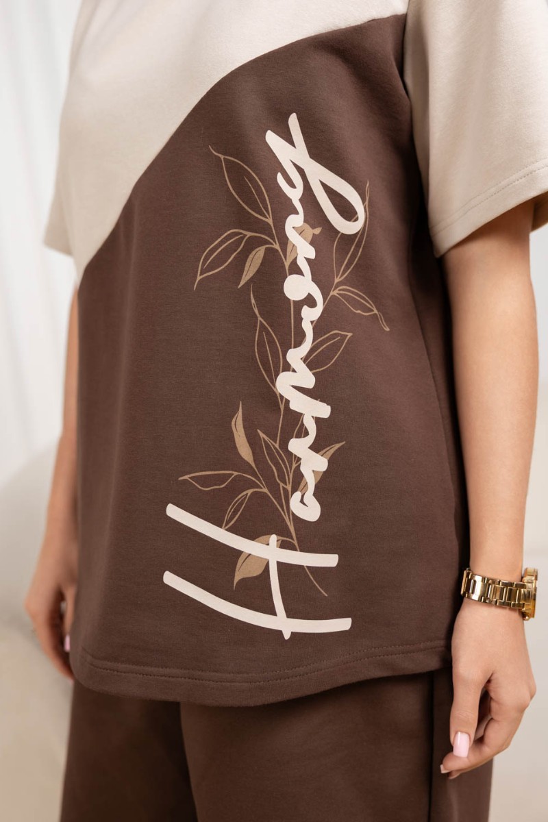 Костюм двойка женский 2135 футер (р-ры: 50-60) бежевый-коричневый