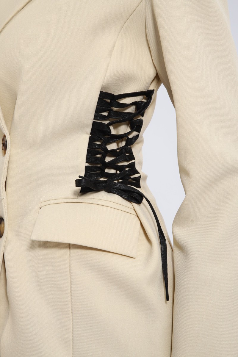 Представляем Вашему вниманию изысканный женский жакет на пуговицах, который станет ярким акцентом в вашем гардеробе! Этот жакет сочетает в себе классический крой и дерзкие детали. Оригинальная шнуровка по бокам изделия добавляет ему неповторимый шарм и позволяет регулировать посадку по фигуре. Элегантные лацканы подчеркивают изящество силуэта. Жакет выполнен из высококачественной ткани и имеет комфортную подкладку, обеспечивающую идеальную посадку и удобство в носке. Жакет женский на пуговицах идеально подходит для создания стильных образов в различных стилях – от делового до повседневного. Ищете женский жакет с изюминкой? Этот жакет со шнуровкой – отличный выбор! Купите сейчас и добавьте элегантности и оригинальности в свой гардероб. Доступные размеры и цвета. Не упустите возможность приобрести этот уникальный жакет с лацканами!