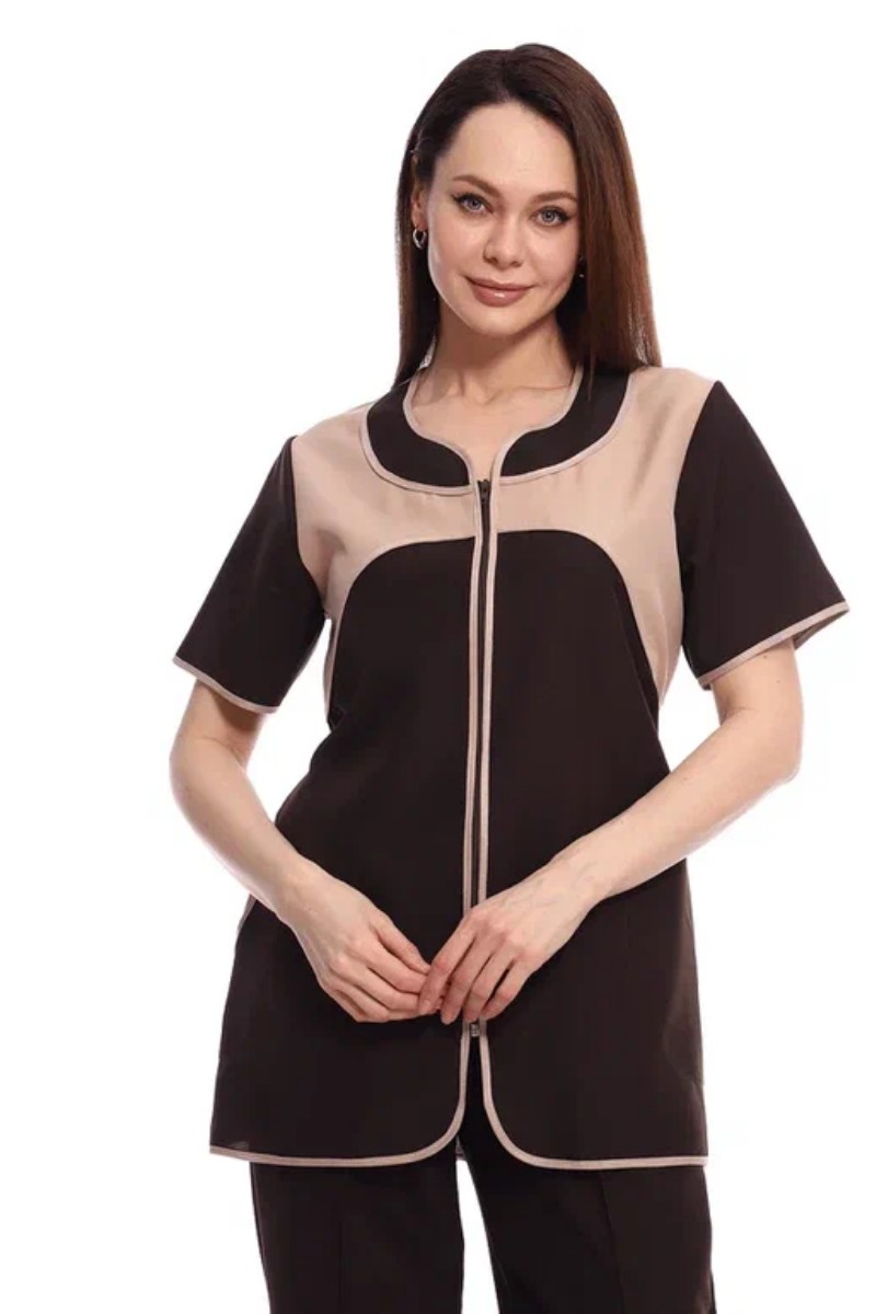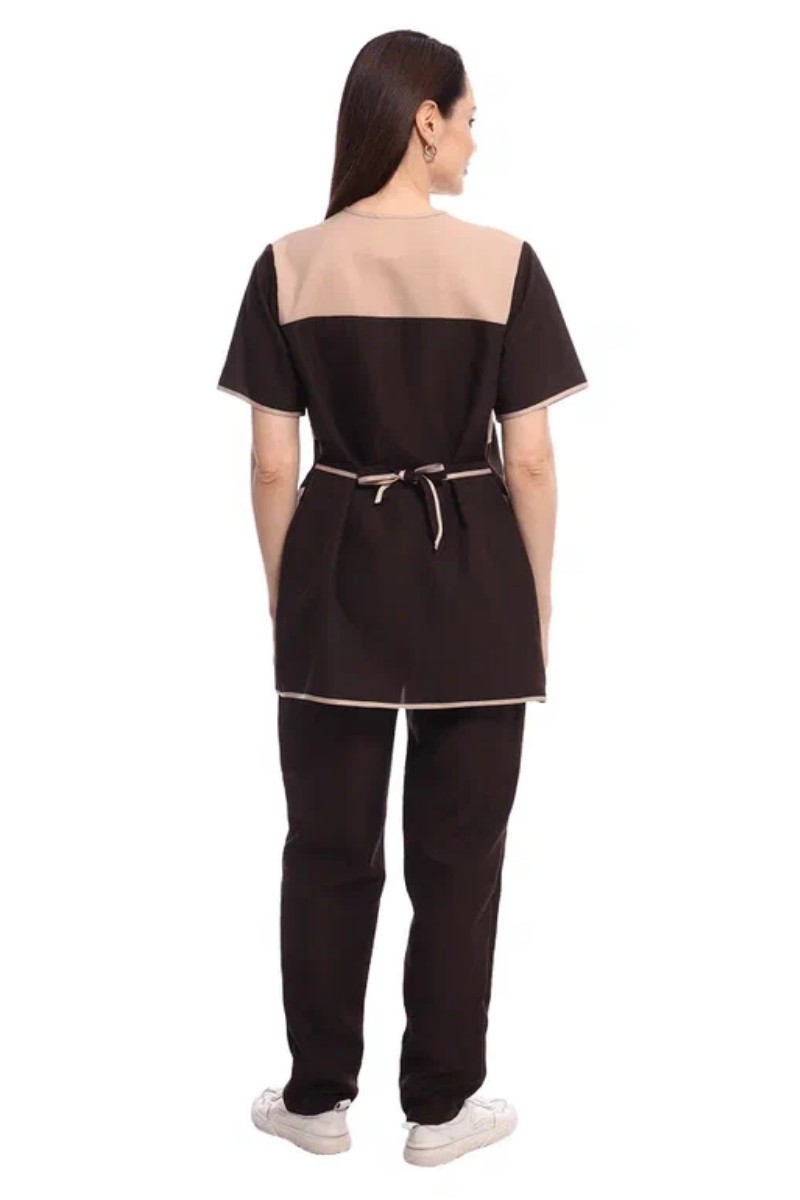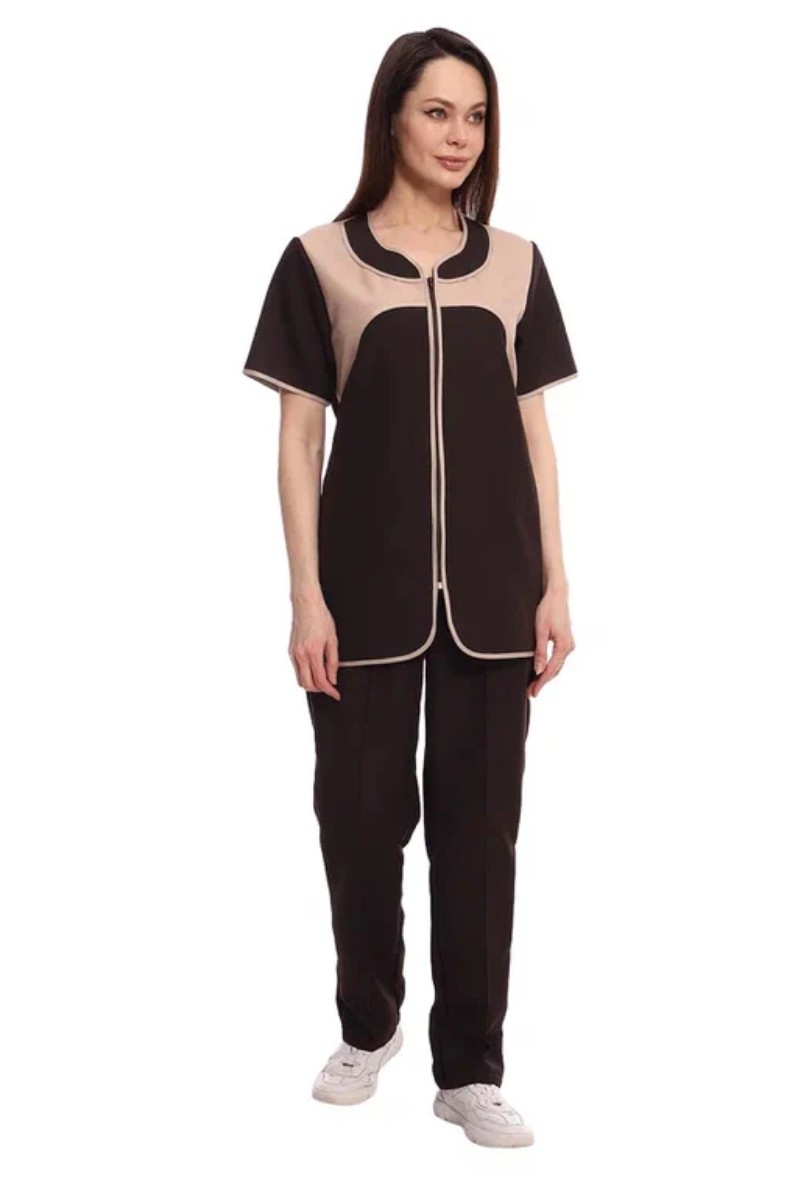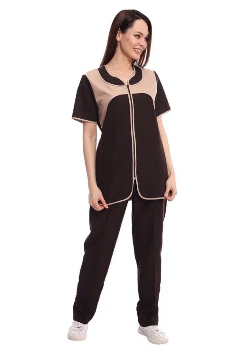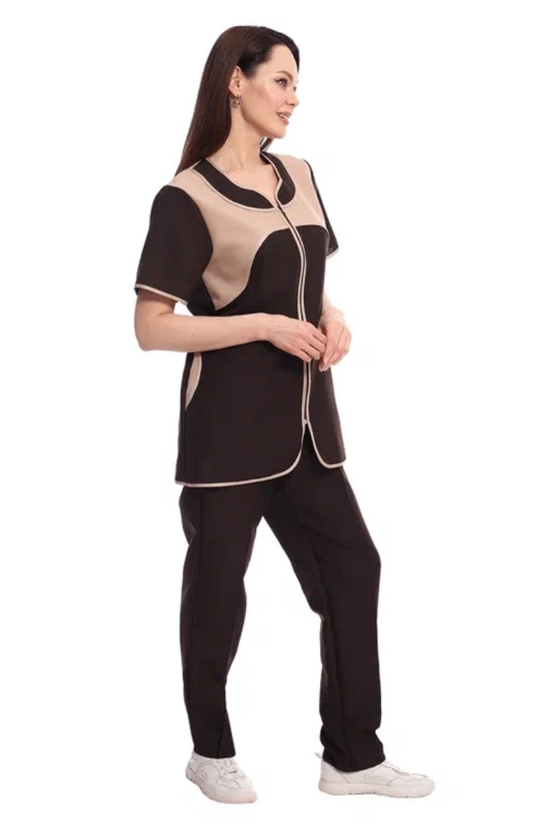Костюм женский для клининга и горничных УН-02-09-ГАБ габардин (р-ры: 42-62) коричневый