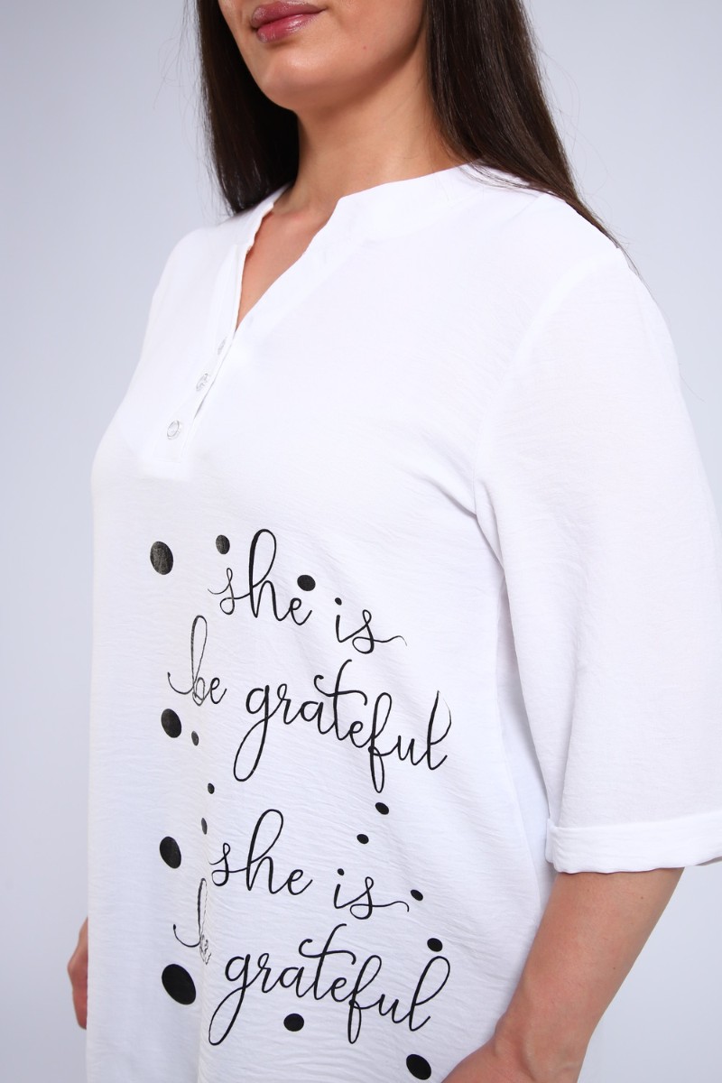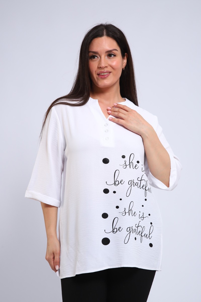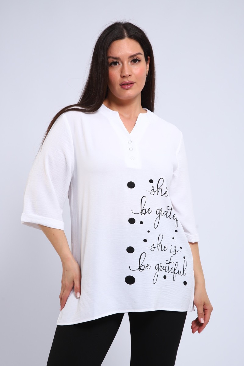 Представляем Вашему вниманию тунику свободного кроя – ваш безупречный выбор! Эта женственная туника с рукавом три четверти на манжете станет любимой вещью в вашем гардеробе. Свободный крой: Обеспечивает максимальный комфорт и свободу движений, идеально подходит для любого типа фигуры. Рукав три четверти на манжете: Элегантное решение, подчеркивающее изящество запястий. Декоративная планка с пуговицами: Оригинальный акцент, добавляющий образу шарма и индивидуальности. Воротник стойка: Создает элегантный и утонченный силуэт. Шелкография на полочке: Изысканный принт, придающий тунике неповторимый вид. Эта туника станет прекрасным дополнением к вашему повседневному или нарядному образу. Идеальна для создания легких и стильных ансамблей. Купите тунику свободного кроя прямо сейчас и наслаждайтесь комфортом и элегантностью!