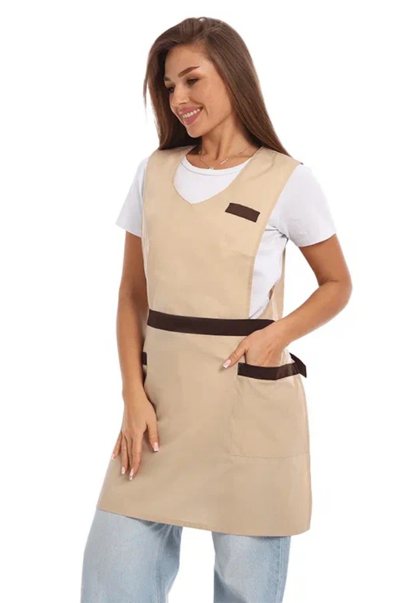 Фартук для продавцов УН-04-319-ТС смесовая ткань (р-ры: 44-54) бежевый