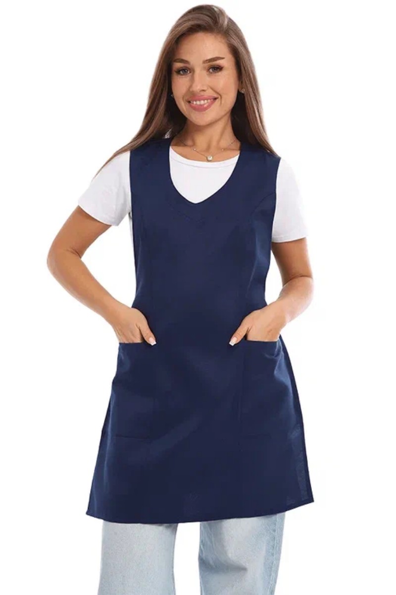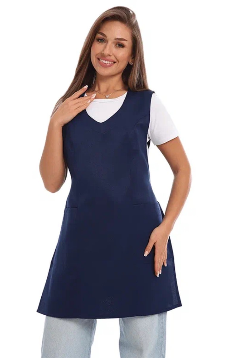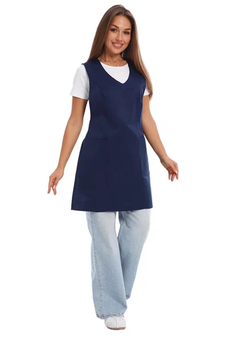 Представляем Вашему вниманию фартук средней длины, перекидной. Спинка без отделки. Полочка с V-образным вырезом горловины и рельефами, выходящими из пройм, с двумя накладными вместительными карманами в нижней части фартука. Объем фартука по линии талии регулируется завязками – поясами. Фартук изготовлен из прочной смесовой ткани, с водоотталкивающей пропиткой, что придает фартуку универсальность при использовании его для защиты от общепроизводственных загрязнений в разных сферах деятельности.
