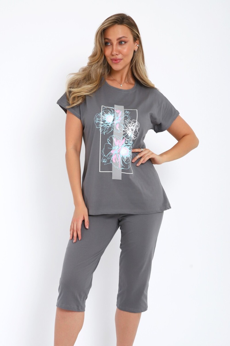 Представляем Вашему вниманию летний костюм двойку для домашнего отдыха и сна, сшитый из 100% хлопка. Футболка свободного кроя, удлиненная, с круглым вырезом горловины и коротким рукавом. Бриджи классической длины, прямого кроя. Мягкий и приятный к телу материал, обладающий высоким качеством, подарит вам настоящий уют на каждый день. Домашний костюм со штанами можно носить дома, на даче или использовать комплект как пижамный. Наш трикотажный костюм подойдет любой моднице. Такую домашнюю одежду для женщин можно использовать для йоги, активного отдыха, походов и прогулок весной и летом. Домашний костюм женский с бриджами с интересным рисунком соответствует моде и отлично подходит для повседневной носки. Домашняя одежда для женщин больших размеров подходит в качестве уличной, домашней и пляжной одежды. Пижама костюм яркого цвета с интересным рисунком соответствует моде и отлично подходит для повседневной носки. Дачный костюмчик больших размеров идеально подходит в качестве домашней одежды. Носите с удовольствием!