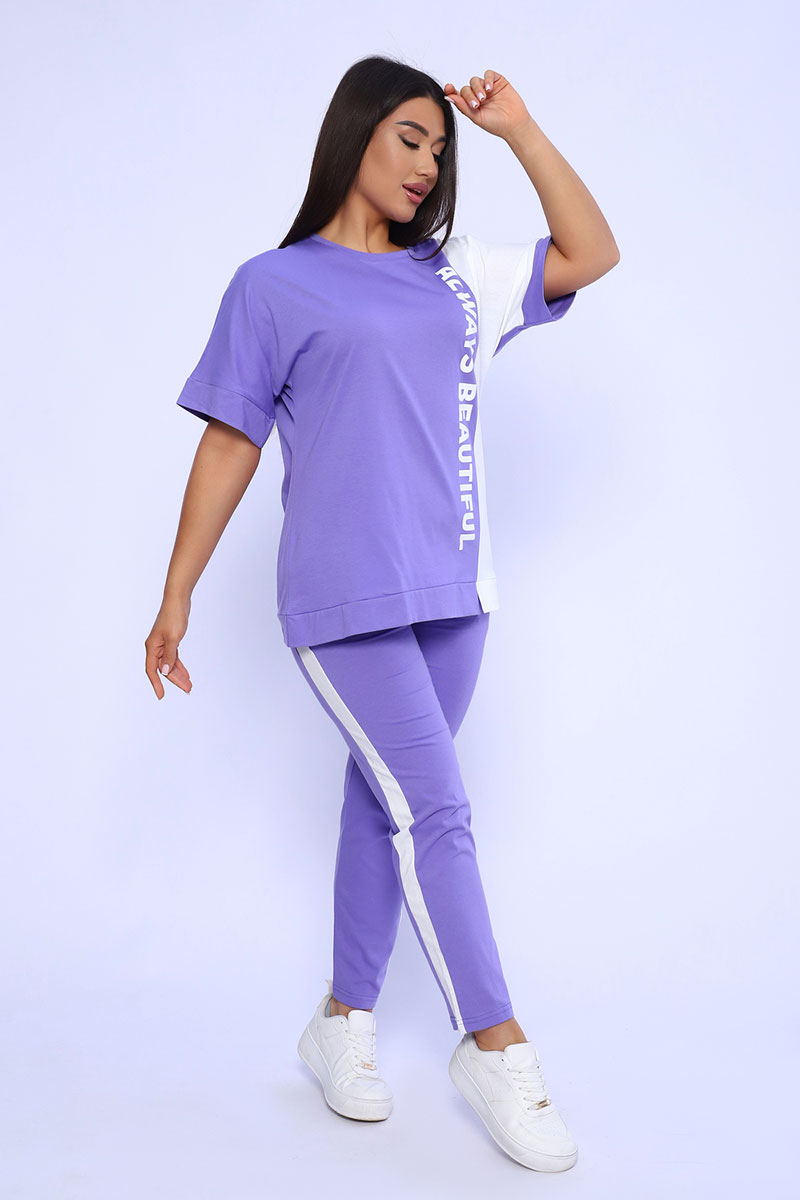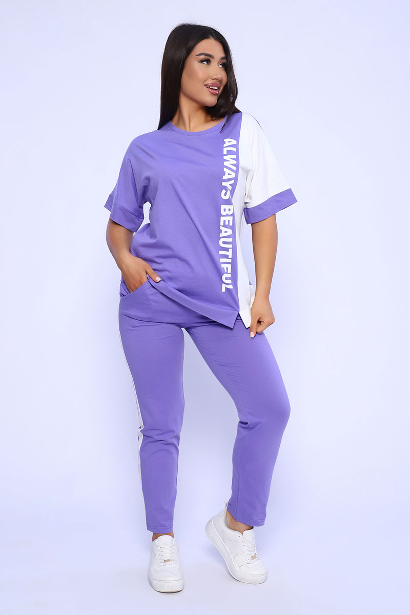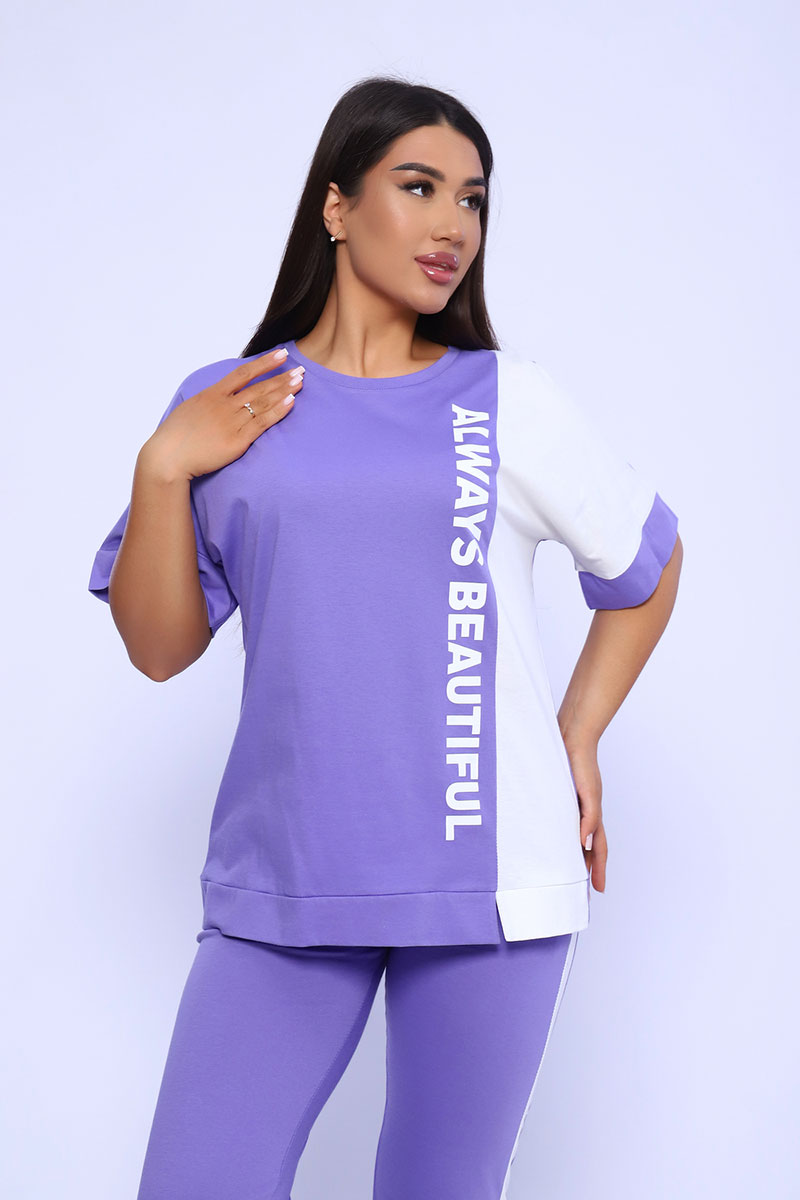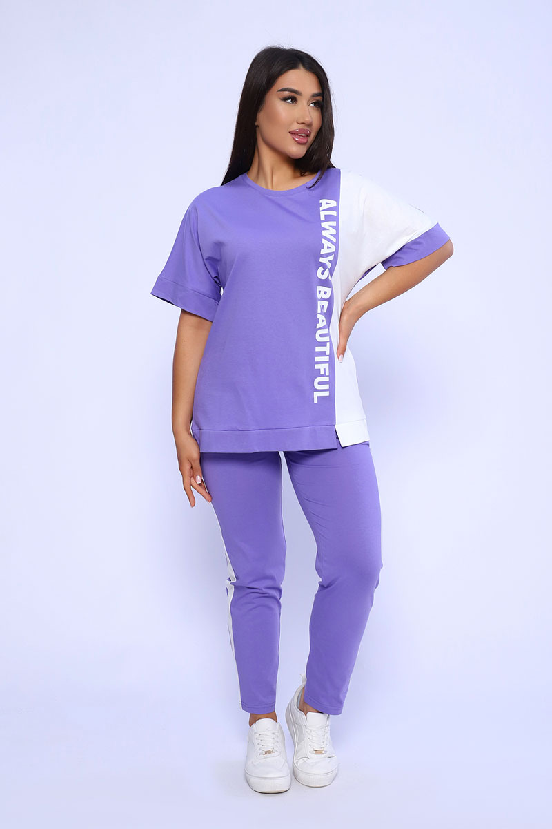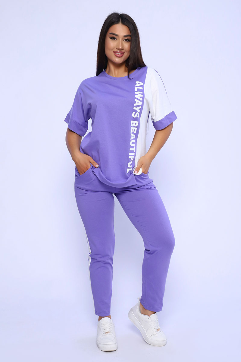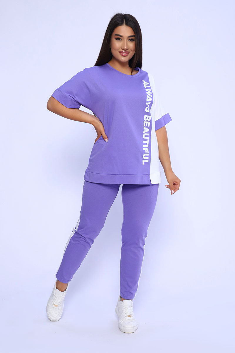 Костюм двойка женский №65057 кулирка (последний размер) сиреневый 54,56,66