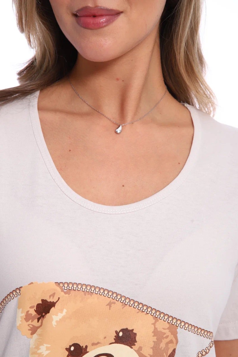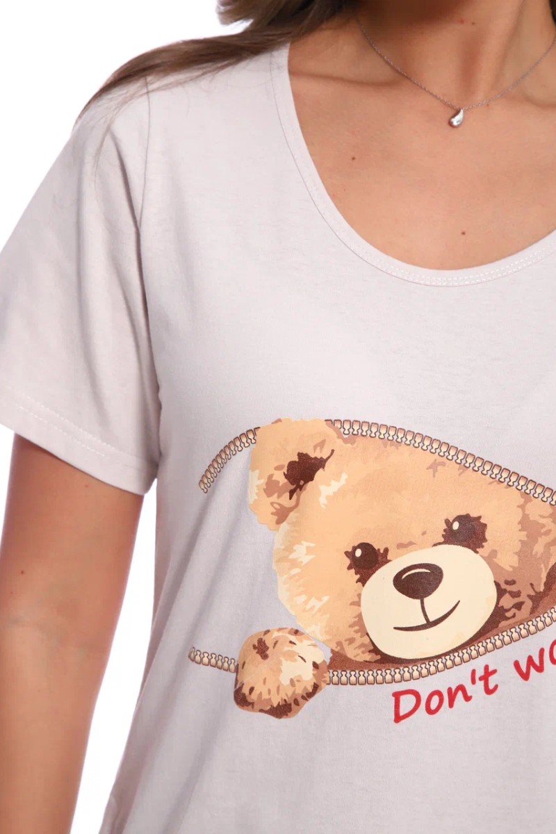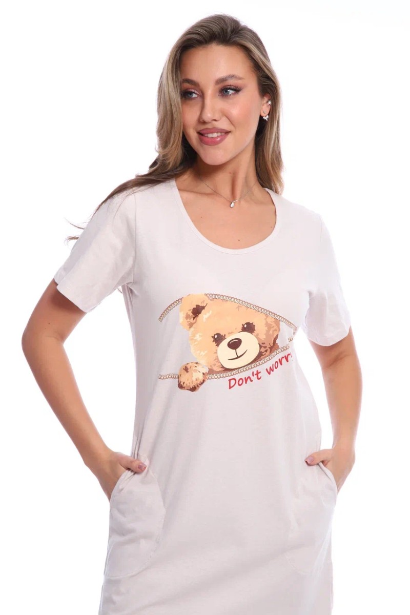 Футболка-туника женская №517 кулирка (последний размер) бежевый мишки 46