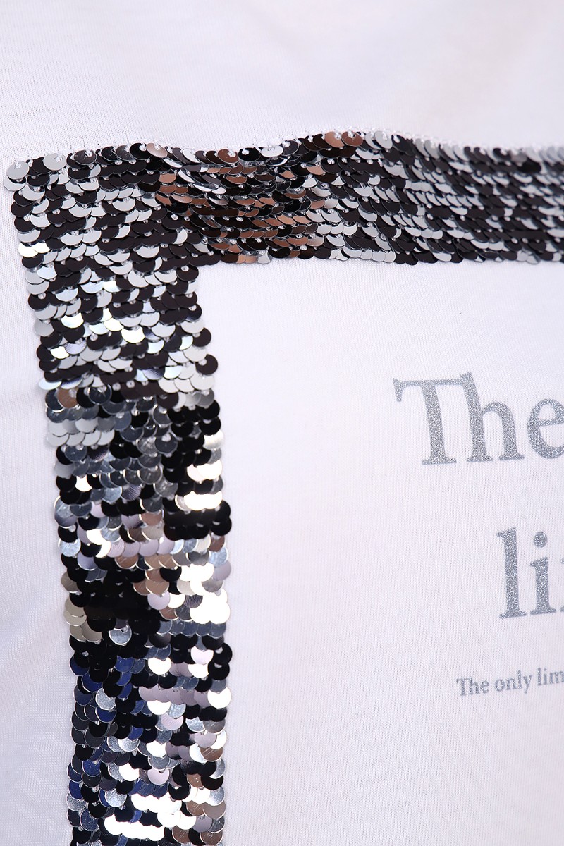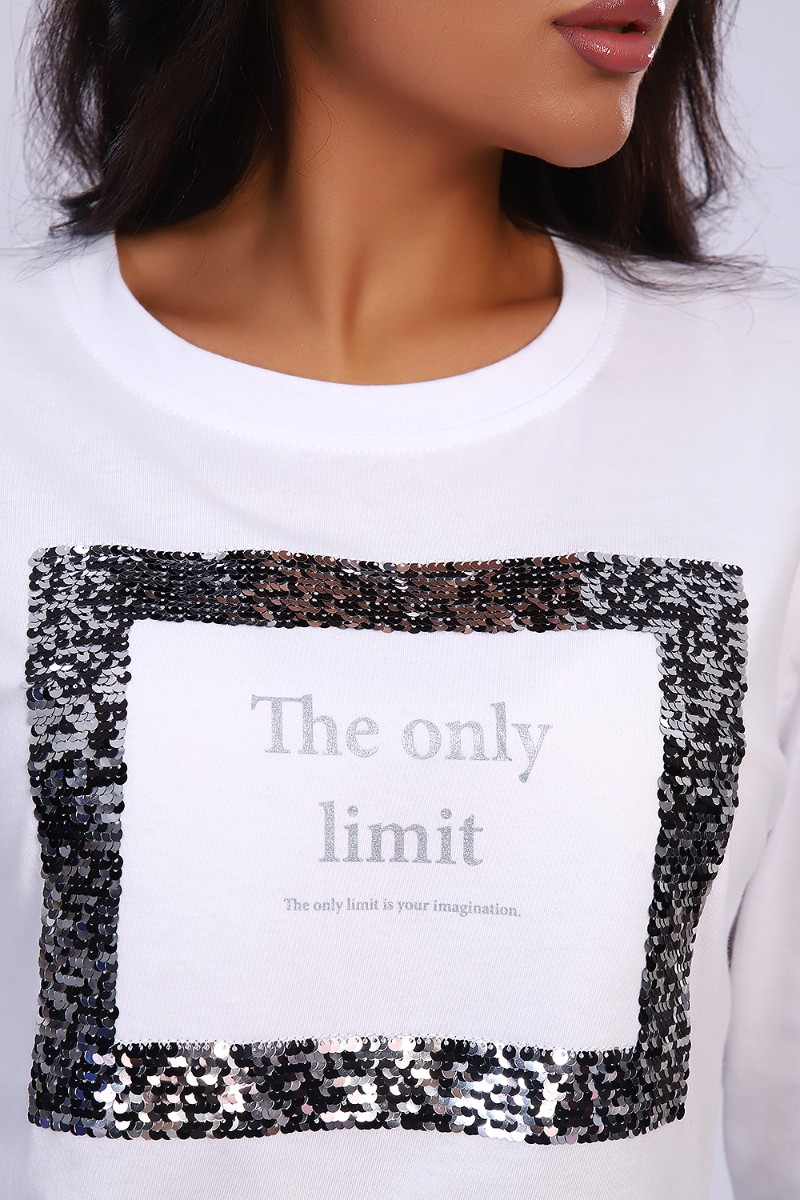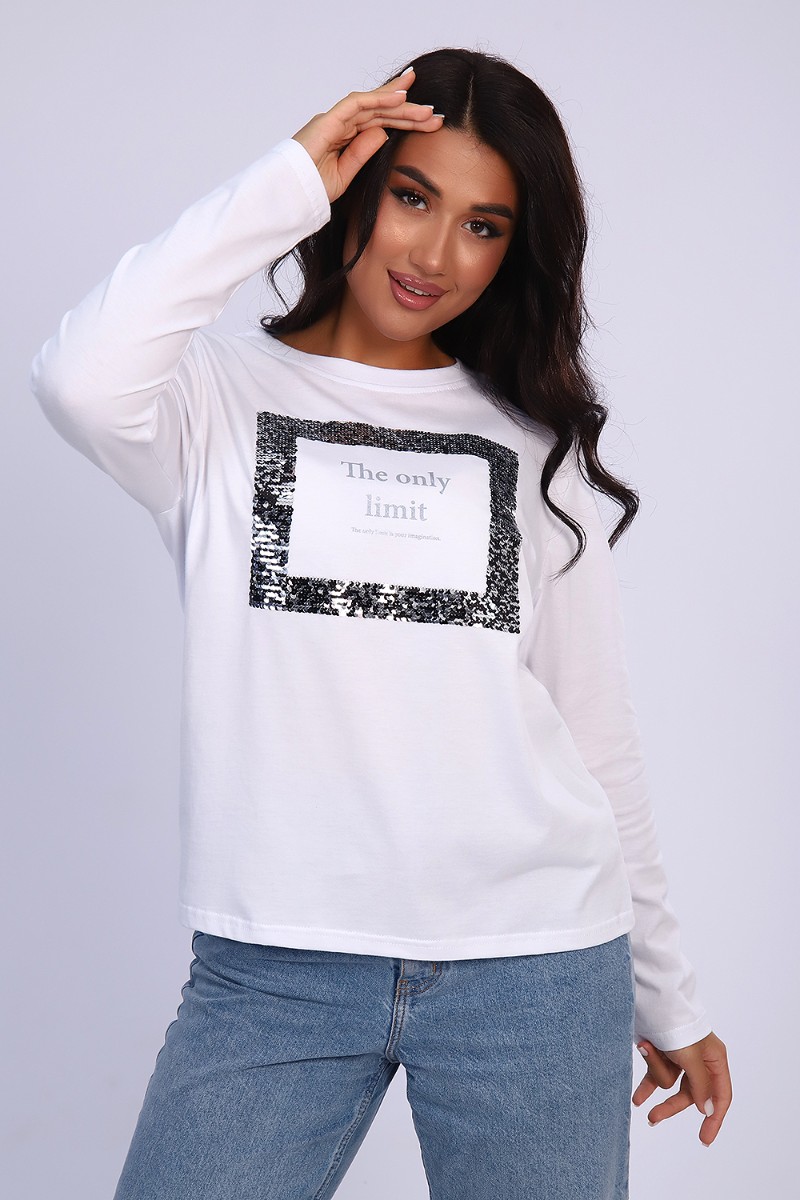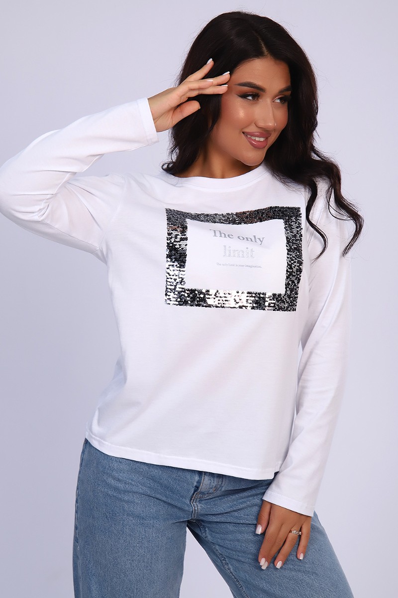 Представляем Вашему вниманию изящную женскую футболку с длинным рукавом, полуприлегающего силуэта, с качественным принтом из пайеток. Можно удачно совместить с джинсами, юбками, брюками, хорошо смотрится с пиджаком или кардиганом. Модный, современный дизайн не стесняет движений, кожа дышит.