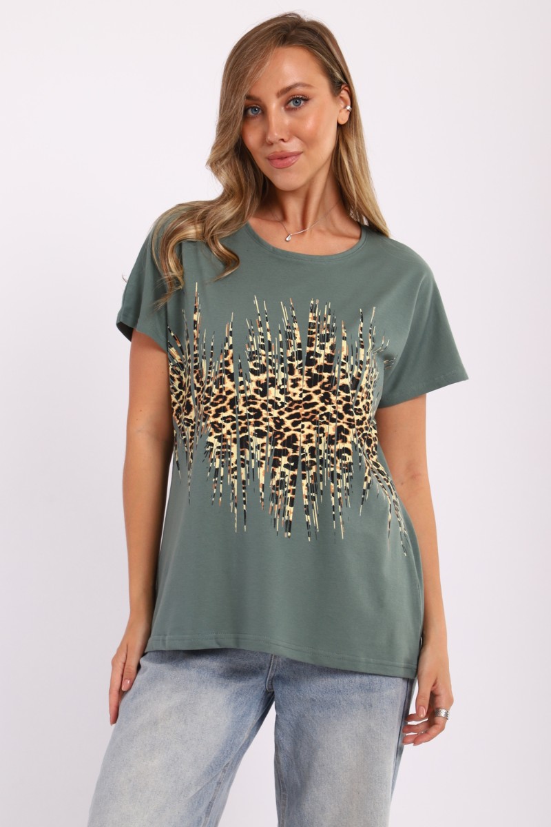 Представляем Вашему вниманию стильную и комфортную футболку, идеально подходящую для домашнего ношения или летних выходов. Изготовленная из высококачественного хлопка, эта нарядная модель обеспечивает невероятное ощущение комфорта и свободы движений. Футболка выполнена в нежных оттенках, что придает ей свежесть и гармонию. Удлиненная конструкция подчеркивает силуэт, создавая стильный образ. Дизайн дополнен ярким принтом, который включает цветочные элементы и графические акценты. Это придает изделию оригинальность и делает его отличным выбором для модных образов. Свободный крой позволяет сочетать эту модель с различными вещами: от джинсов до легких шорт. Короткие рукава обеспечивают дополнительную вентиляцию, что делает ее идеальной для жарких летних дней. Текстура материала приятна на ощупь и обеспечивает комфорт в носке на протяжении всего дня. Это изделие отличается высоким качеством пошива, что гарантирует долговечность и устойчивость к износу. Премиум материал сохраняет свои свойства даже после множества стирок, оставаясь ярким и привлекательным. Эта футболка — отличный выбор как для повседневной носки, так и для создания более нарядных образов с минимальными усилиями. Благодаря своим визуальным характеристикам она станет замечательным дополнением вашего гардероба и позволит вам выглядеть стильно в любой ситуации. Носите с удовольствием!