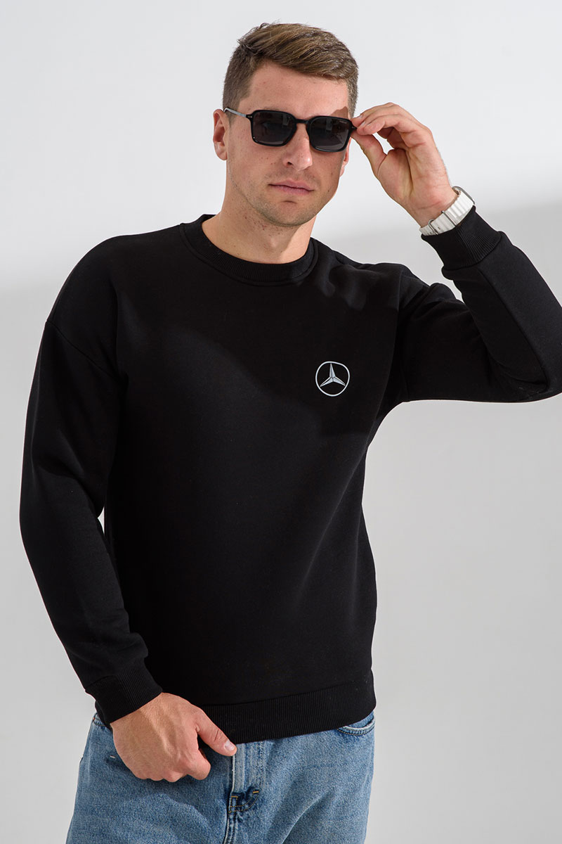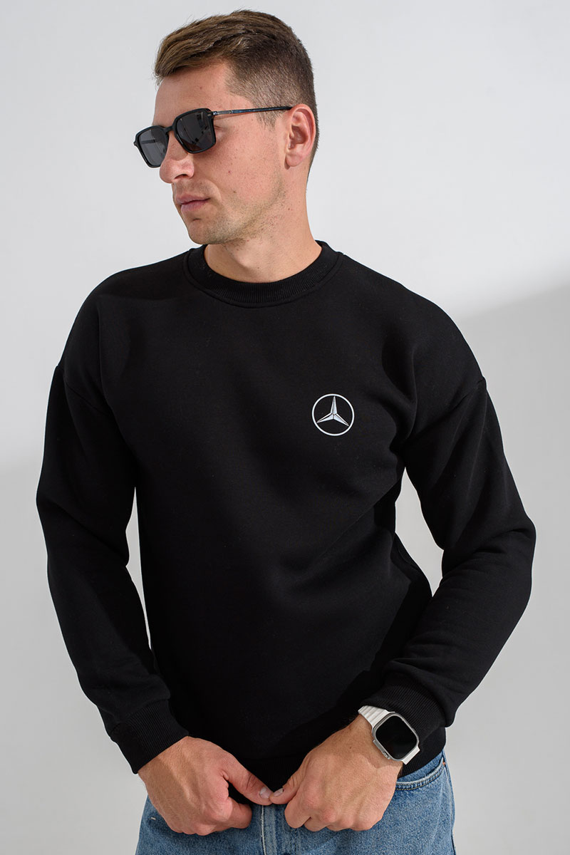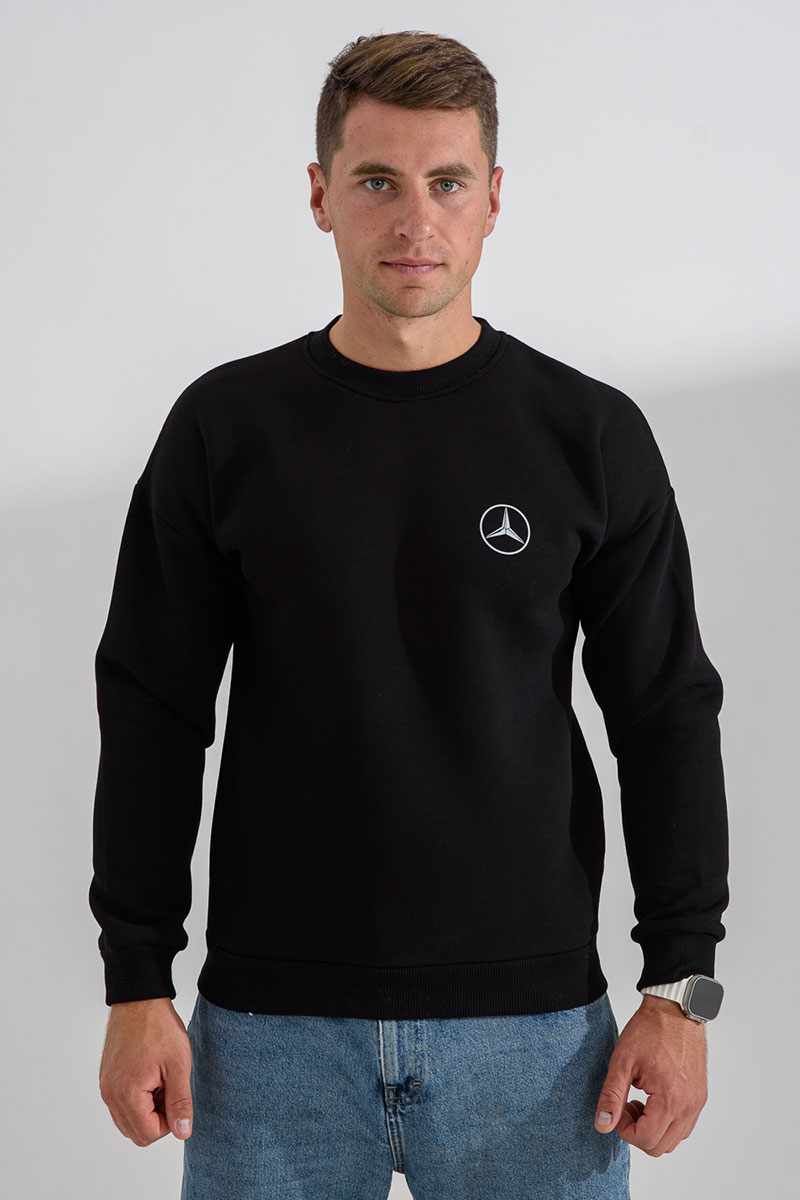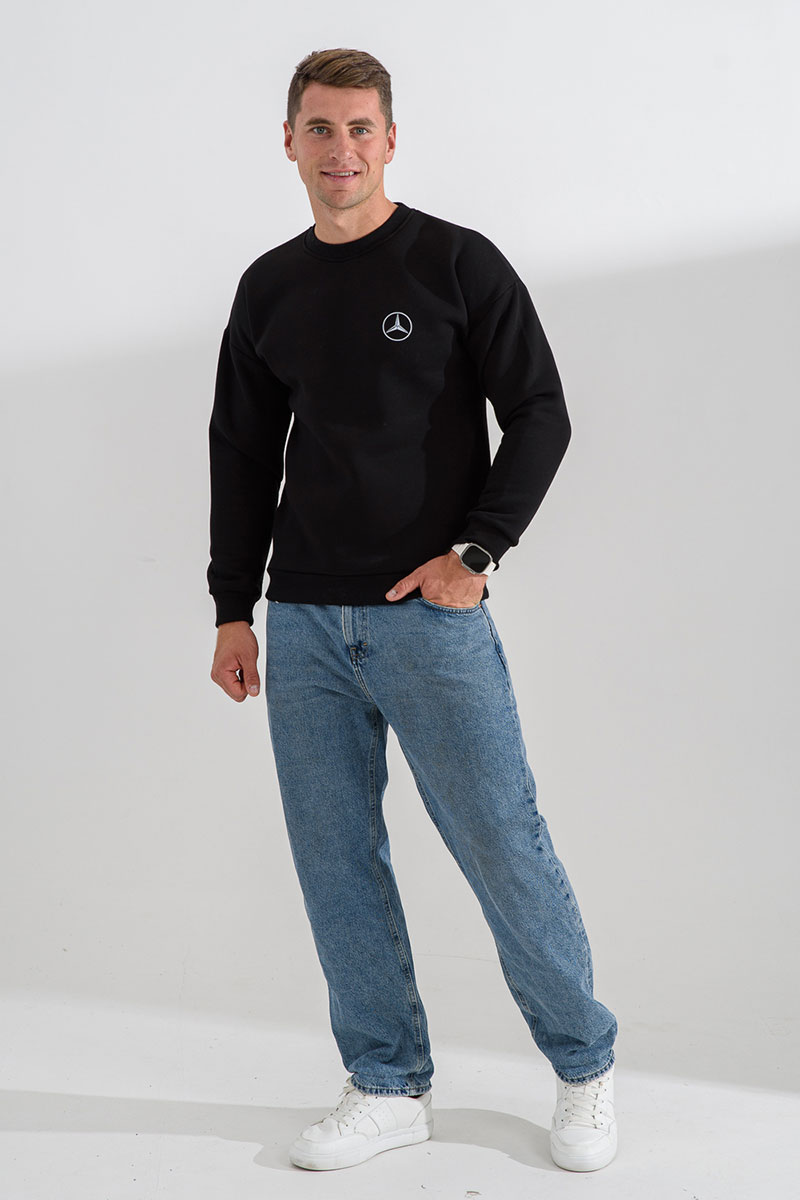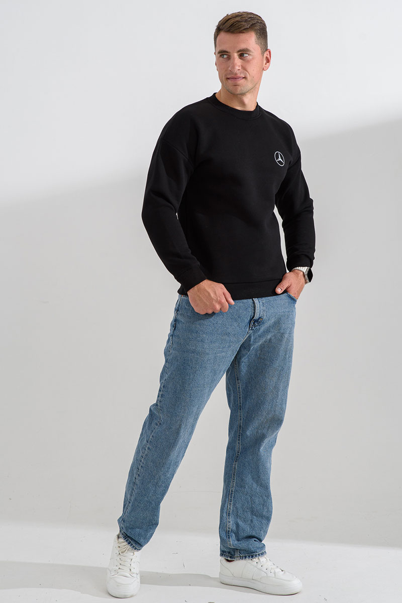 Свитшот мужской №8559 футер 3-х нитка с начесом (последний размер) черный Мерседес 50,56