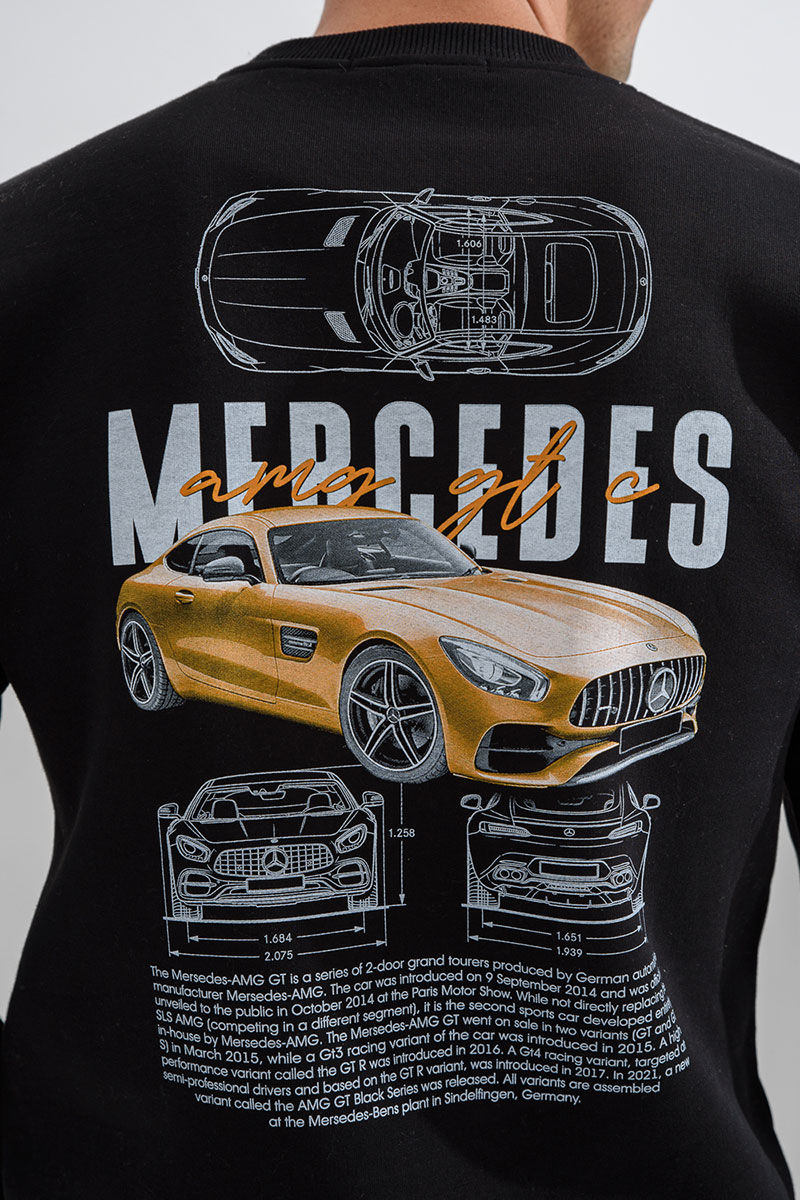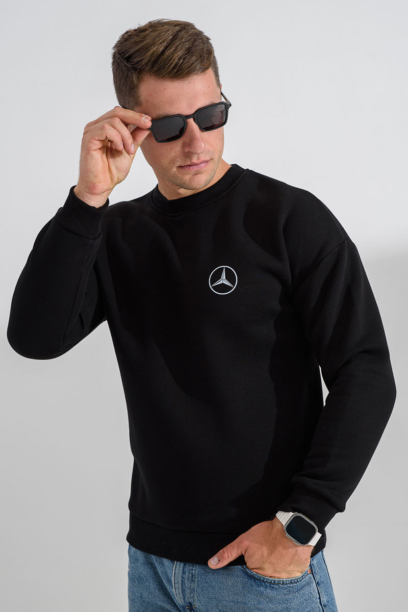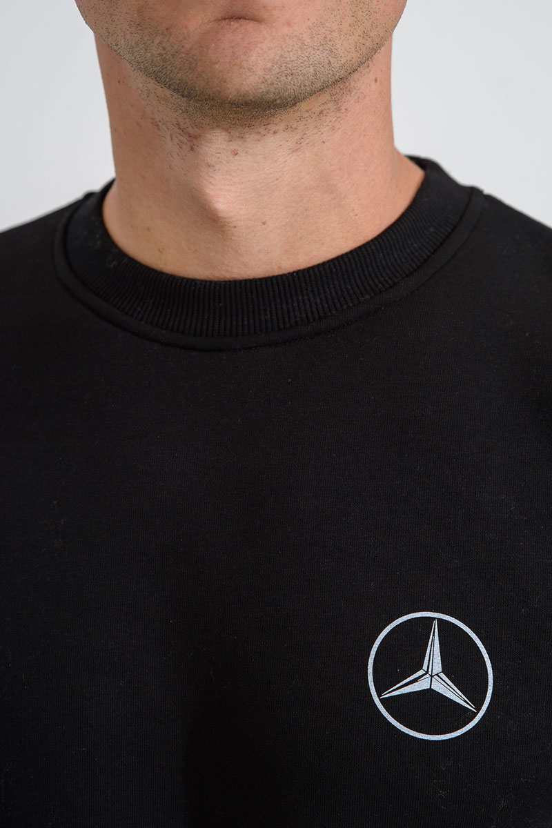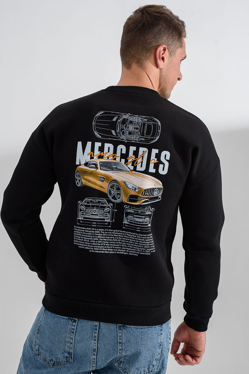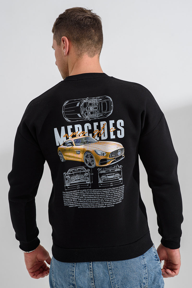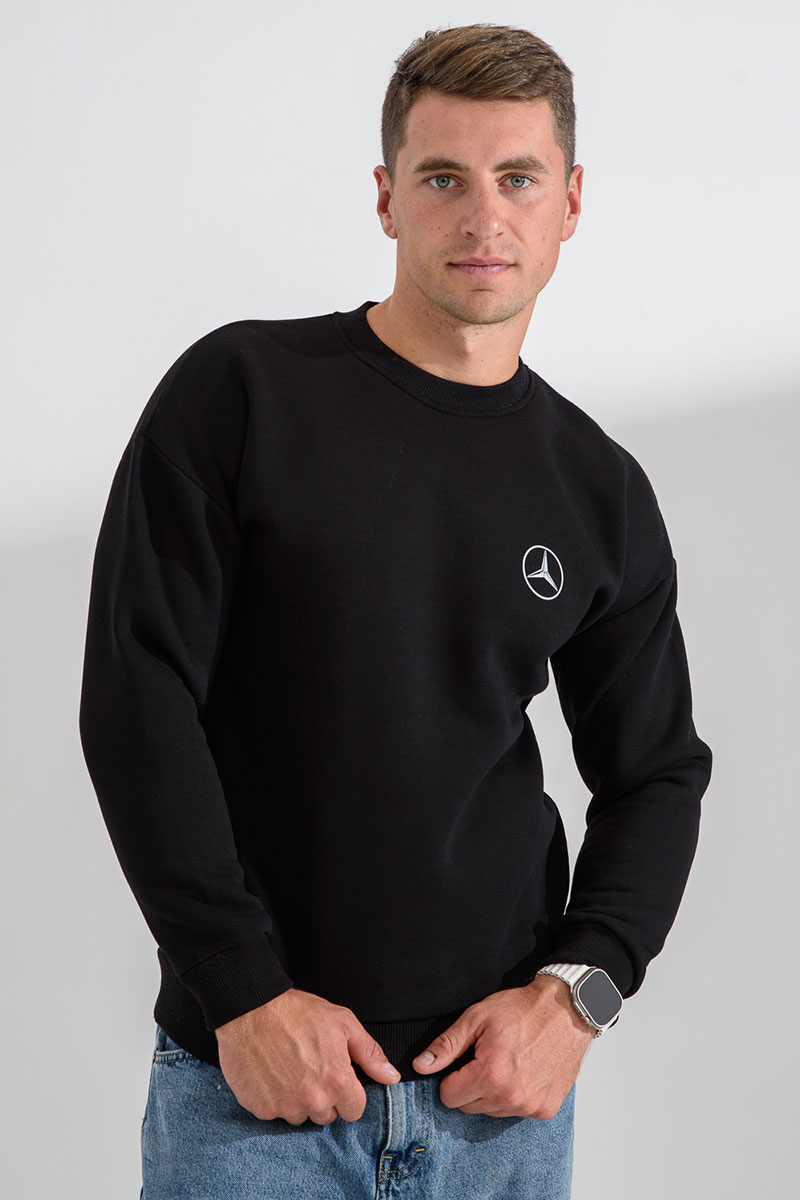 Свитшот мужской №8559 футер 3-х нитка с начесом (последний размер) черный Мерседес 50,56
