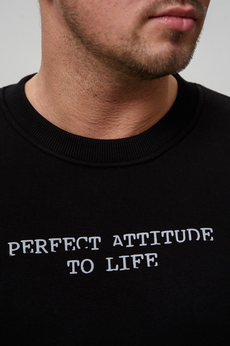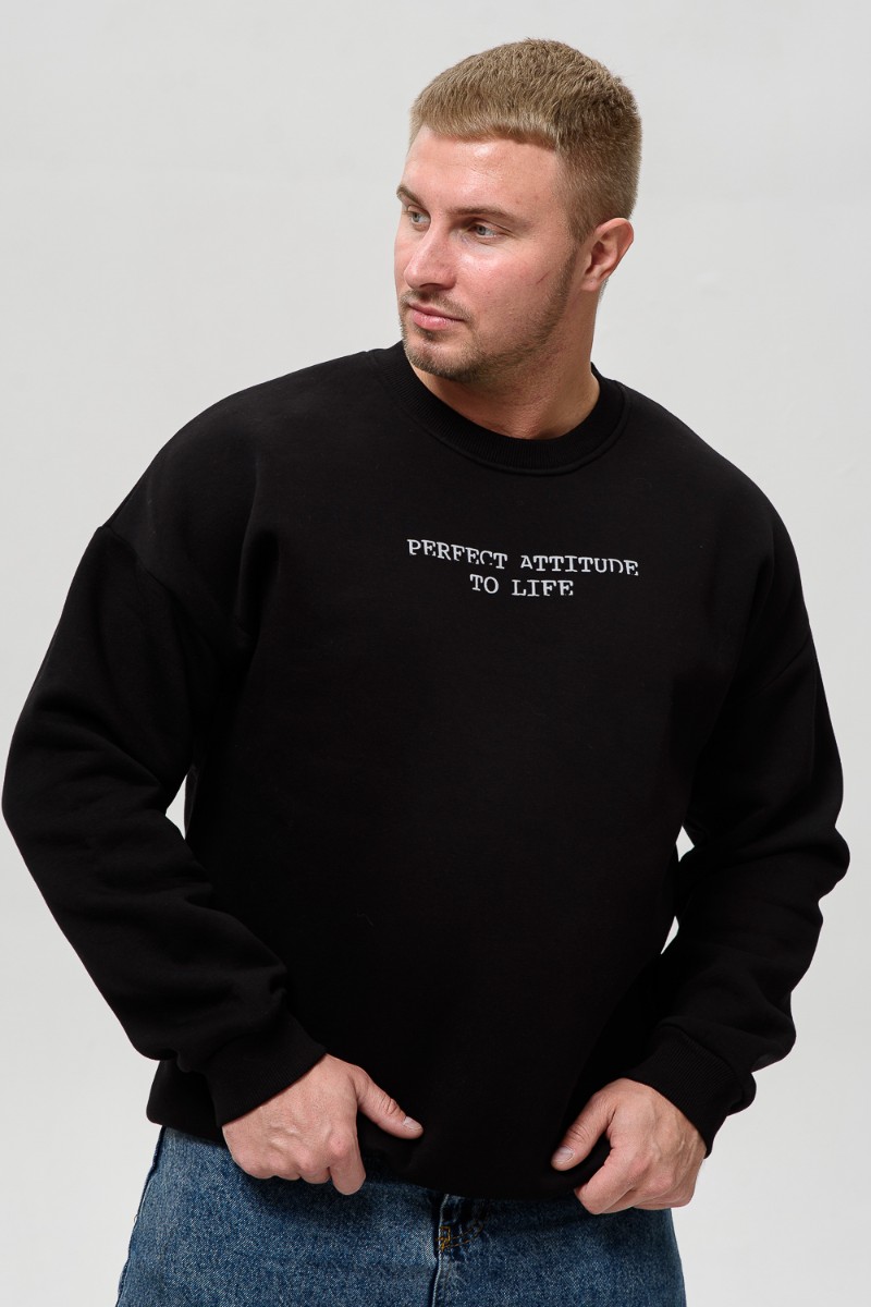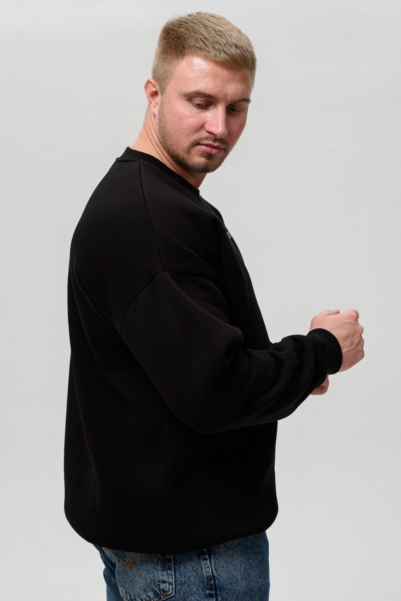 Свитшот мужской №8522 футер 3-х нитка с начесом (последний размер) черный-Отношение 48