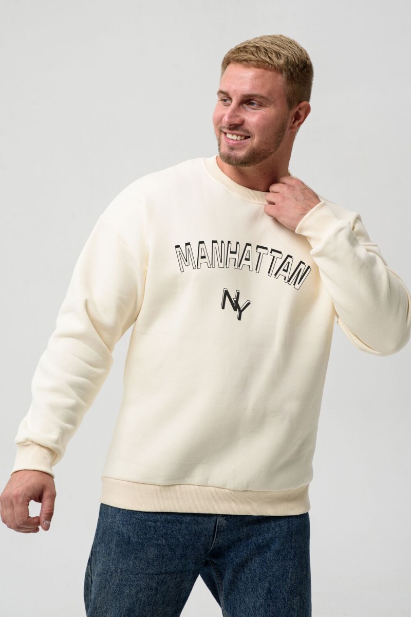 Свитшот мужской №8522 футер 3-х нитка с начесом (последний размер) молочный-Манхэттен 50,52,58,60
