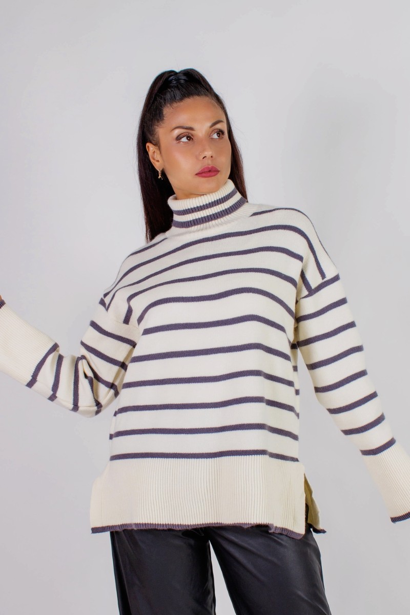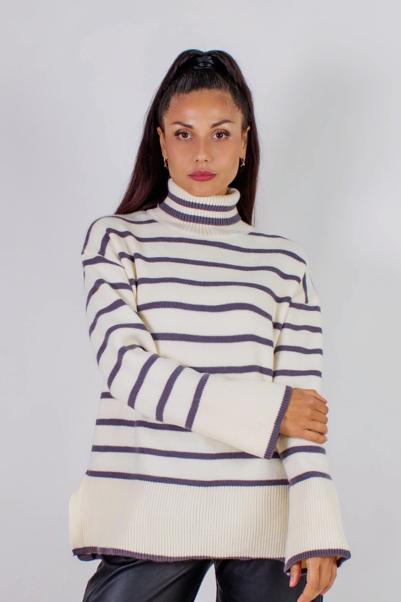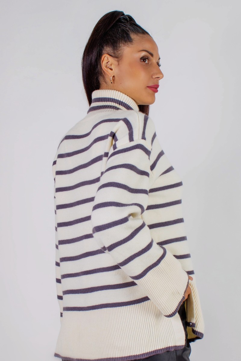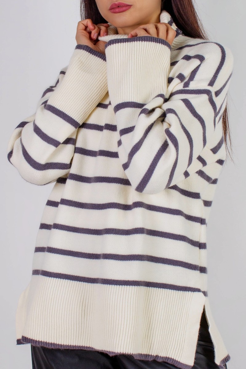 Джемпер женский №2918 акрил (последний размер) молочный-темно-серая полоса 44-52