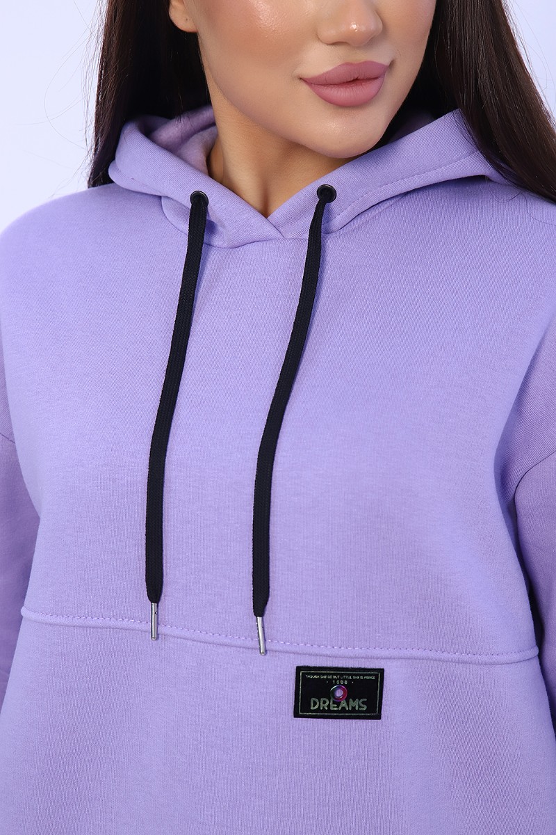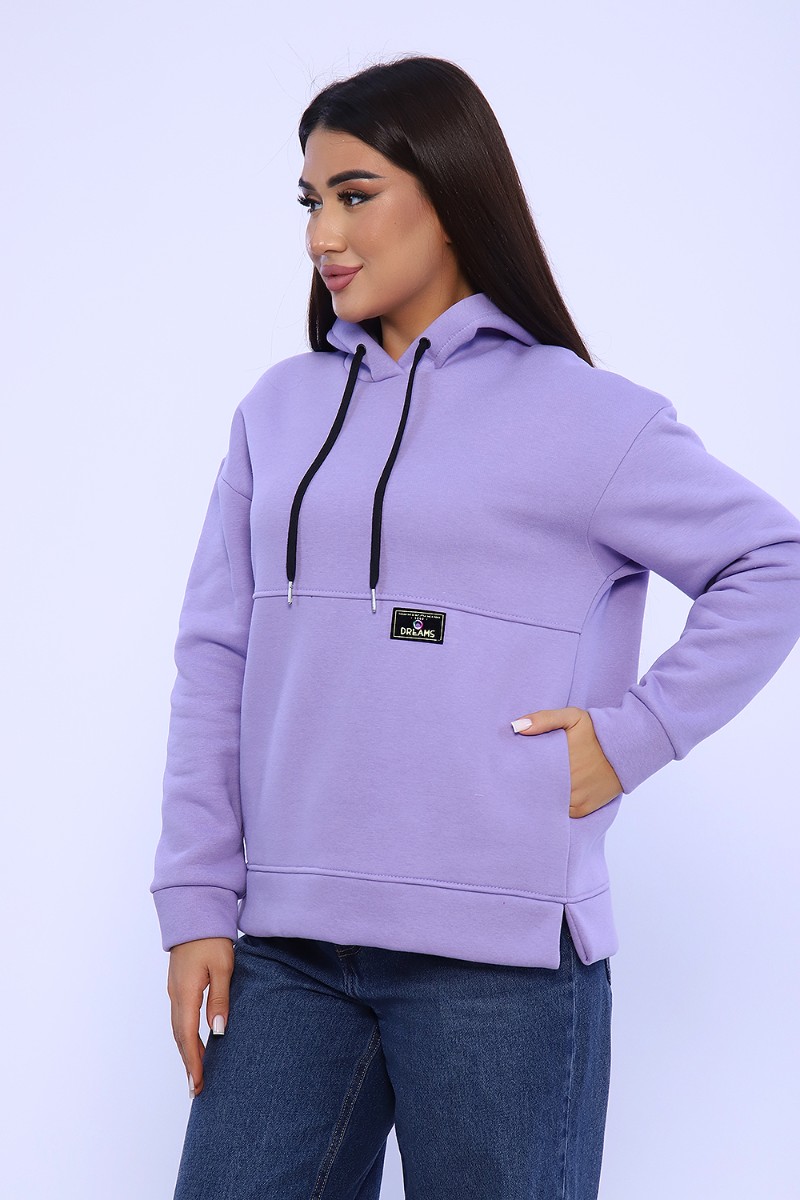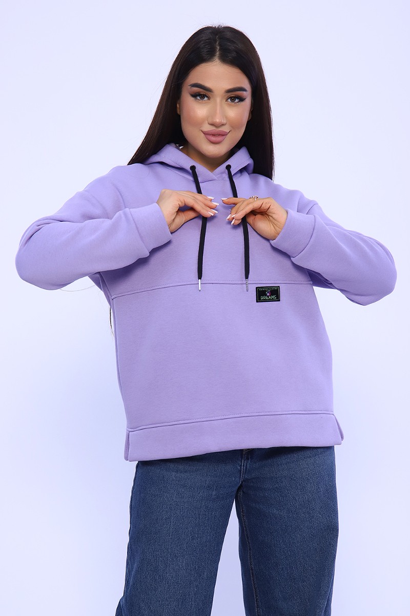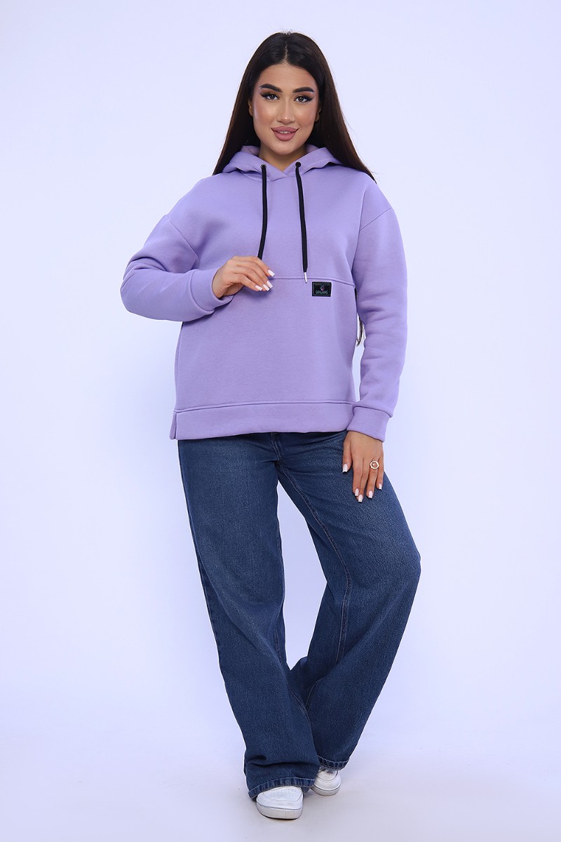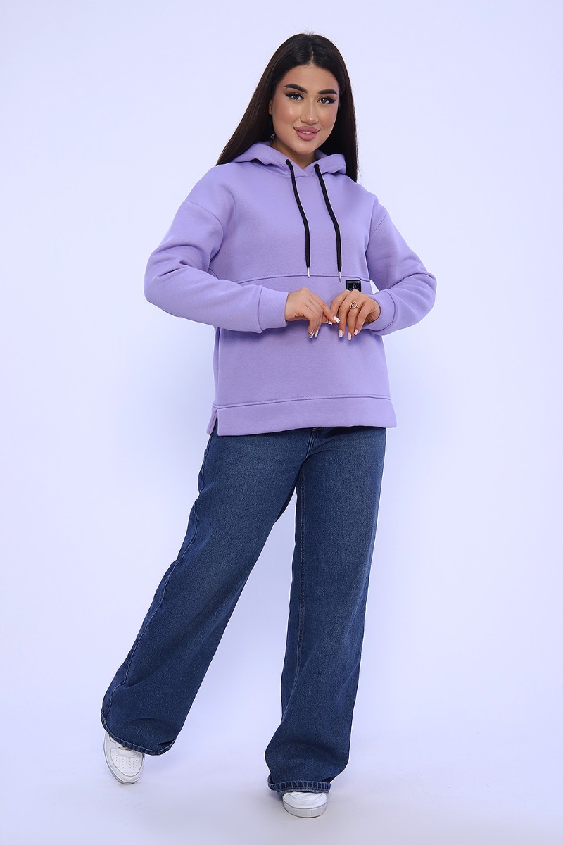 Худи женское №82043 футер 3-х нитка с начесом (последний размер) лаванда 52,54