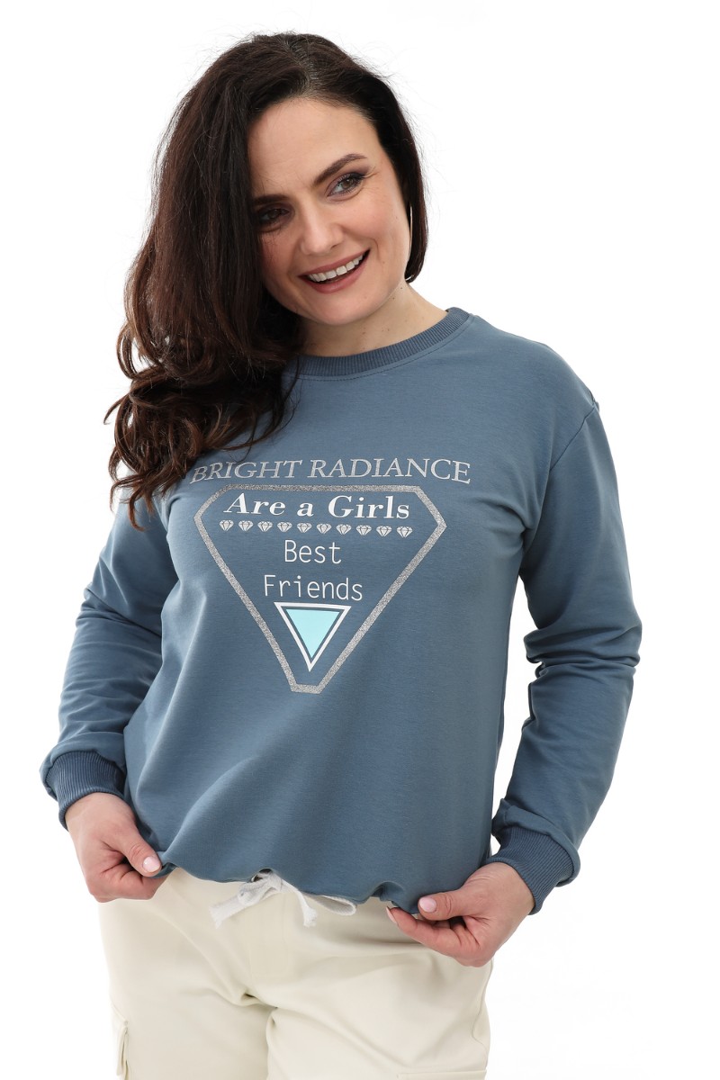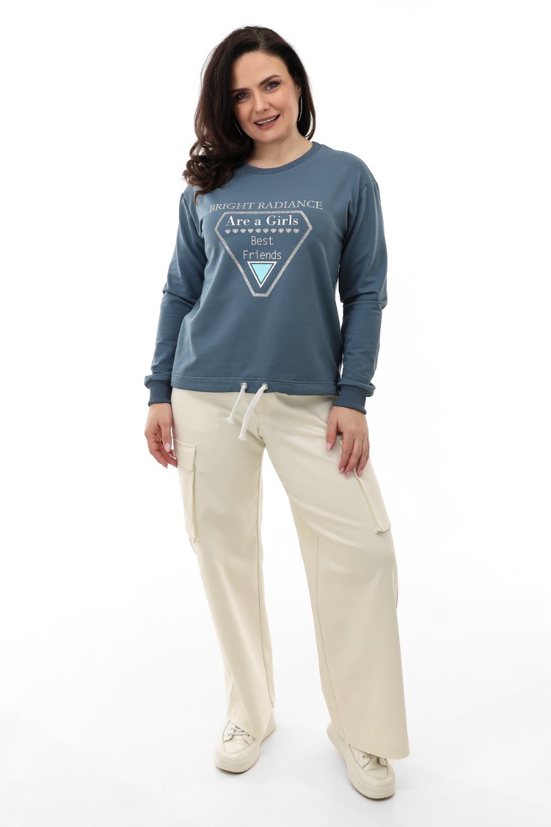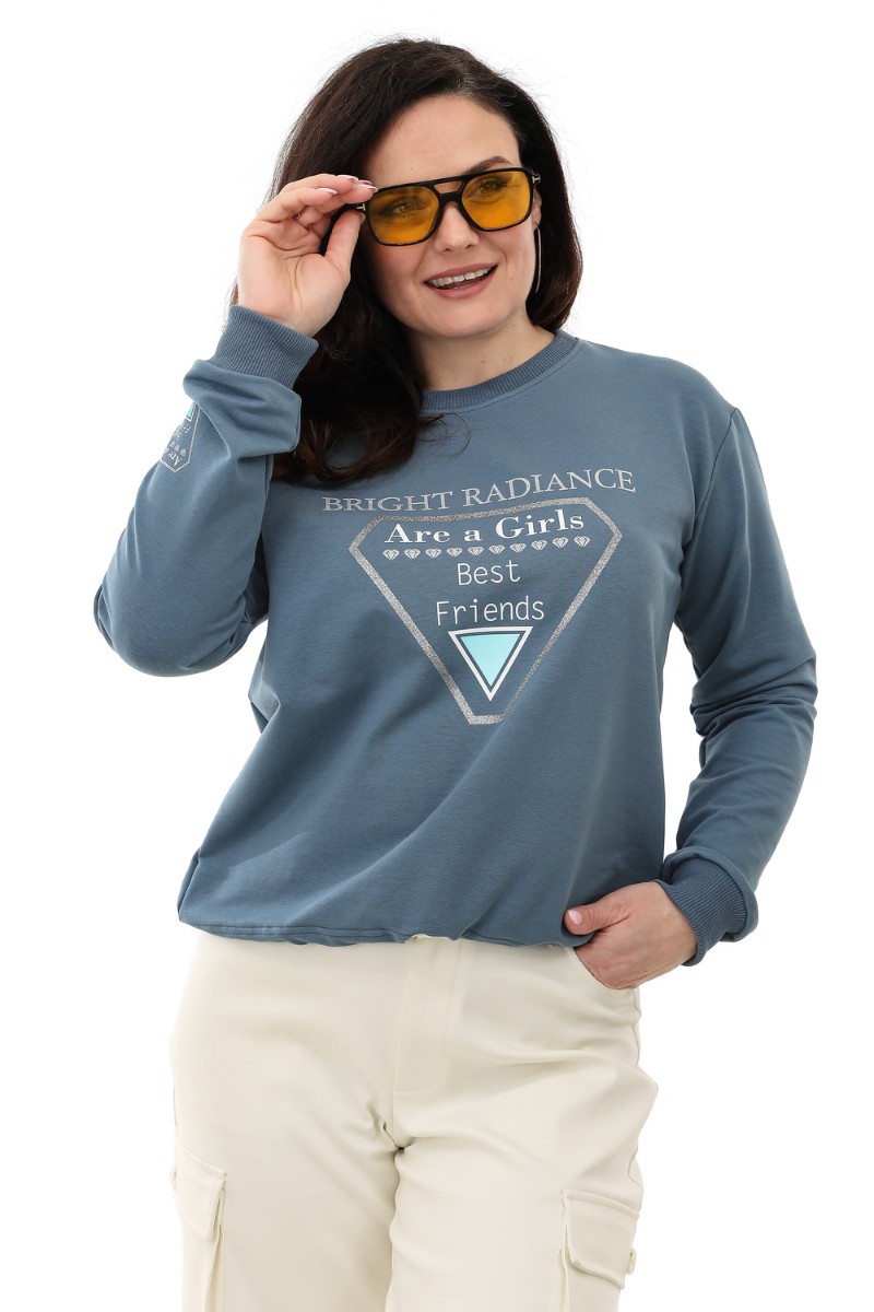 Свитшот женский №75001 футер с лайкрой 2-х нитка (последний размер) пепел 60