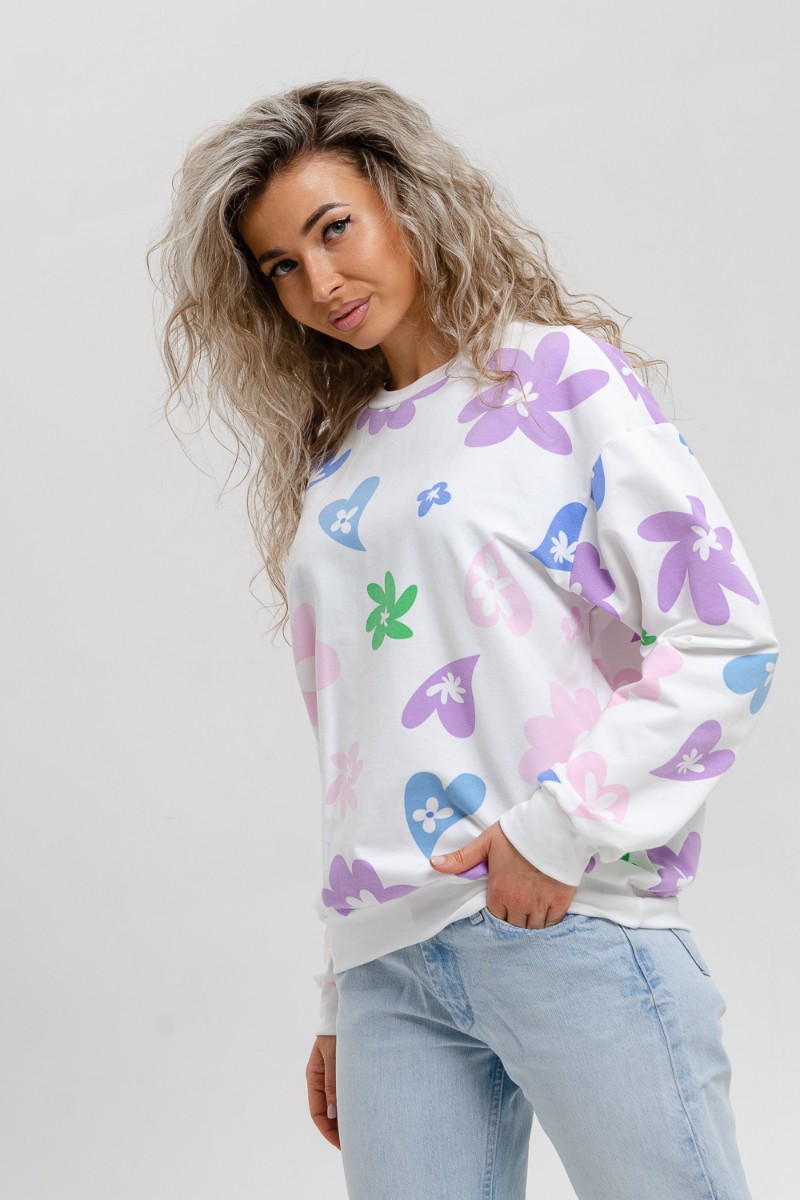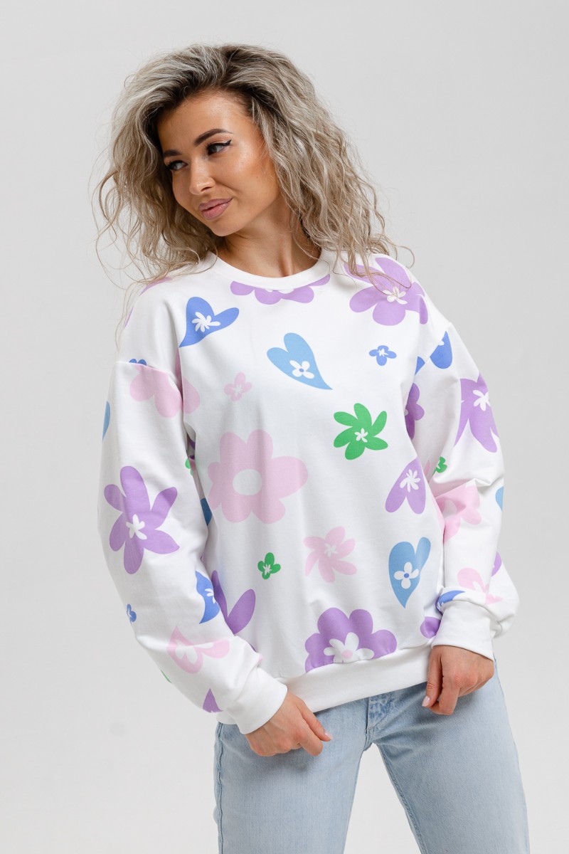 Представляем Вашему вниманию женский свитшот, который представляет собой идеальное сочетание стиля и комфорта. Легкий и одновременно теплый, он подходит для осенних, весенних и зимних дней. Будьте на волне модных трендов с этим аксессуаром, который подарит ощущение уюта и стильности. Оверсайз фасон придает ему объемность и особую изюминку. Свободный крой делает его универсальным для любых фигур - одевайте его сами или делайте интересные сочетания для ваших друзей или родных. Это не просто свитер или кофта, это настоящее произведение искусства. Использование цветочного мотива сочетается со свежими оттенками кремового тона, добавляя яркости вашему гардеробу. Он передает вам теплые эмоции и чувства через свои принты. Вы будете выглядеть потрясающе на любой праздник, вечеринке или просто на отдыхе. Материалы, используемые в производстве этого свитшота, обладают премиум качеством. Этот джемпер выполнен из мягкого хлопка, который приятен к телу и создает ощущение комфорта. Такой материал делает его подходящим для девушек, женщин и подростков. Независимо от того, ищете ли вы шикарный наряд или чисто домашний комплект, этот свитшот с легкостью удовлетворит все ваши потребности. Любовь к нему возникнет с первого взгляда - он станет вашим неповторимым выбором не только 14 февраля или 8 марта, но и на любую другую дату. Купите этот свитшот один раз - и он станет вашей любимой вещью в гардеробе. Универсальная посадка делает его подходящим как для женщин, так и для мужчин. Будьте стильными, яркими и модными с этим элегантным аксессуаром.