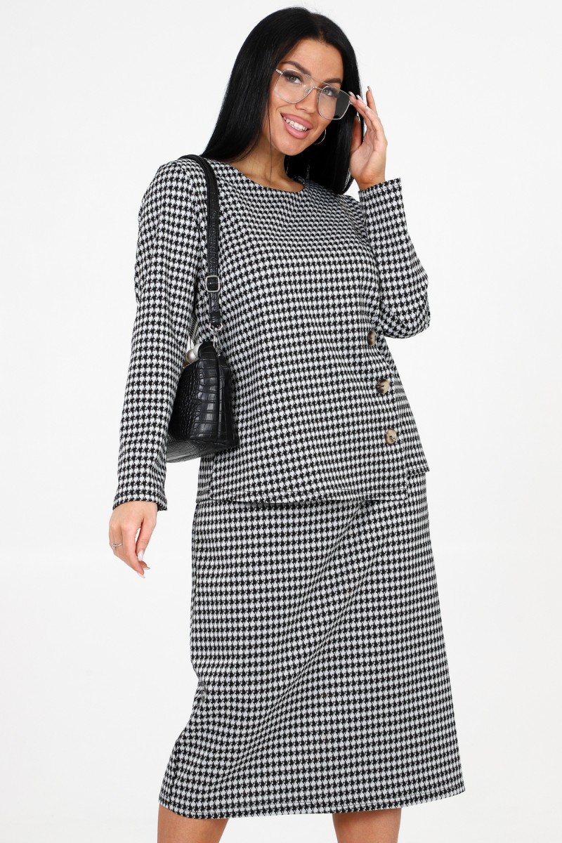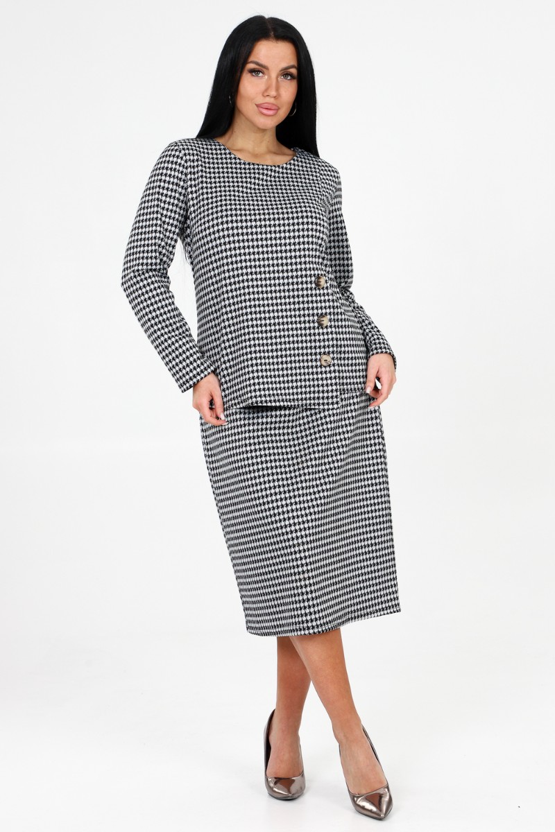 Представляем Вашему вниманию женский костюм двойку, который является идеальным выбором для стильных и модных женщин. Этот костюм состоит из туники и юбки на резинке, создавая элегантный образ. Туника имеет длинные рукава и украшена планкой с пуговицами, добавляя изысканный шарм этому костюму. Кроме того, туника асимметрична, что придает ей особую привлекательность.
