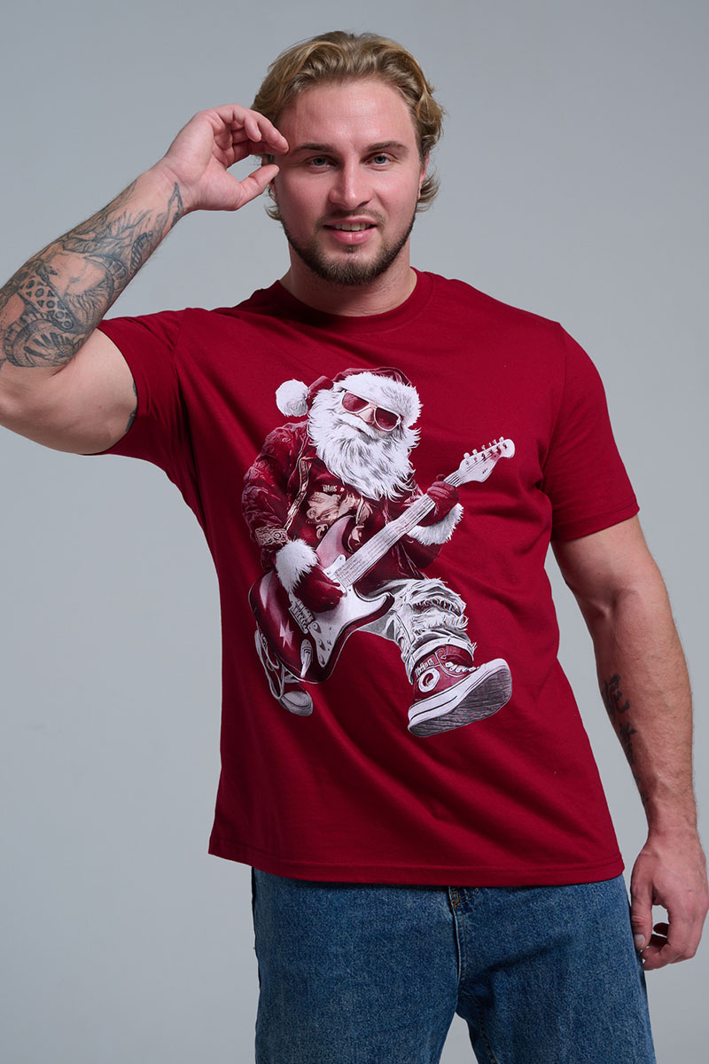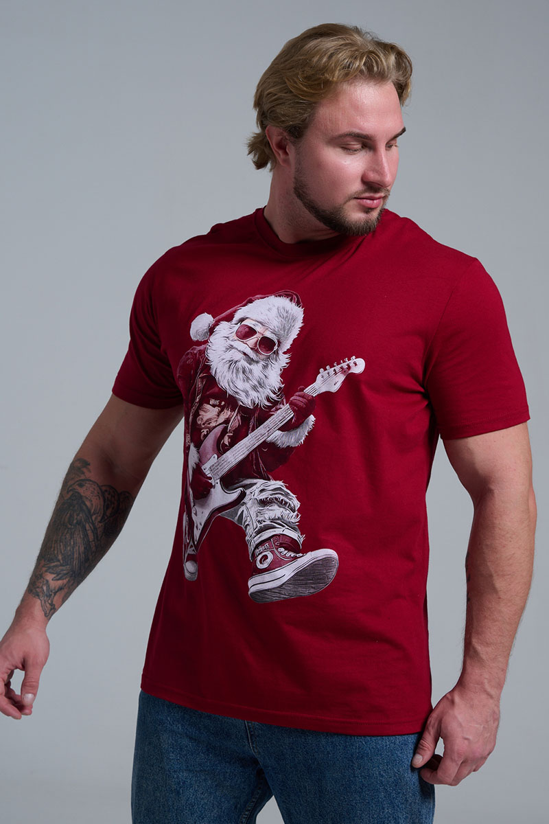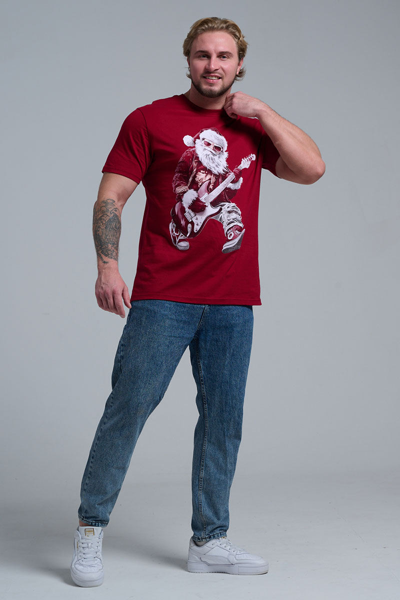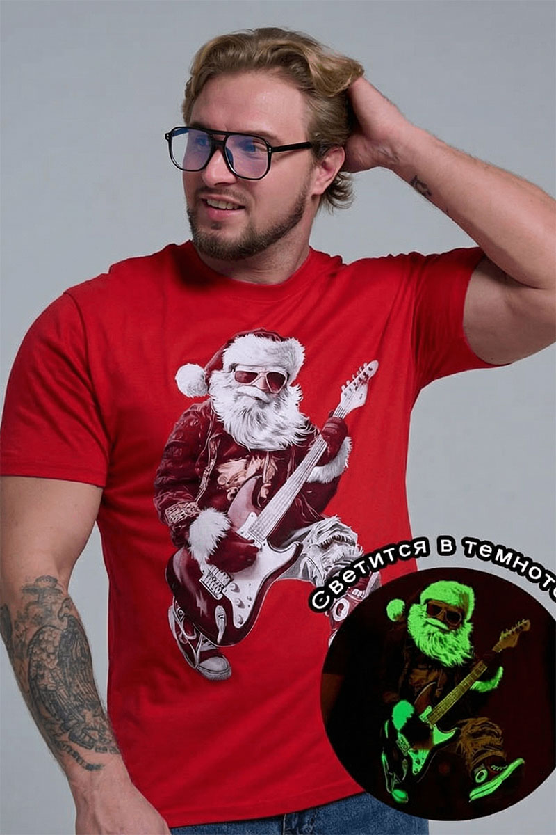 Представляем Вашему вниманию крутую футболку. Представьте: Новый год, вечеринка в разгаре, а вы в стильной красной футболке с Сантой, который не просто раздает подарки, а зажигает на полную! На одной версии – Santa DJ в наушниках, миксует треки за пультом. На второй – Santa Rocker с гитарой, в прыжке, готовый к соло! Дизайн в белом и красном – яркий, юмористичный и супер-актуальный для праздников.