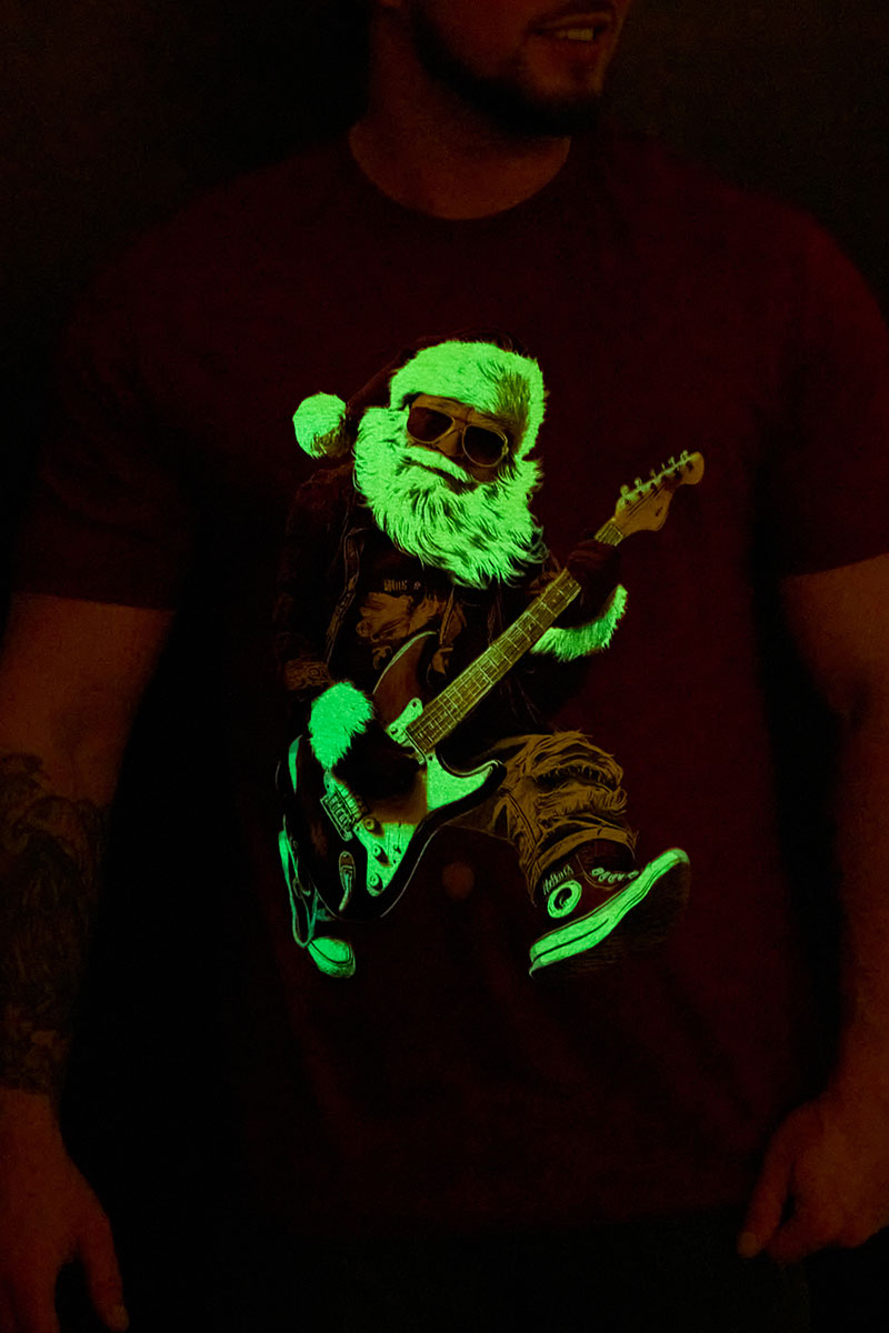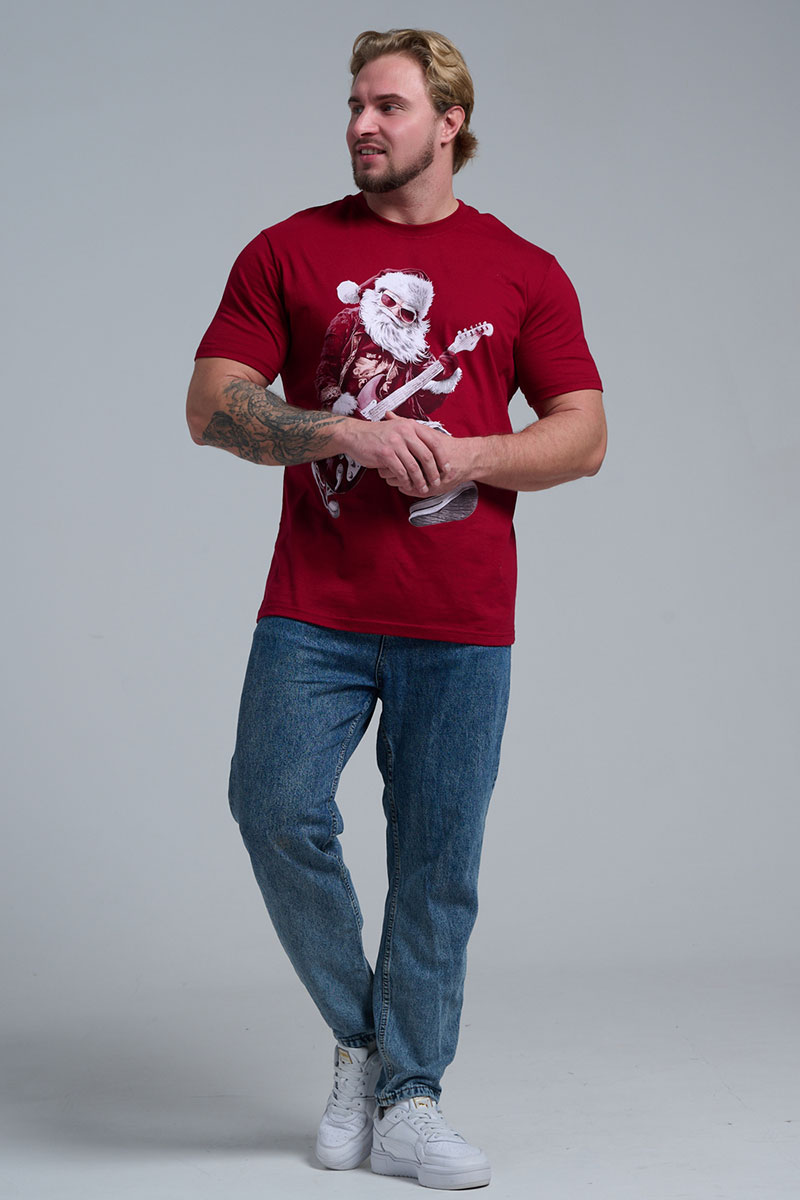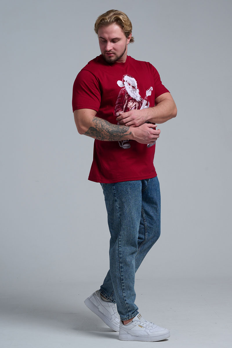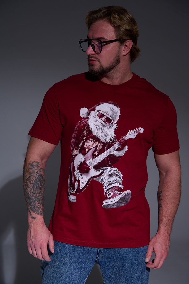 Футболка унисекс светящаяся №8581 кулирка (последний размер) бордо Дмороз с гитарой 52,56