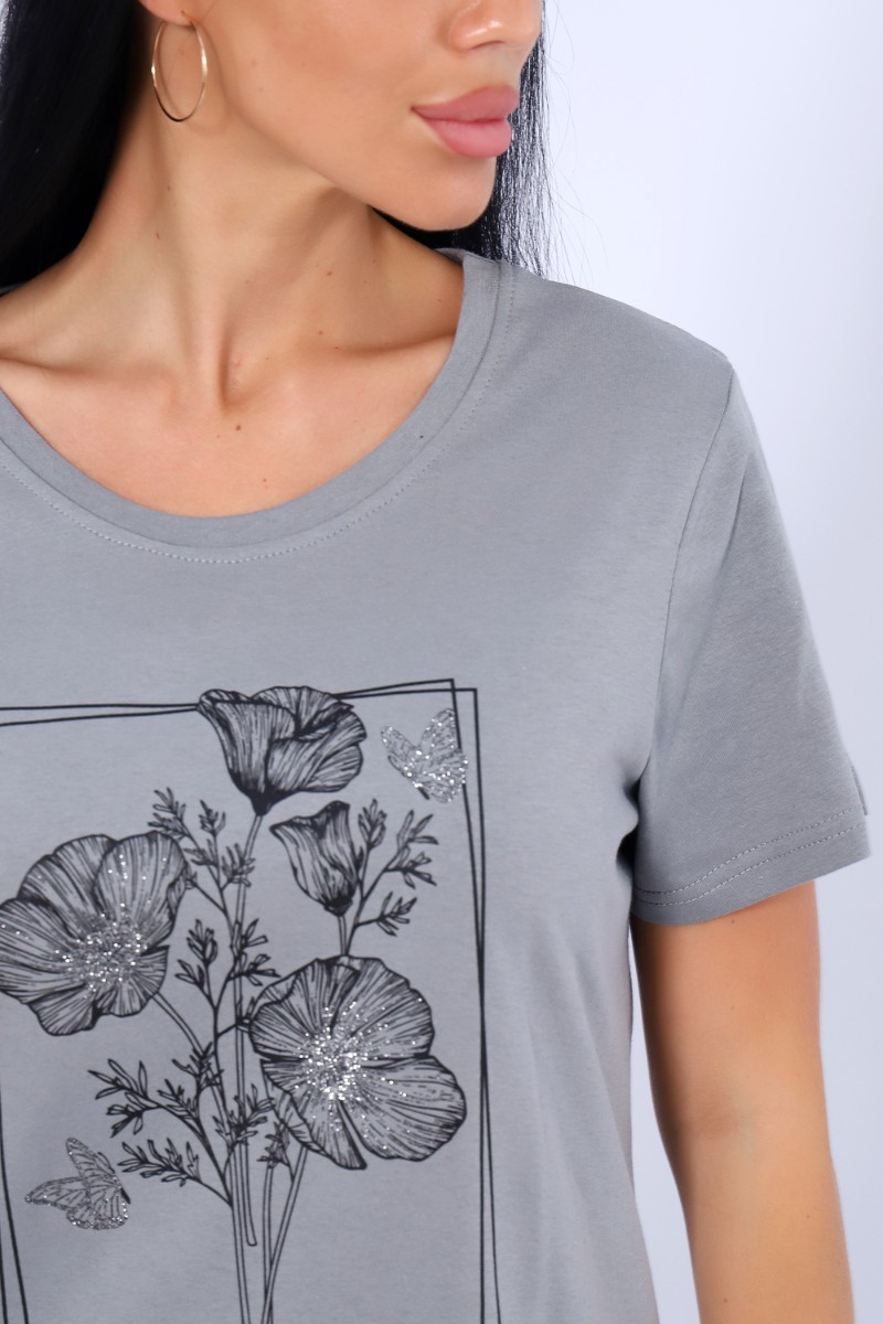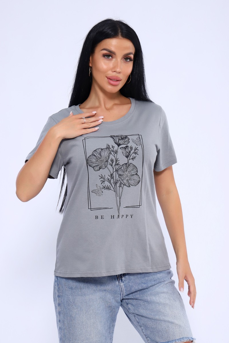 Футболка женская №80035 кулирка (последний размер) серый 48