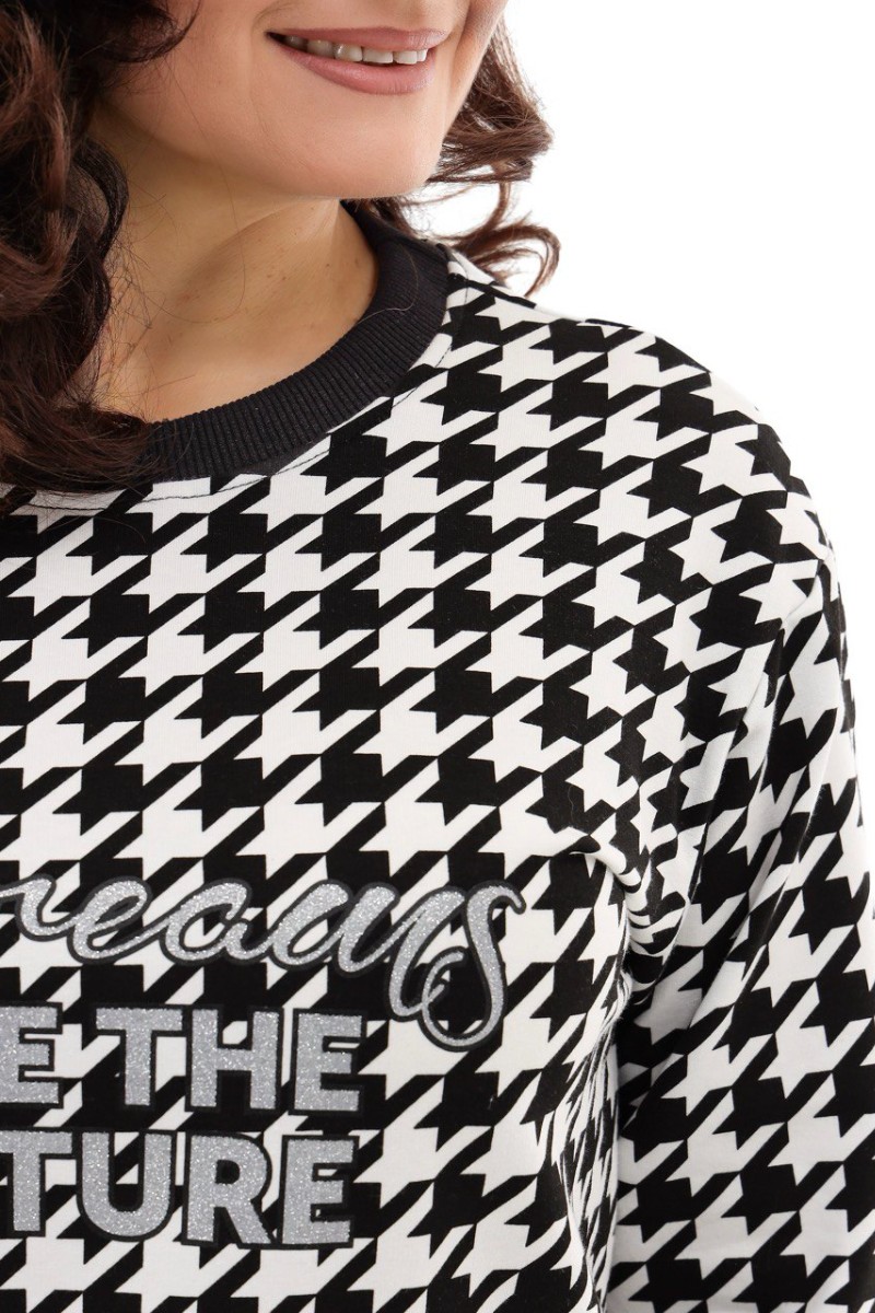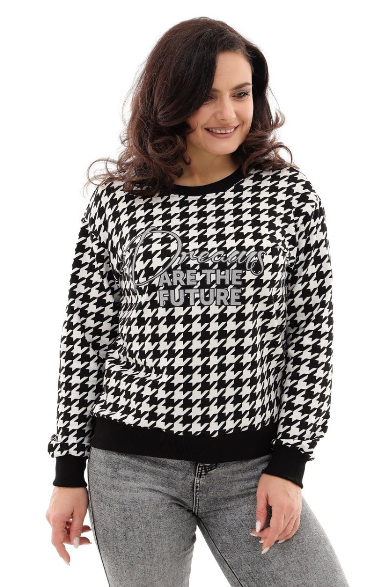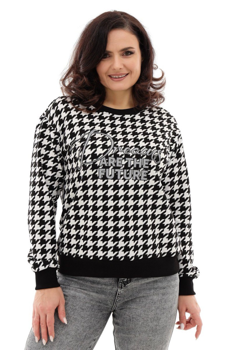 Представляем Вашему вниманию свитшот женский с принтом больших размеров - это идеальный вариант для тех, кто ценит комфорт и стиль в одежде. Этот свитшот выполнен из футера двухнитки высокого качества, благодаря чему он нежный к телу и приятный на ощупь. Более того, он без начеса, что позволяет носить его даже в теплое время года, не беспокоясь о перегреве. Особенностью этого свитшота является его большой размер, который отлично подходит для женщин с пышными формами. Комфортная посадка придает свободу движения. Вы будете выглядеть привлекательно и стильно в любой ситуации. Кроме того, свитшот - это отличная возможность выразить свою индивидуальность. Прямой крой подчеркнёт Вашу красоту и фигуру, а принт добавит оригинальности и неповторимости Вашему образу. Также свитшот легко стирается и сохраняет свой первоначальный вид даже после многократных стирок. Свитшот с принтом - идеальный выбор для стильных и модных женщин, которые ценят комфорт и индивидуальность.