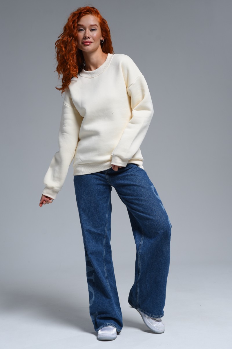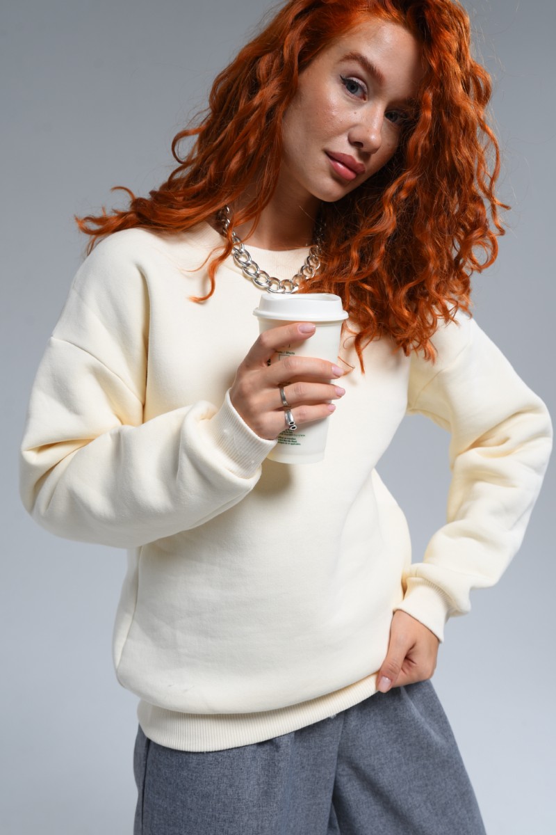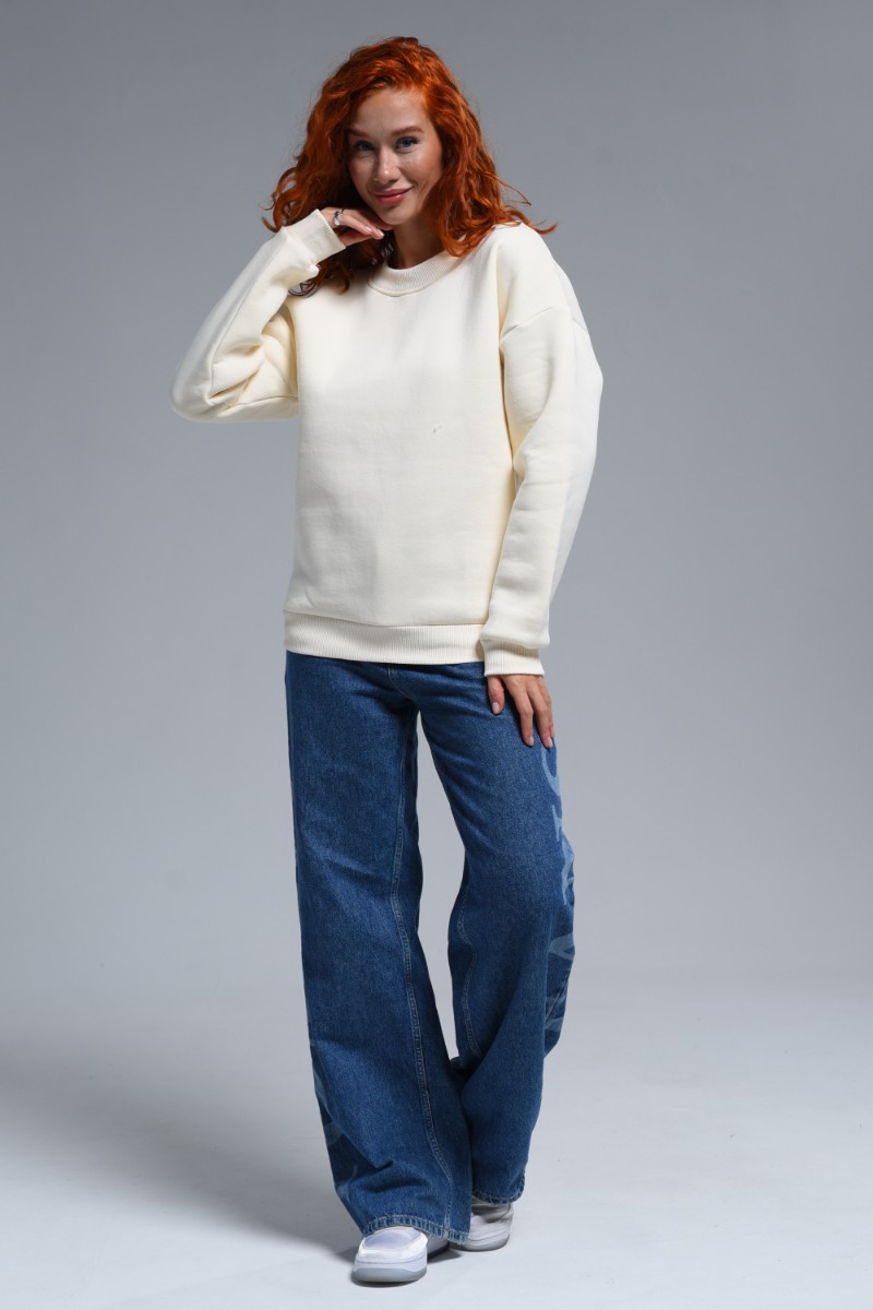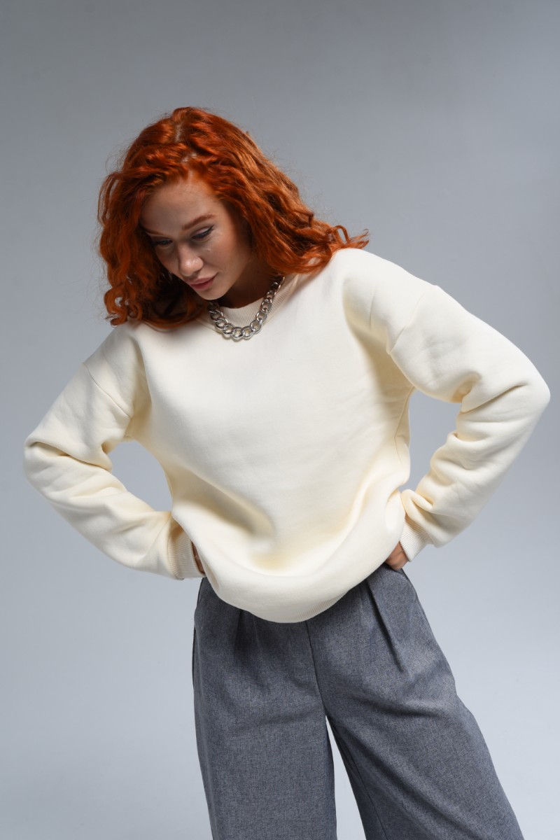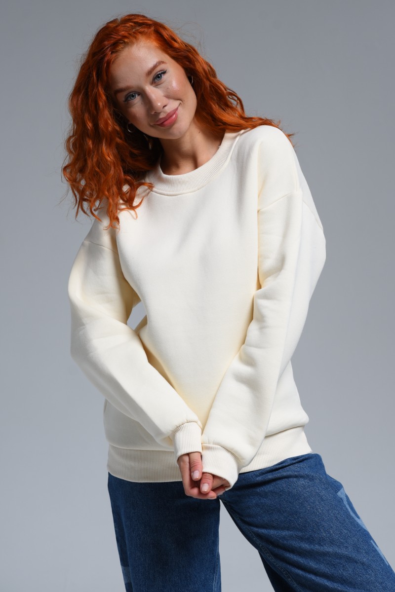 Свитшот женский №14422 футер 3-х нитка с начесом (последний размер) молочный 42,46,52