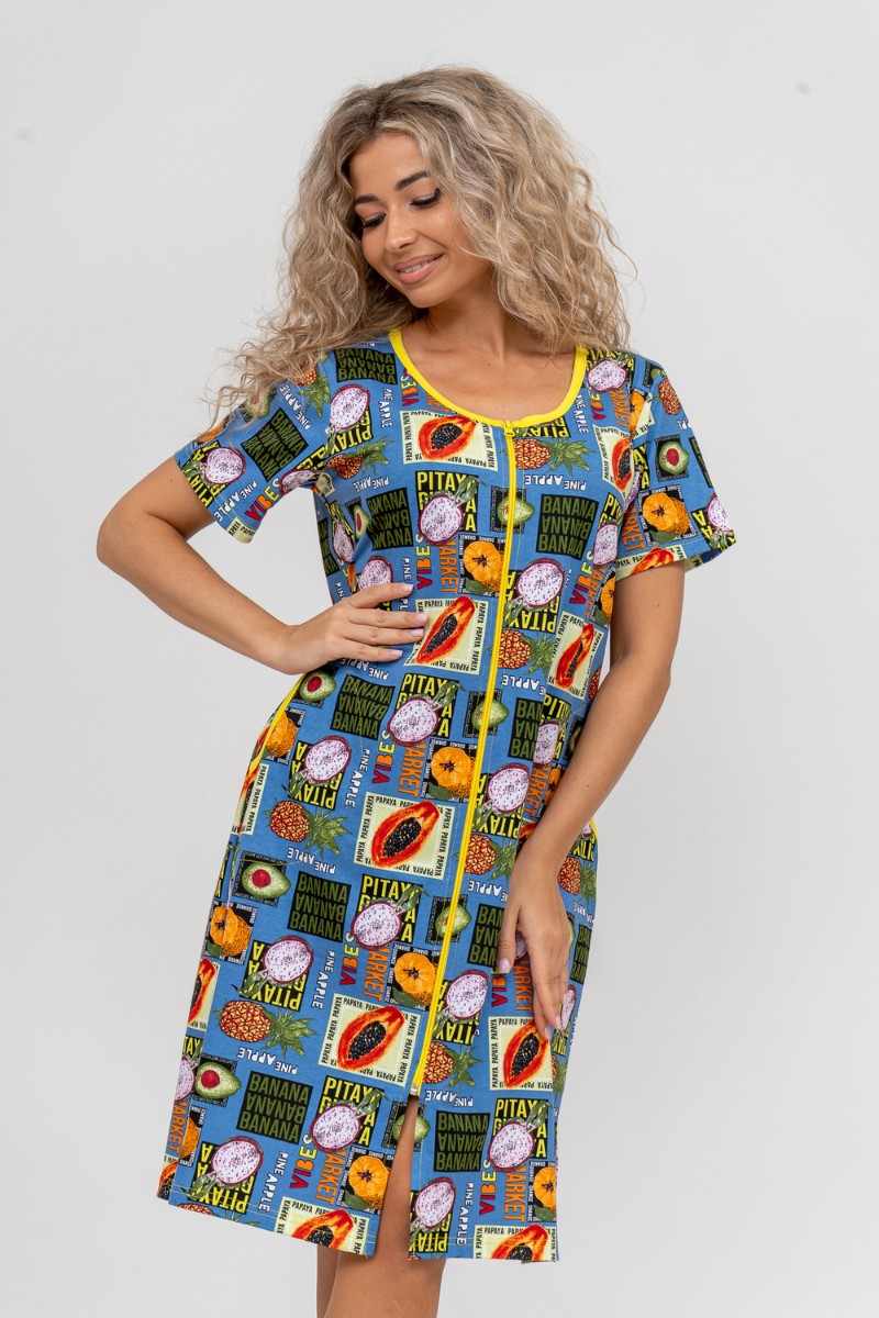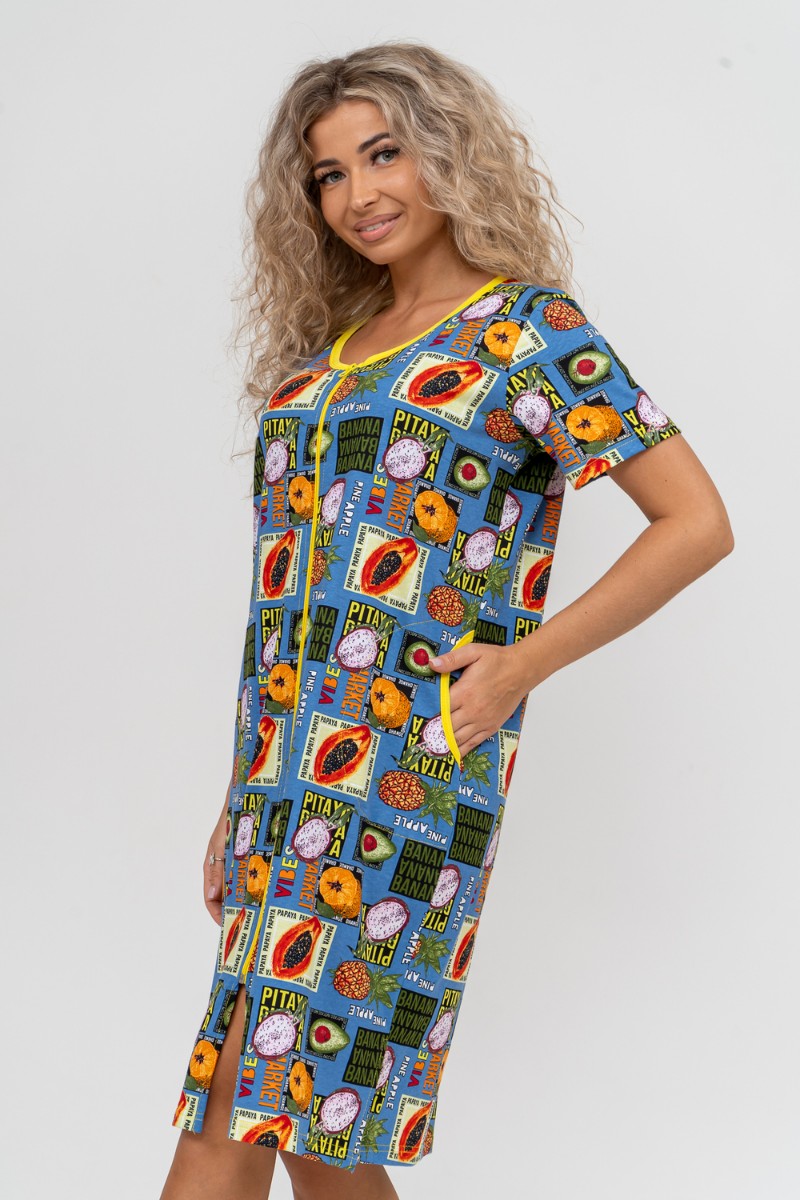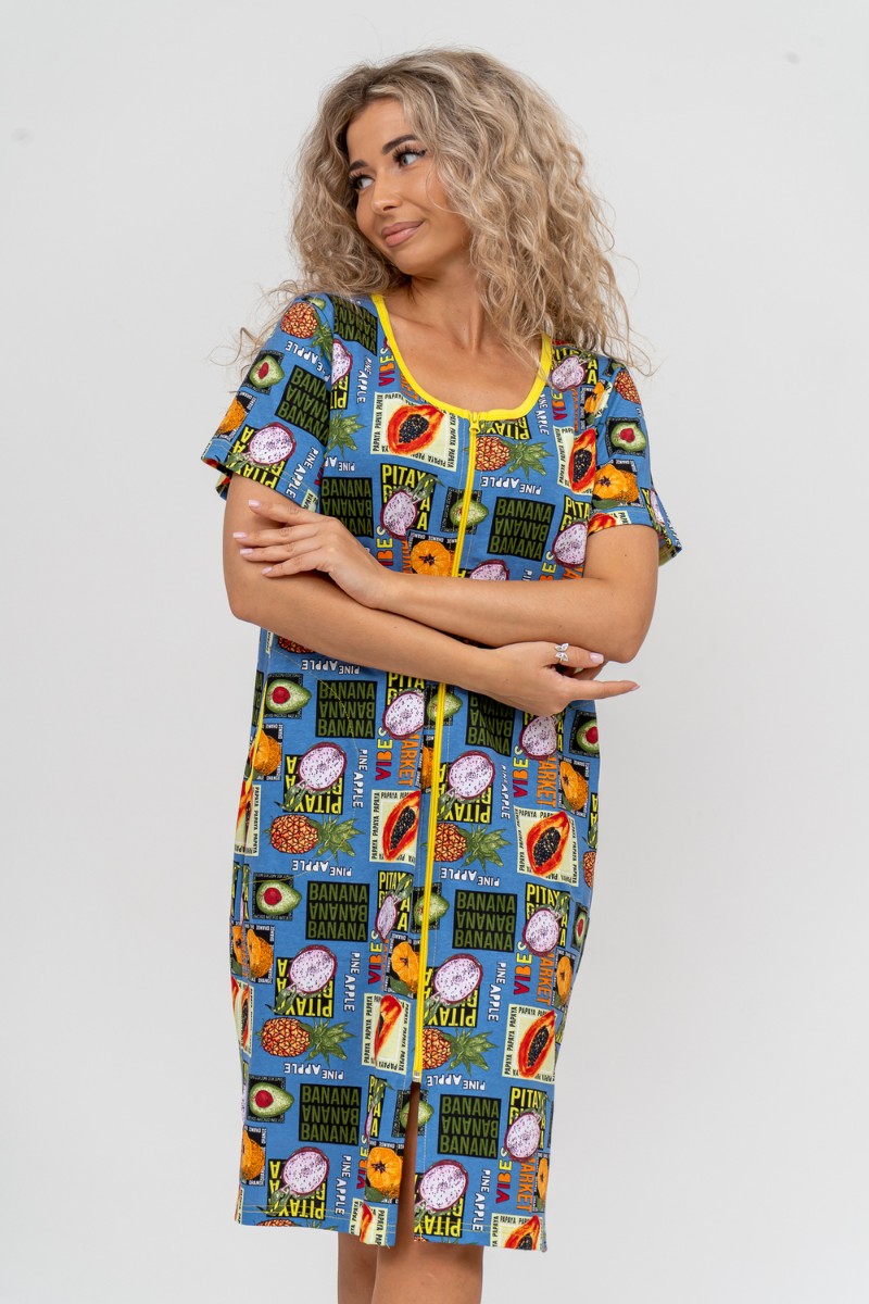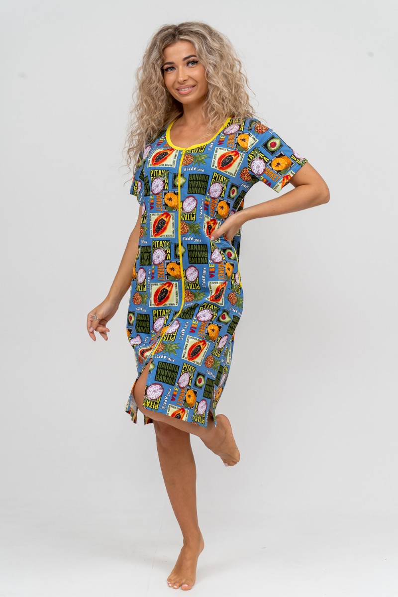 Халат женский №37007 кулирка (р-ры: 48-58) голубой