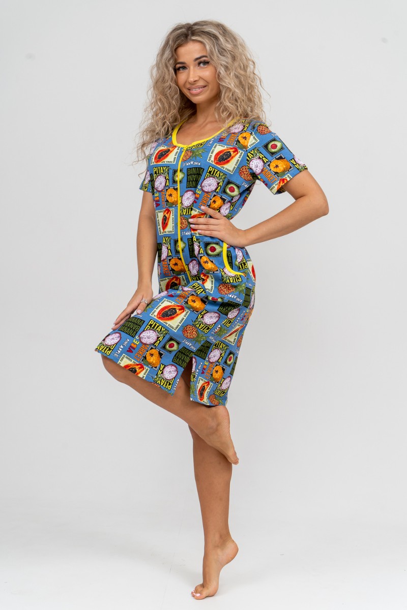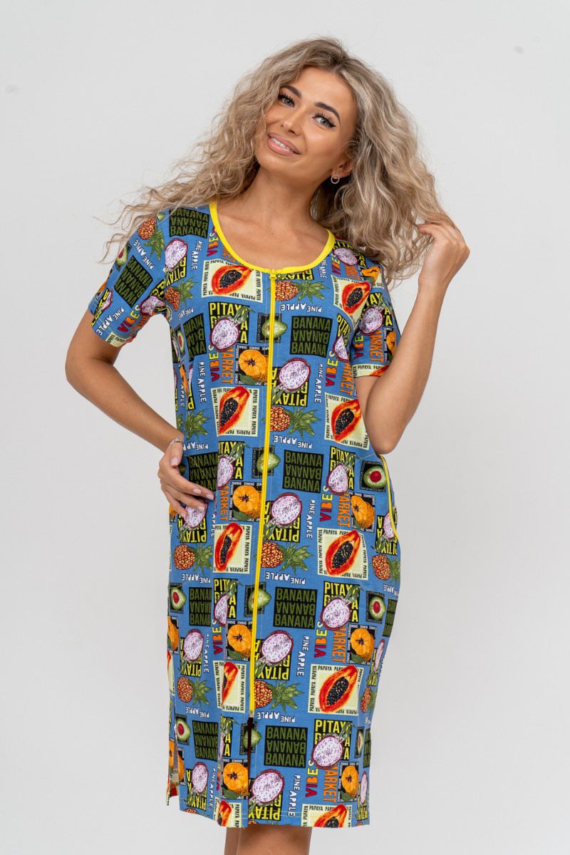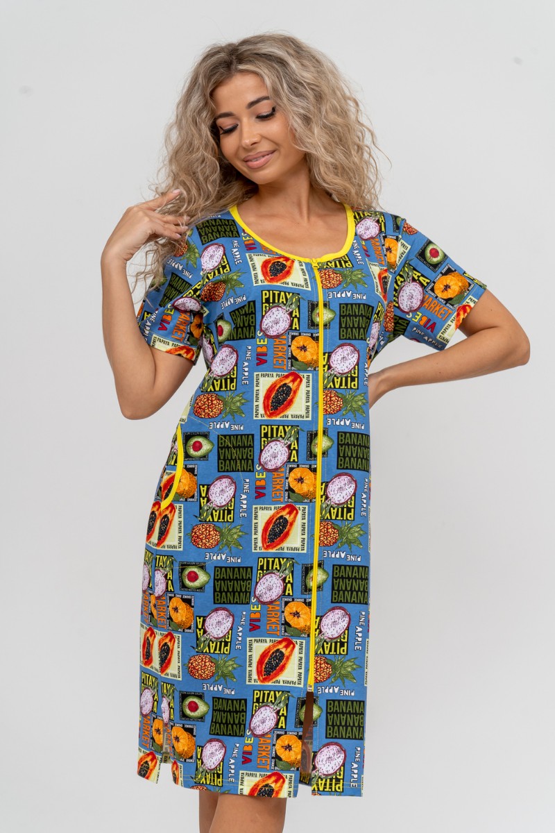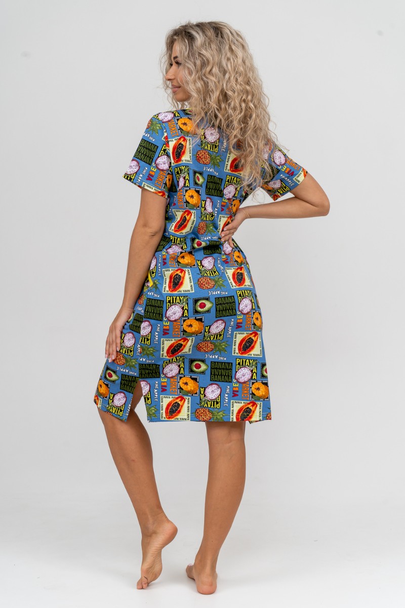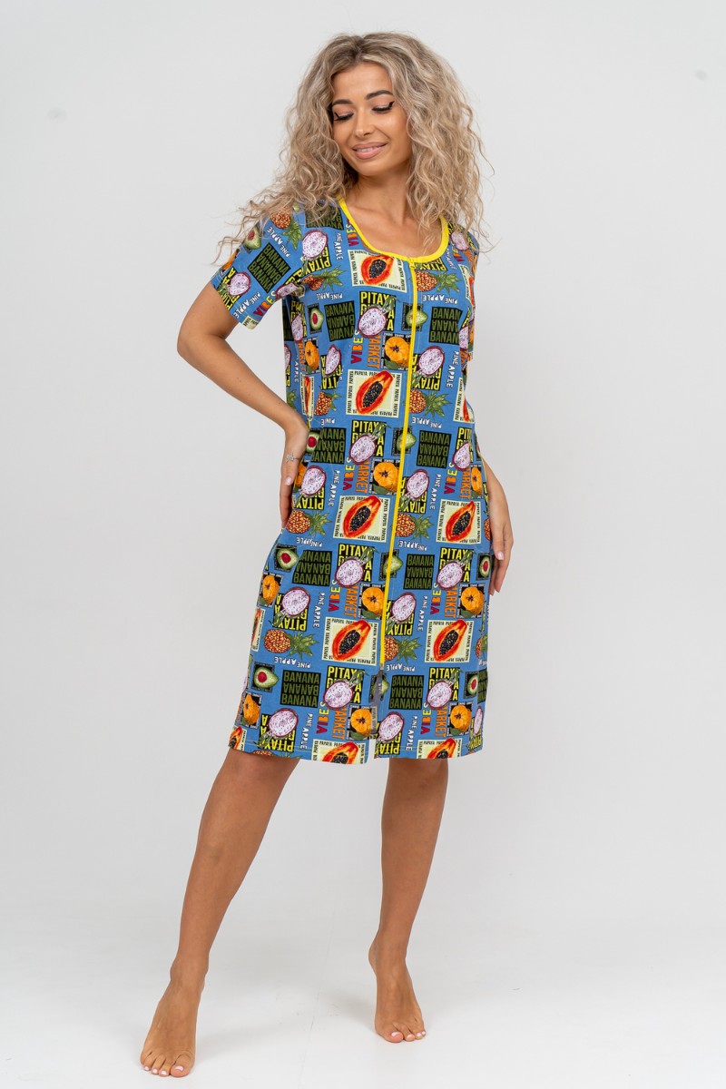 Халат женский №37007 кулирка (р-ры: 48-58) голубой