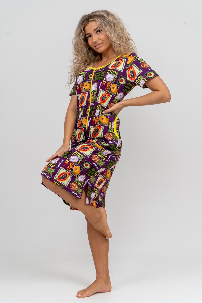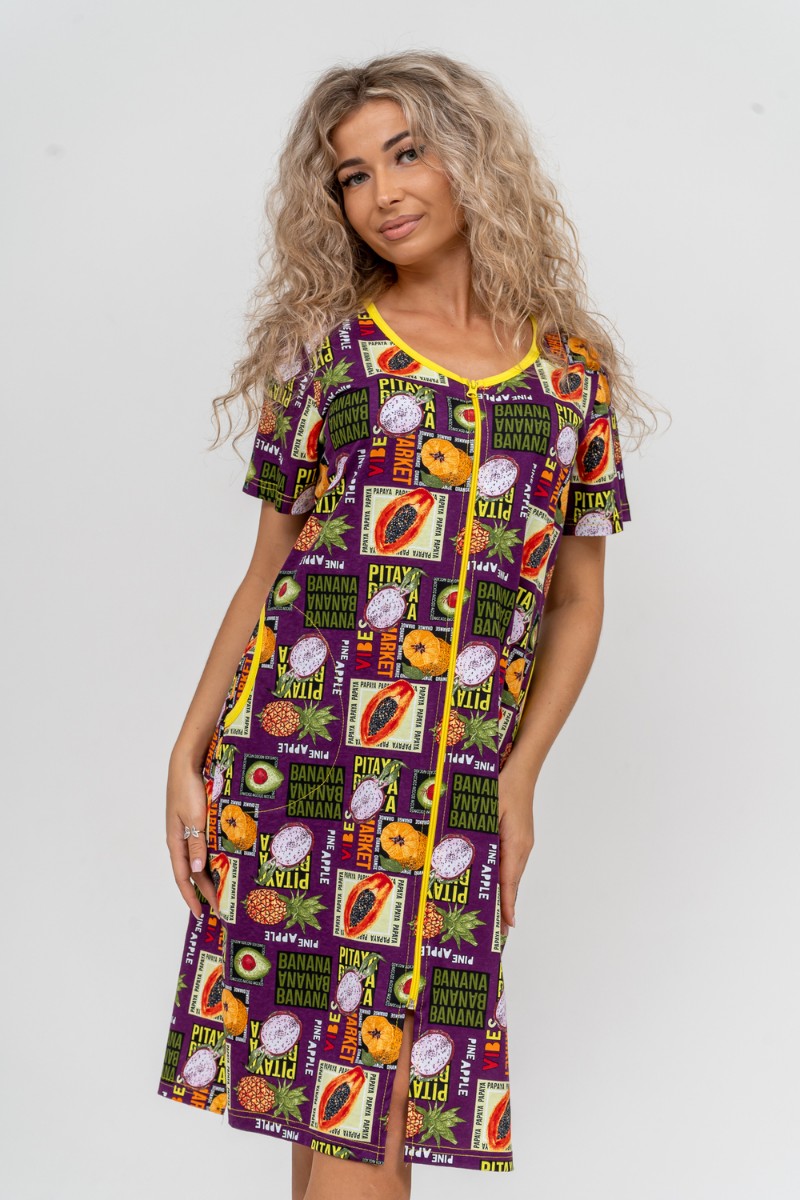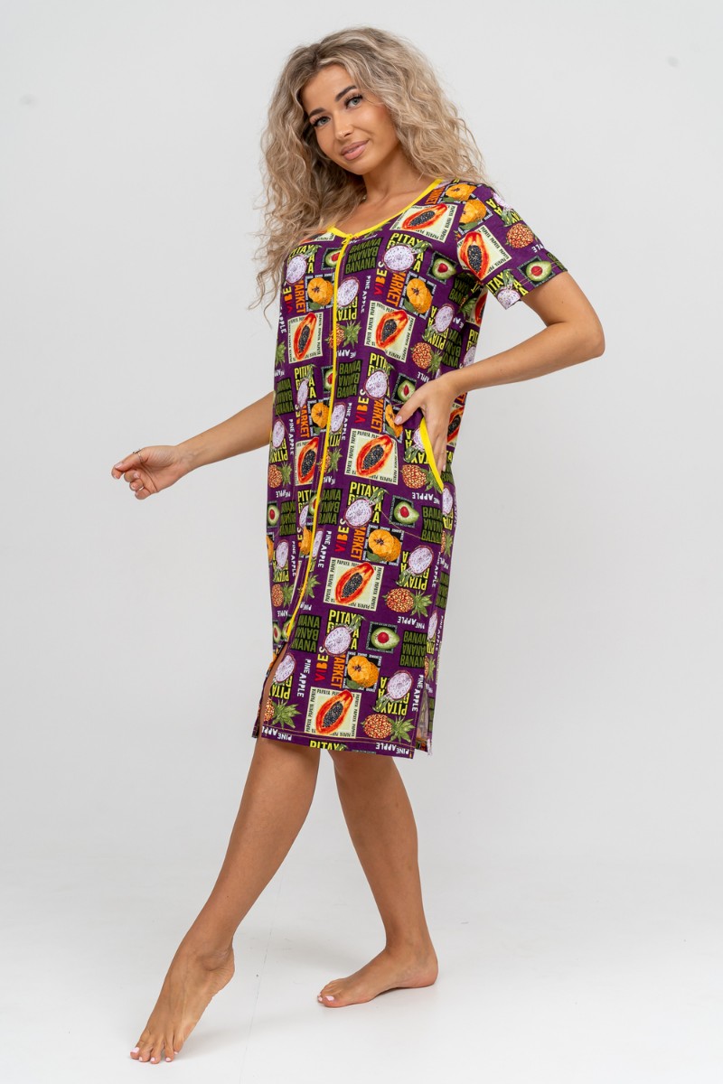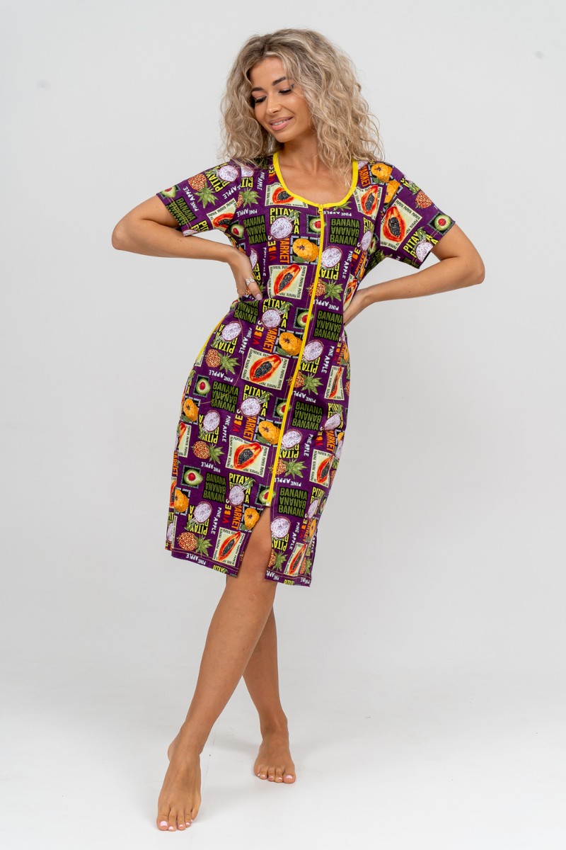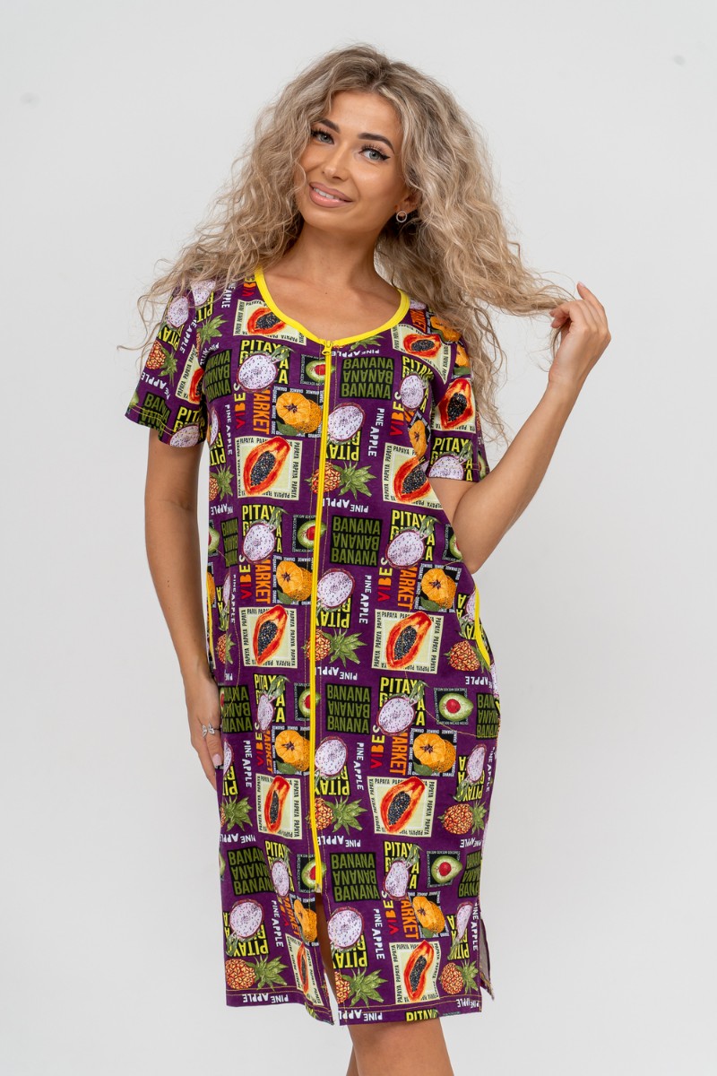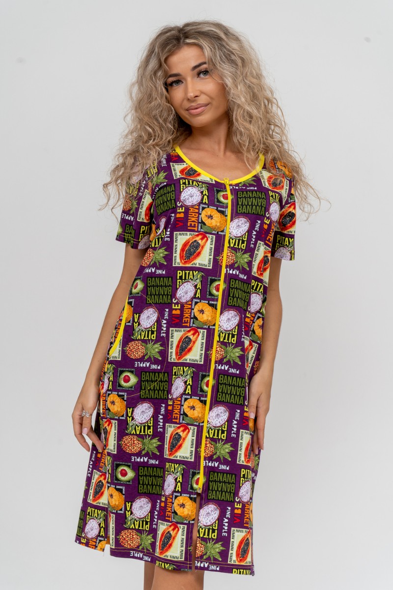 Халат женский №37007 кулирка (р-ры: 48-58) баклажан