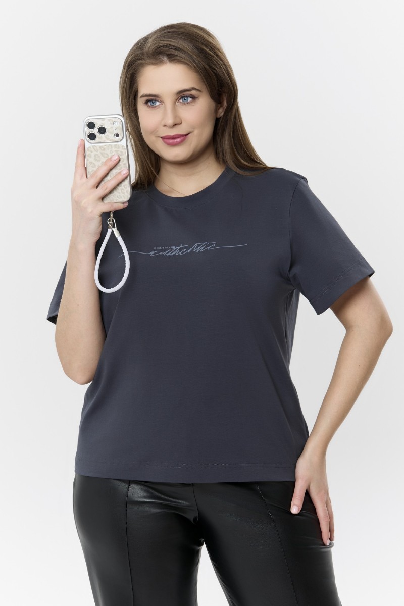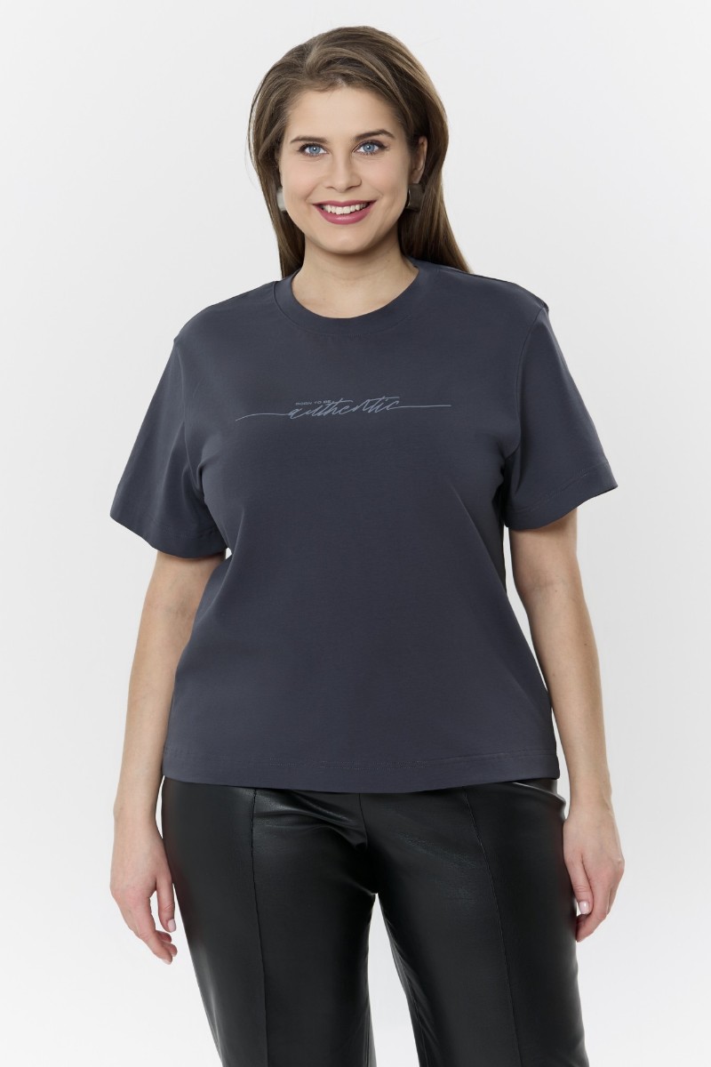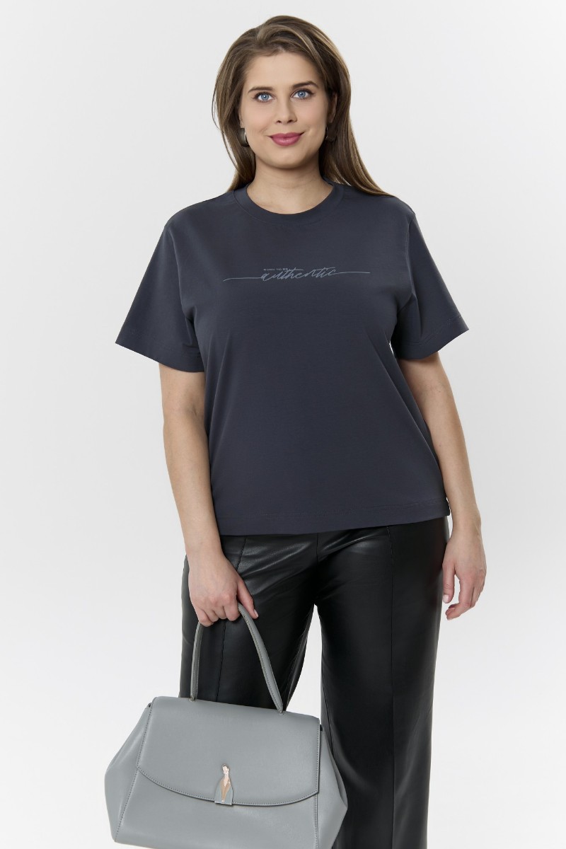 Футболка женская "Дельта" кулирка с лайкрой (р-ры: 46-60) антрацит