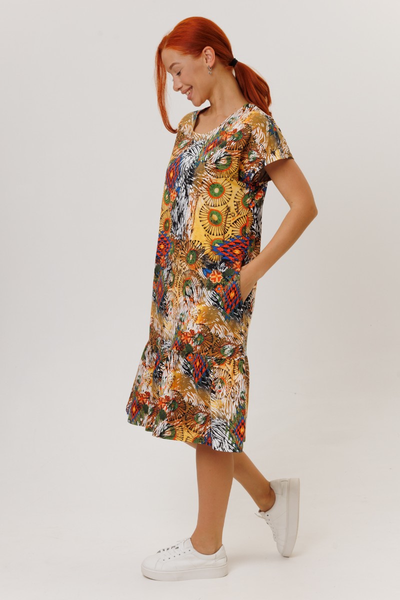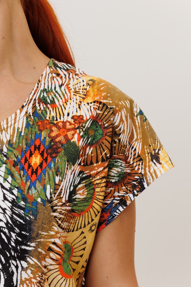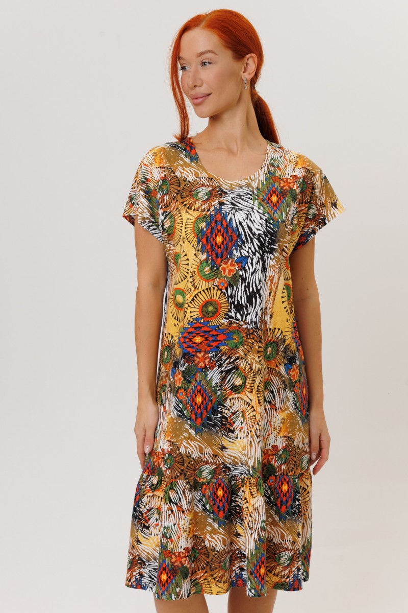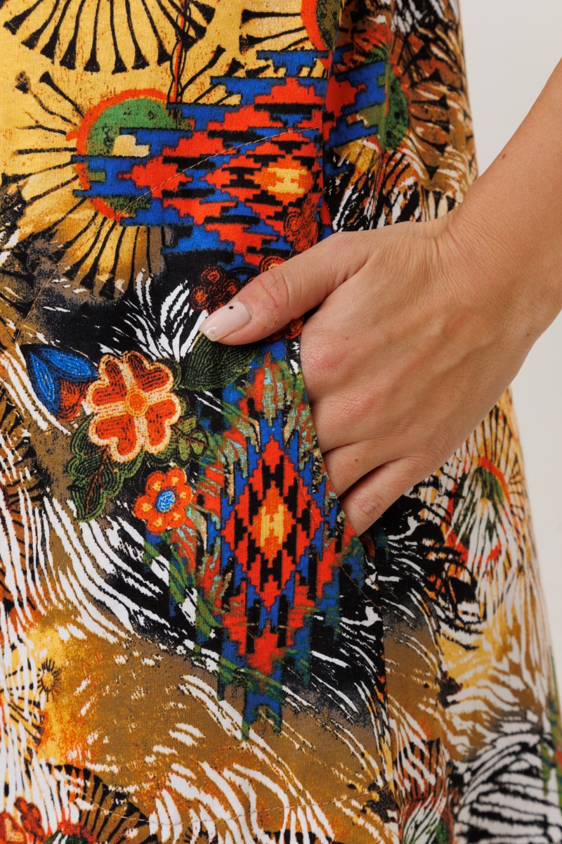 Представляем Вашему вниманию легкую женскую тунику из кулирки - 100% натурального, дышащего хлопка. Модель имеет интересную расцветку, которая красиво смотрится и поднимает настроение. Изделие хорошо сидит на фигуре и подчеркивает её достоинства. В ней Вы будете чувствовать себя комфортно и уверенно.