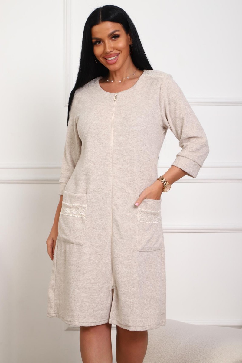Халат женский 01075 махра (р-ры: 46-58) светло-бежевый