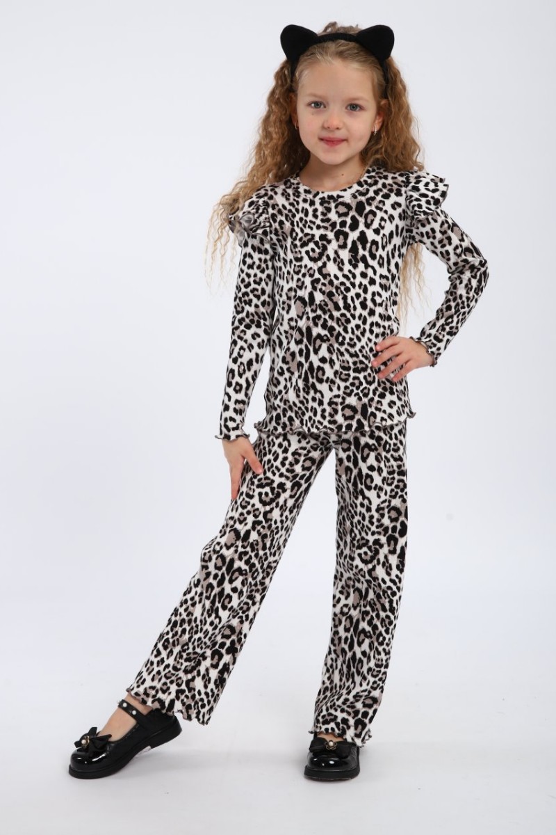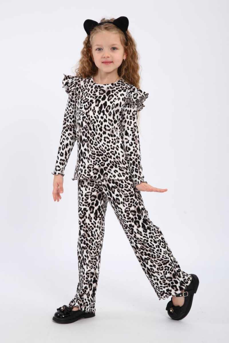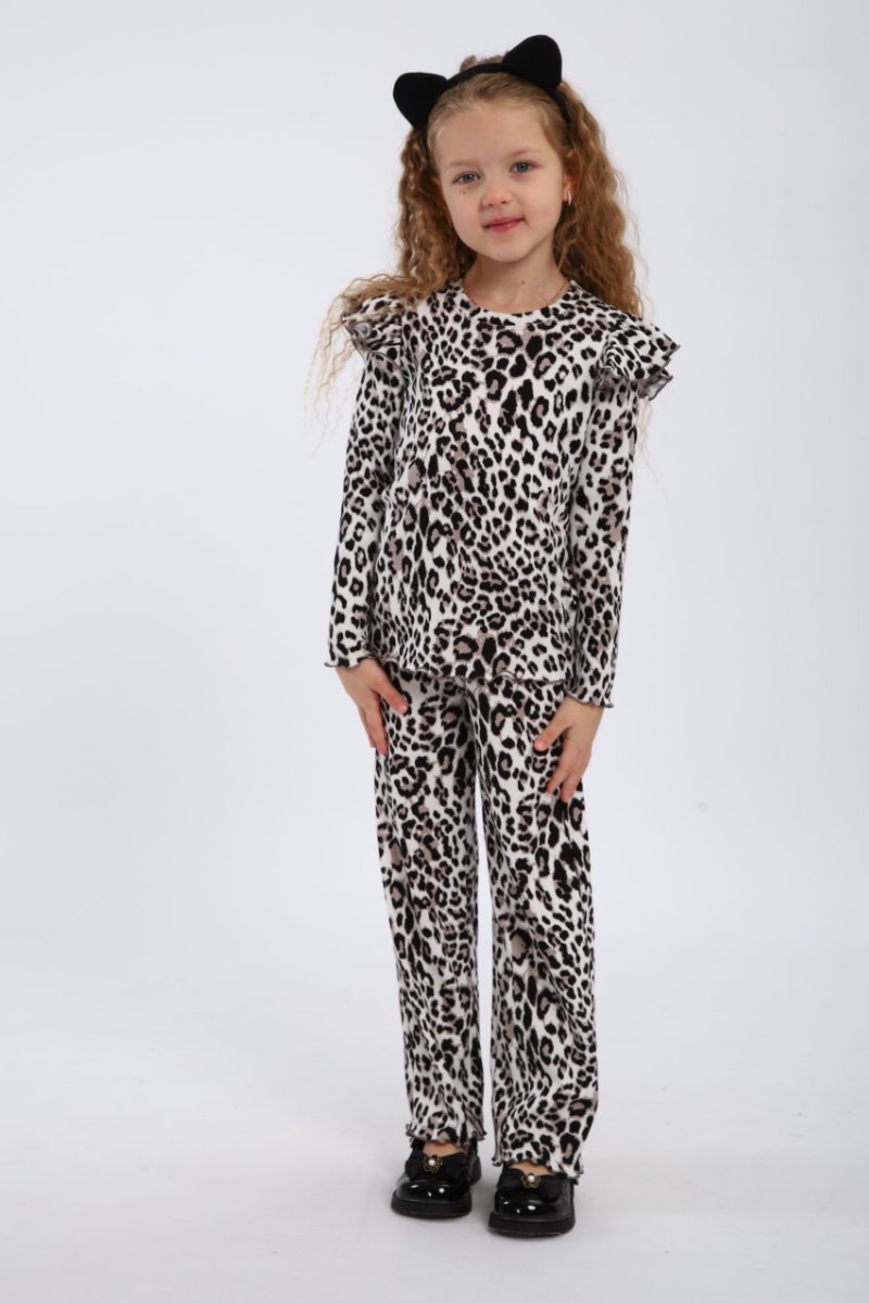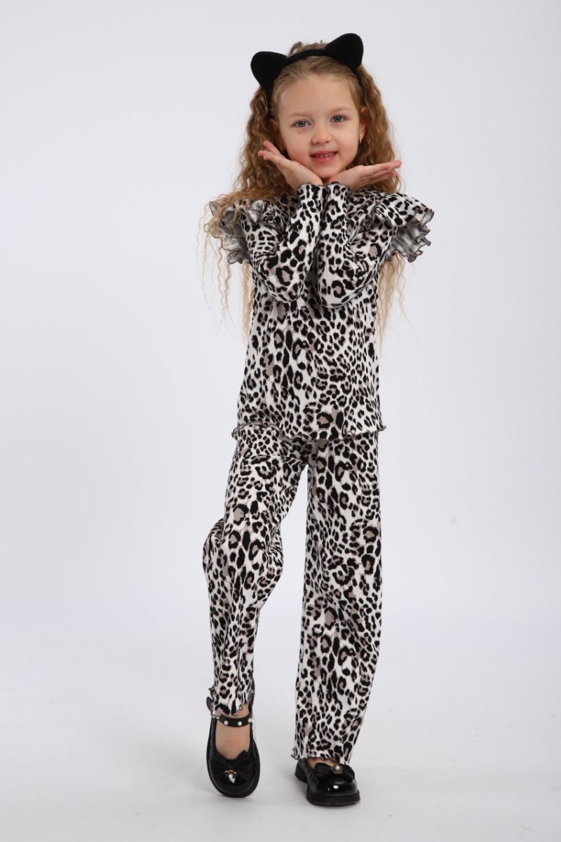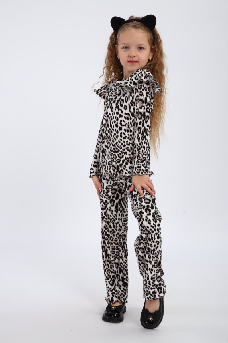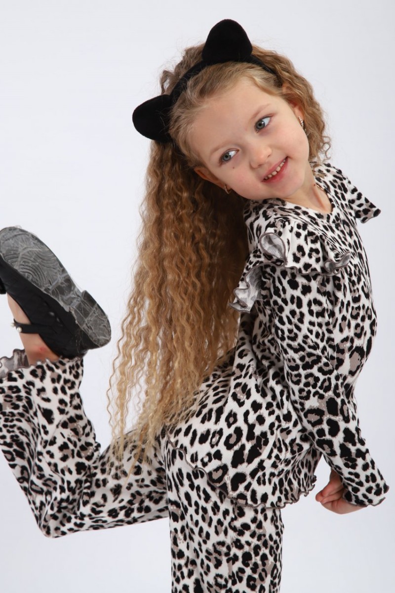 Представляем Вашему вниманию костюм для девочки, выполненный из легких и дышащих материалов, что обеспечит комфорт при носке даже в жаркую погоду. Спортивный костюм для девочки не только красив, но и практичен: он отлично подходит для прогулок, занятий спортом или встреч с друзьями. Леопардовый цвет легко комбинируется с различными аксессуарами и обувью, что позволит вашей малышке создать множество стильных образов.