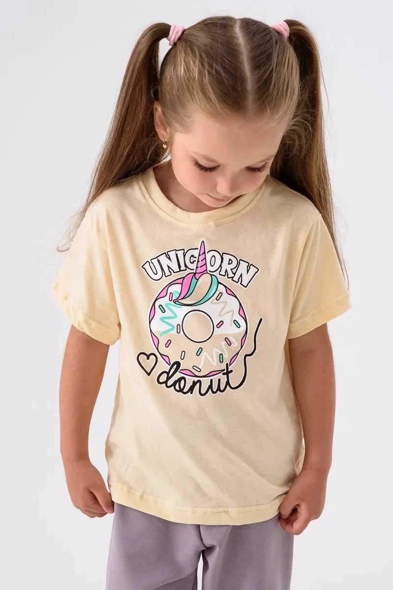 Футболка детская 2359-К "Набор-2" кулирка (р-ры: 80-110) фиолетовый, бежевый, желтый - набор 3 шт