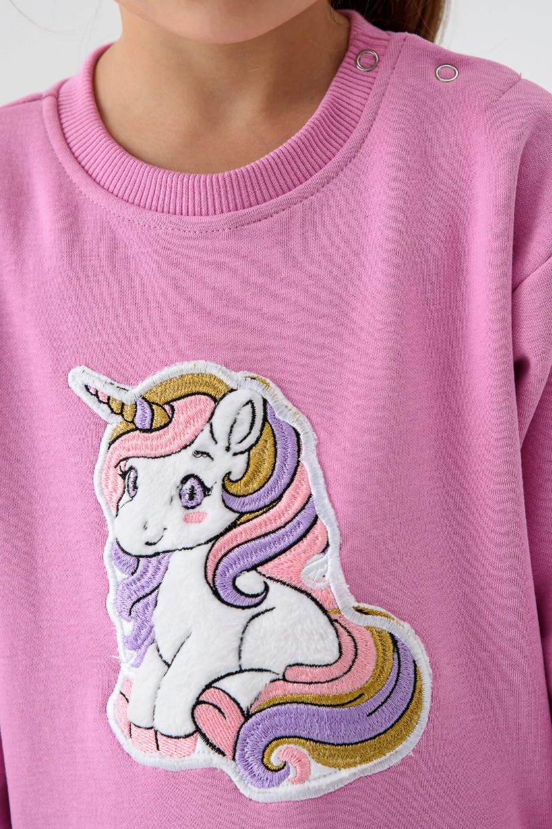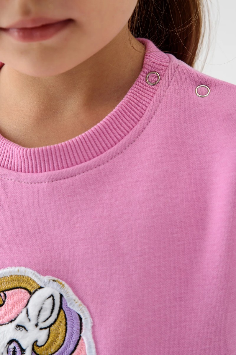 Свитшот детский 2392-Фут "Футер" футер 3-х нитка с начёсом (р-ры: 80-110) единорог розовый