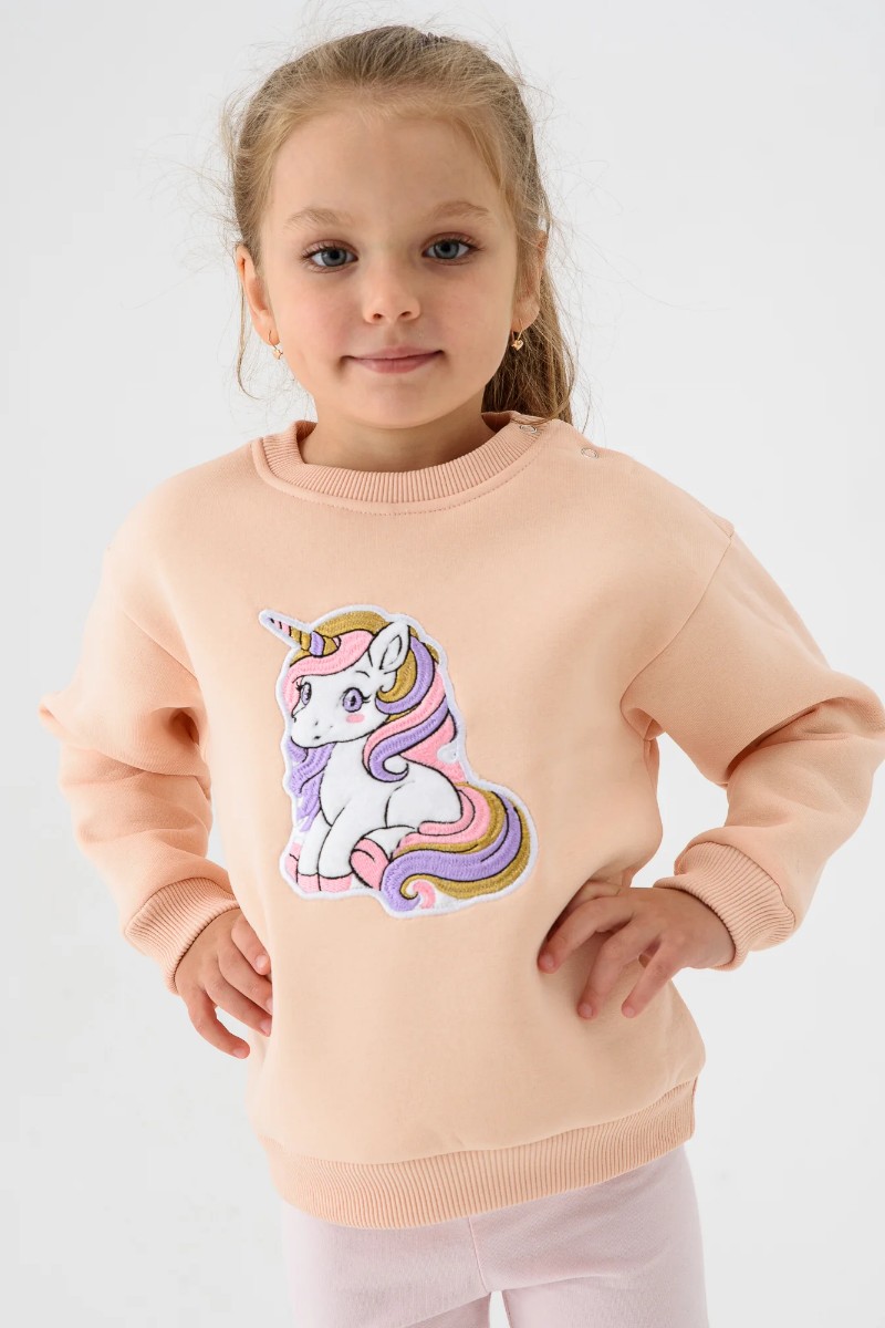 Свитшот детский 2392-Фут "Футер" футер 3-х нитка с начёсом (р-ры: 80-110) единорог персик