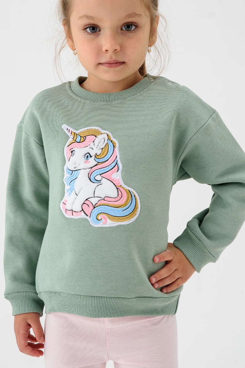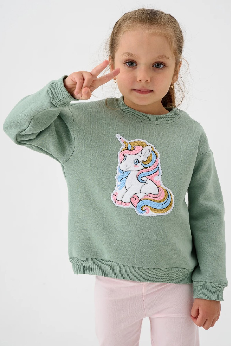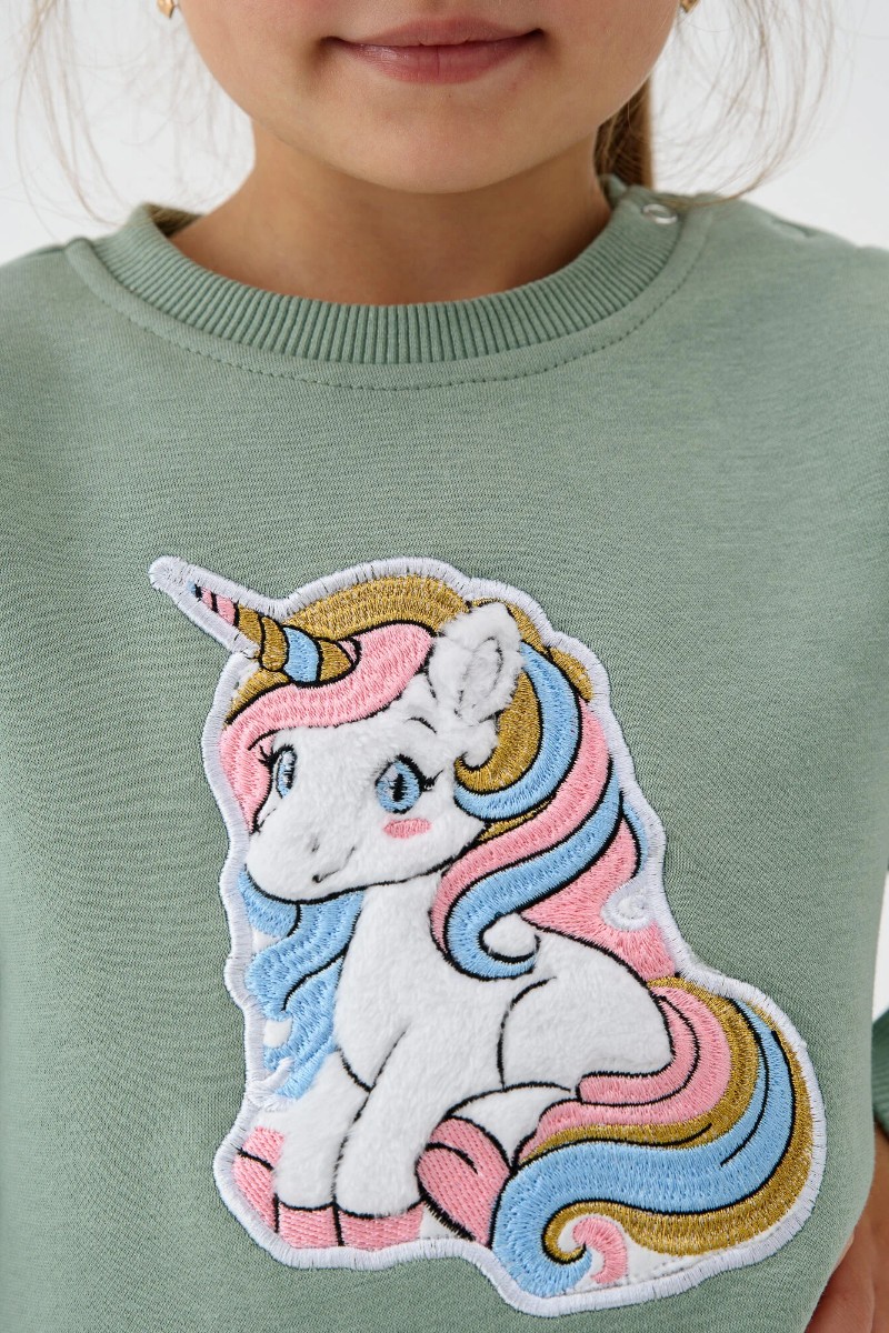 Свитшот детский 2392-Фут "Футер" футер 3-х нитка с начёсом (р-ры: 80-110) единорог зеленый