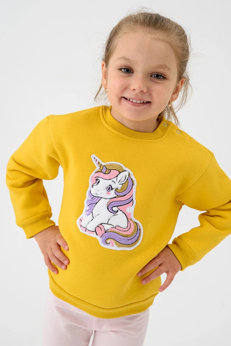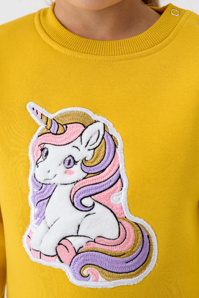 Свитшот детский 2392-Фут "Футер" футер 3-х нитка с начёсом (р-ры: 80-110) единорог желтый