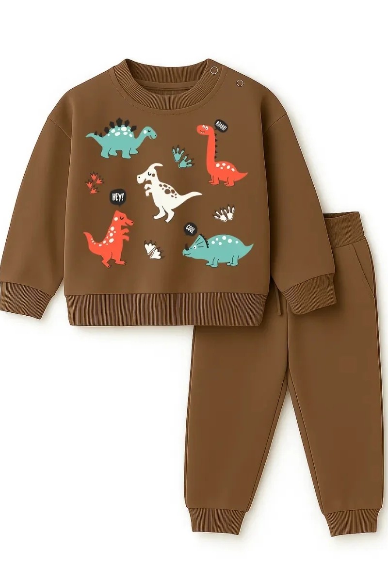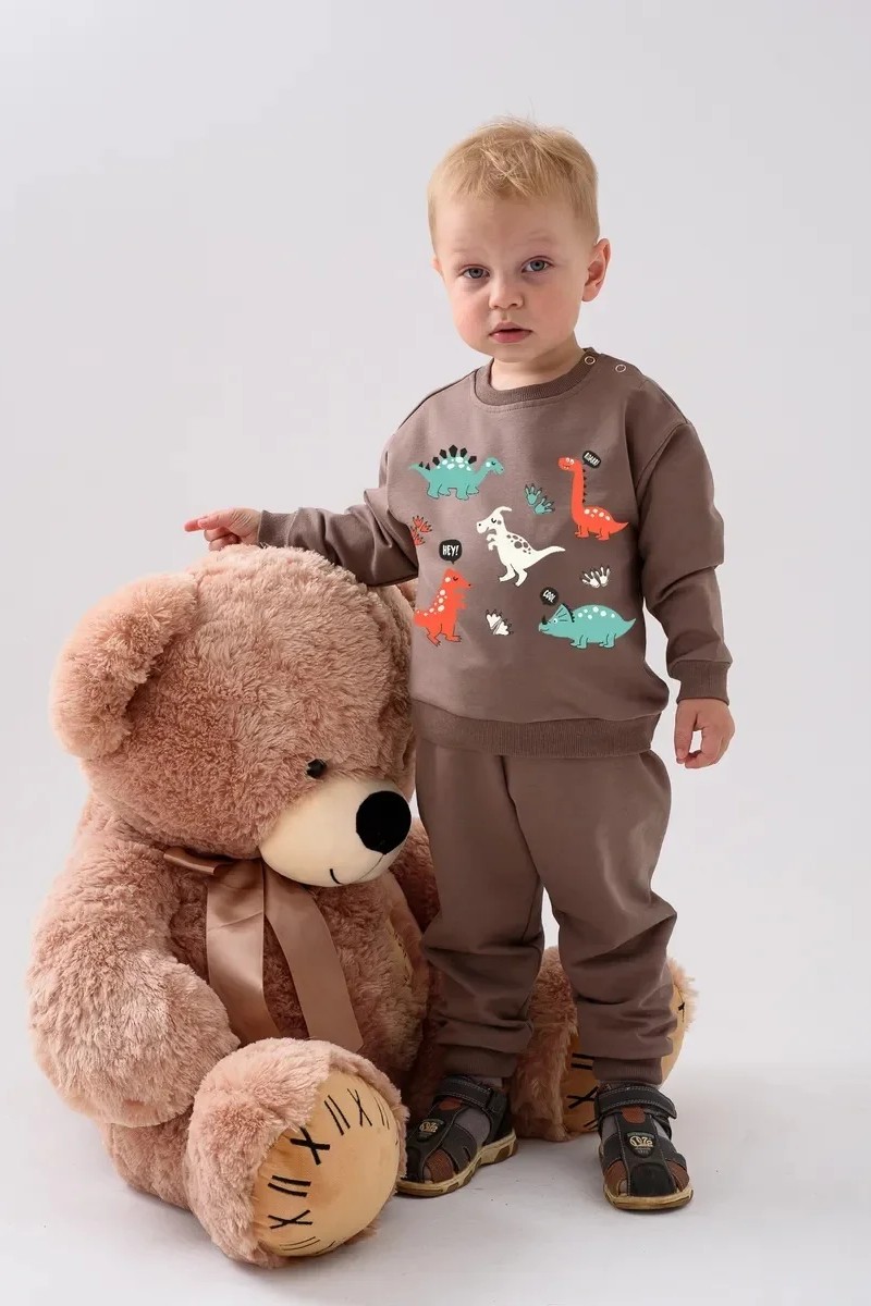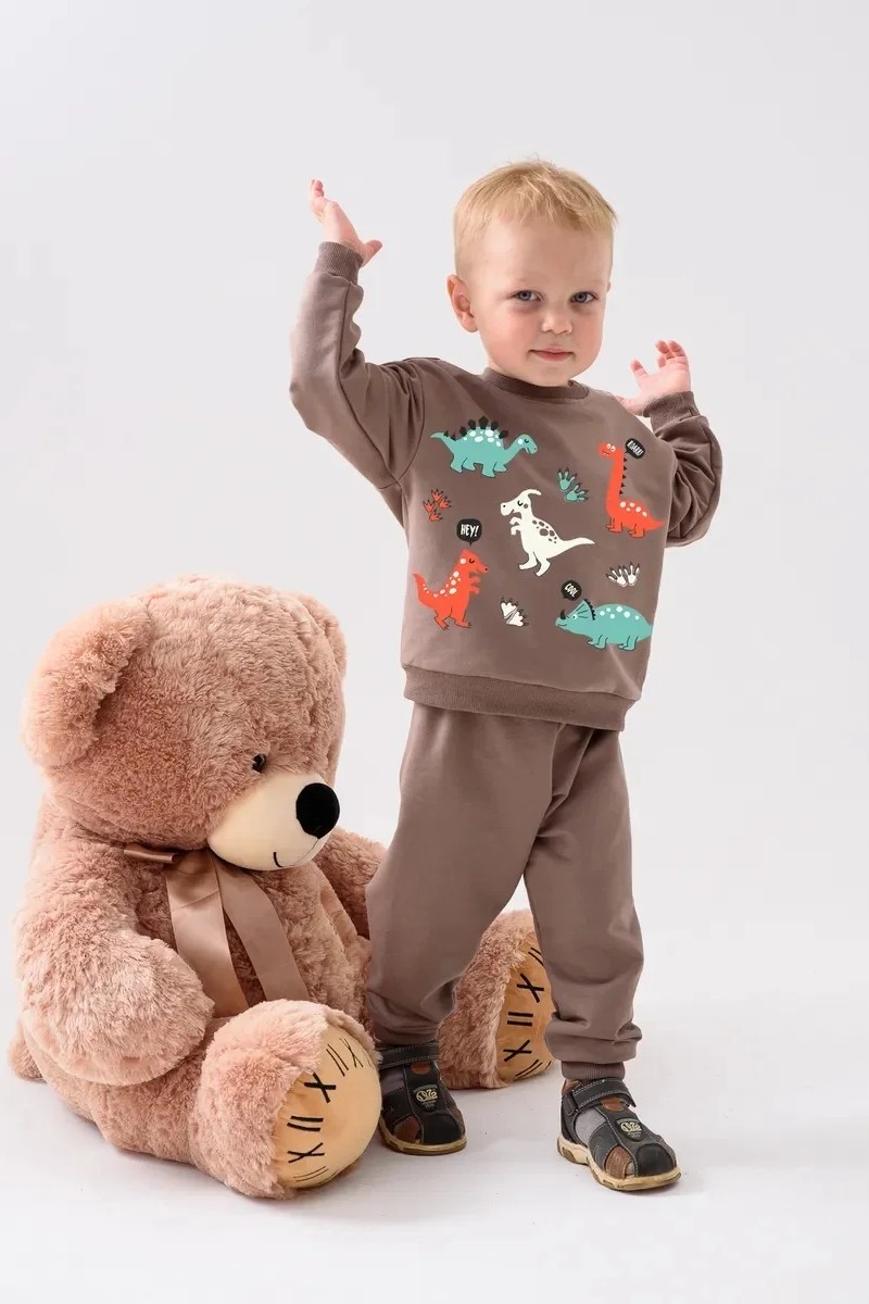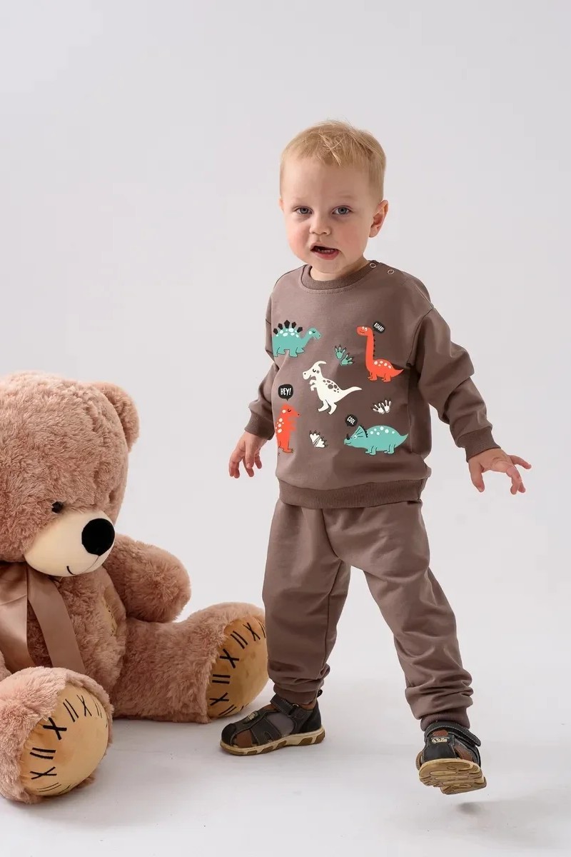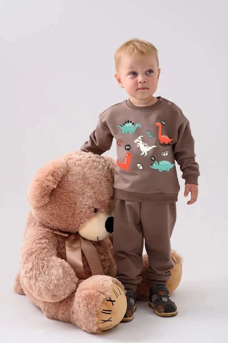 Костюм двойка детский 2376-Фут "Футер" футер 2-х нитка (р-ры: 80-110) динозавр коричневый